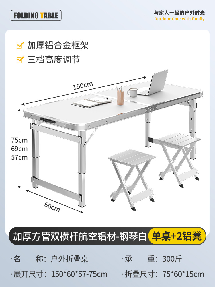 • [두꺼운 사각 튜브 이중 크로스바 항공 알루미늄] 150cm 피아노 화이트 + 알루미늄 스툴 4개 설치 불필요