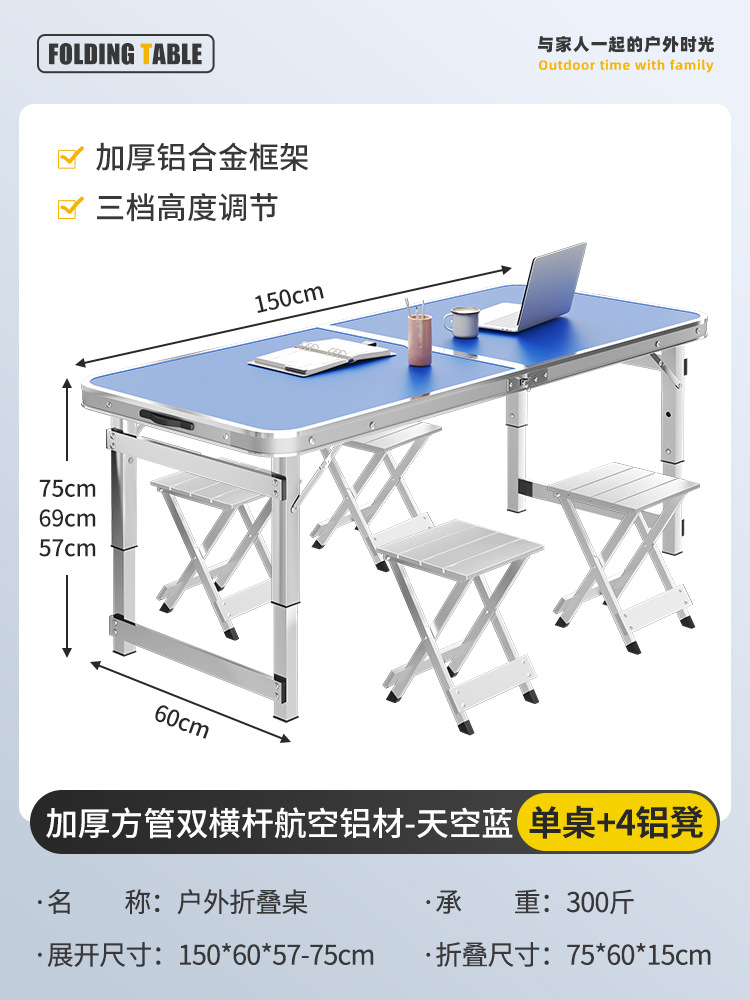 • [두꺼운 사각 튜브 이중 크로스바 항공 알루미늄] 150cm 하늘색 + 알루미늄 스툴 4개 설치 불필요