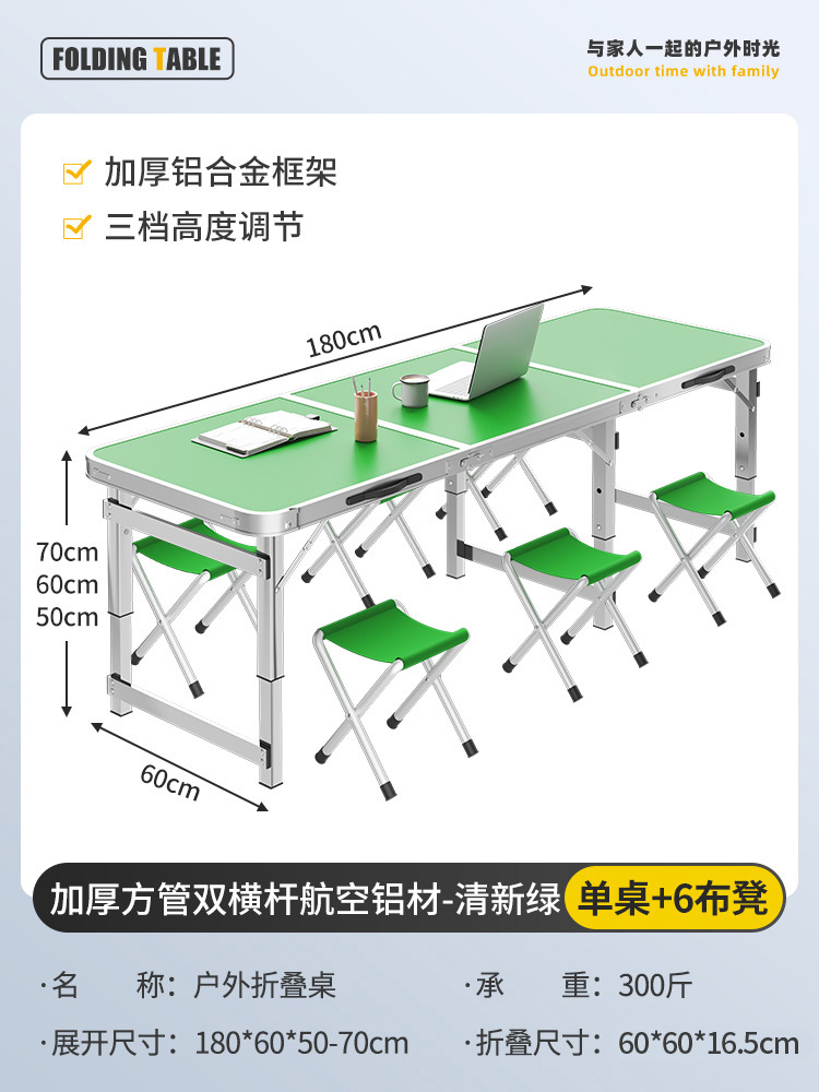 • [두꺼운 사각 튜브 이중 크로스바 항공 알루미늄] 180cm 신록 + 천 스툴 6개 설치 불필요