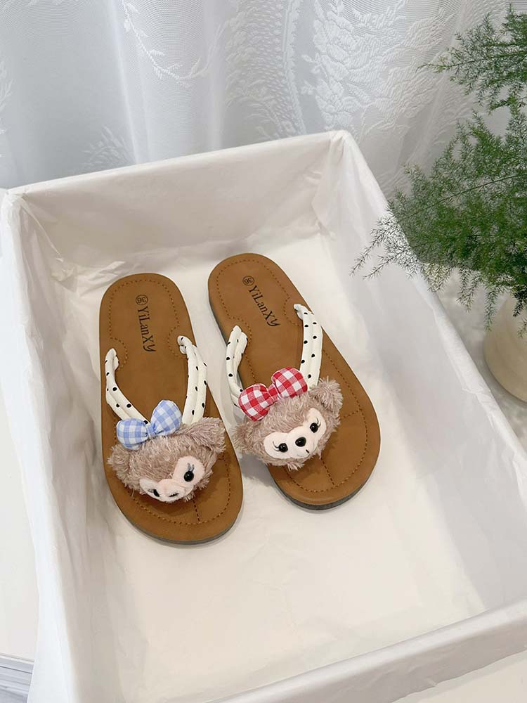 여름 겉옷을위한 귀여운 만화 소녀 하트 플랫 플립 플롭 2024 새로운 슈퍼 핫 미끄럼 방지 부드러운 바닥 샌들
