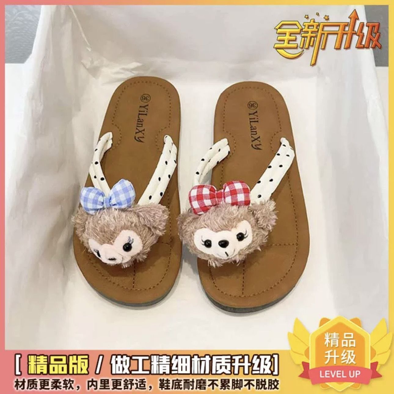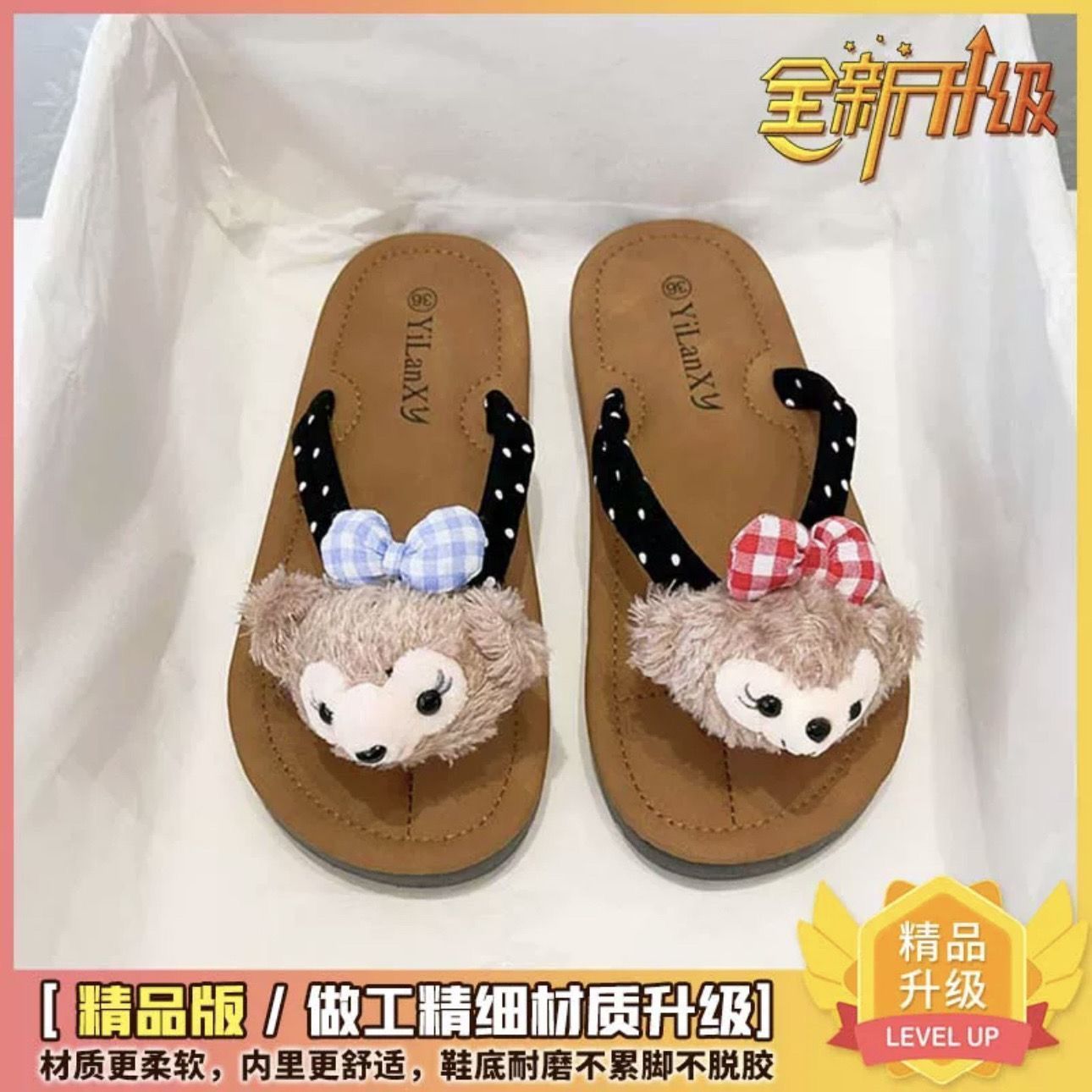 여름 겉옷을위한 귀여운 만화 소녀 하트 플랫 플립 플롭 2024 새로운 슈퍼 핫 미끄럼 방지 부드러운 바닥 샌들스토어 가기