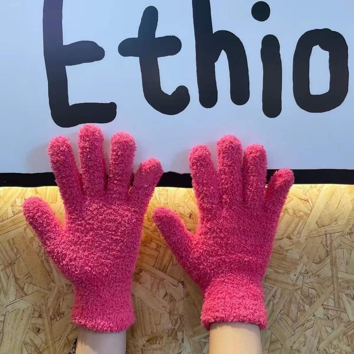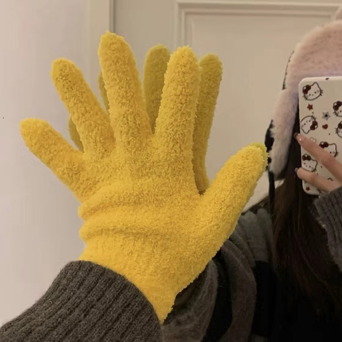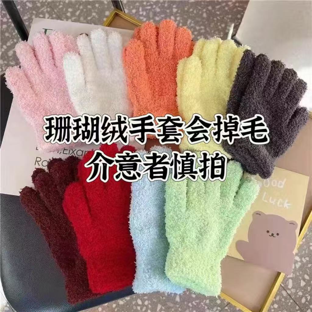 두꺼운 플러시 장갑 겨울 따뜻한 산호 벨벳 캔디 컬러 플러시 다섯 손가락 학생 사이클링 사무실 장갑