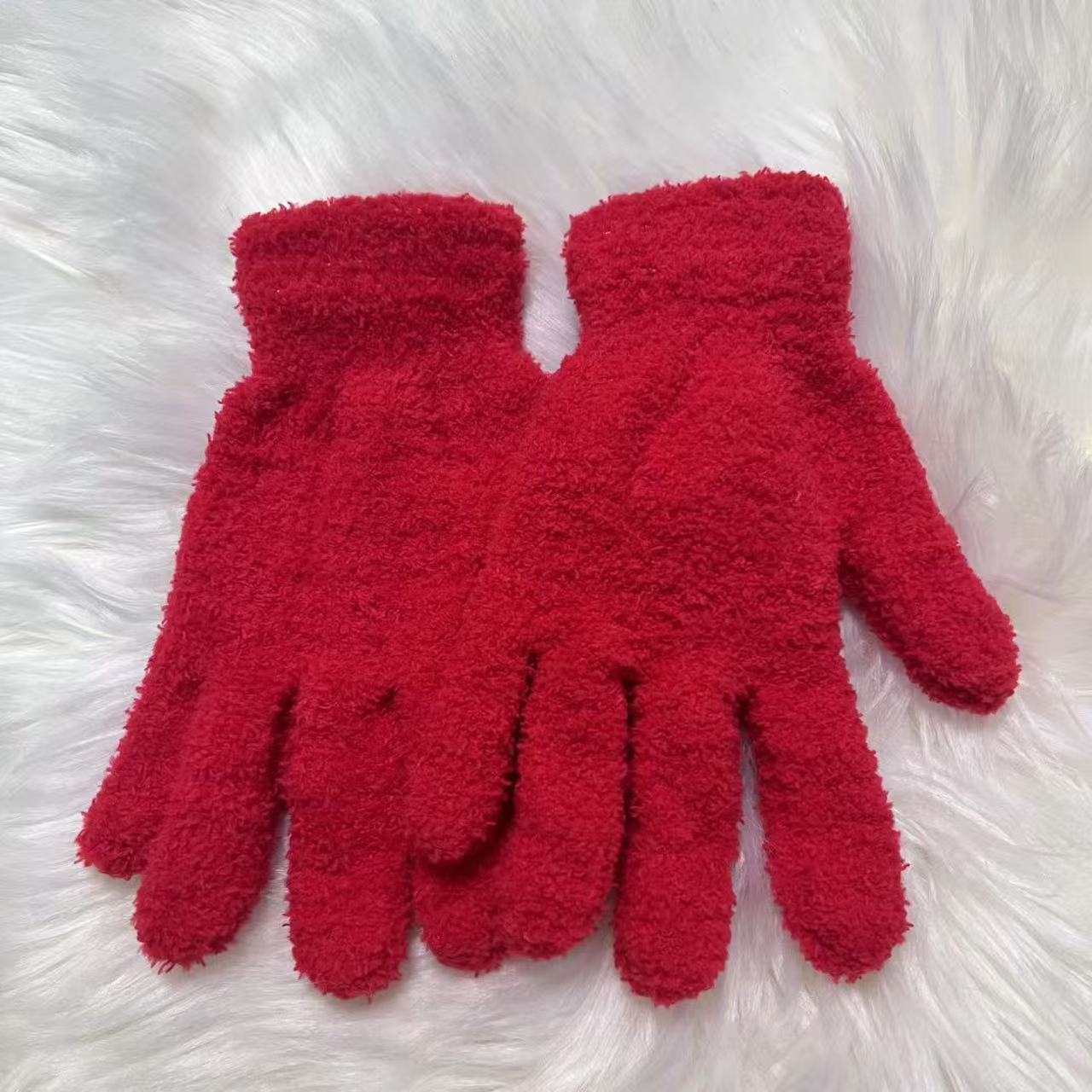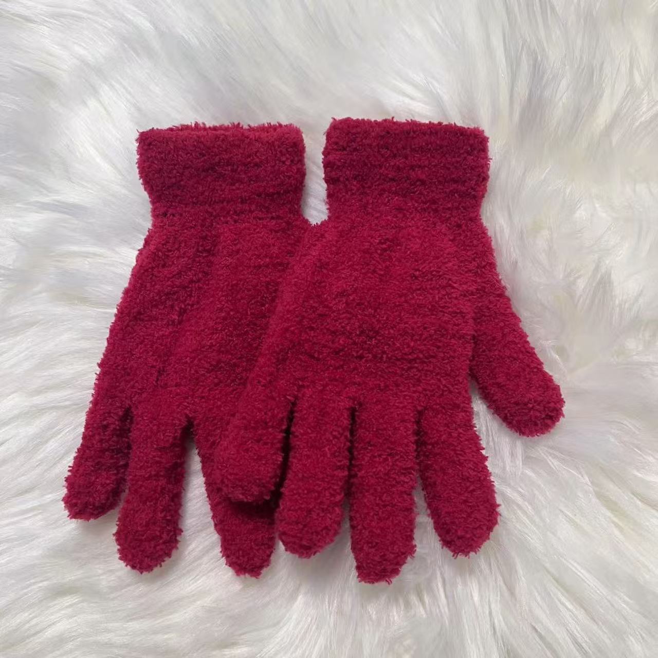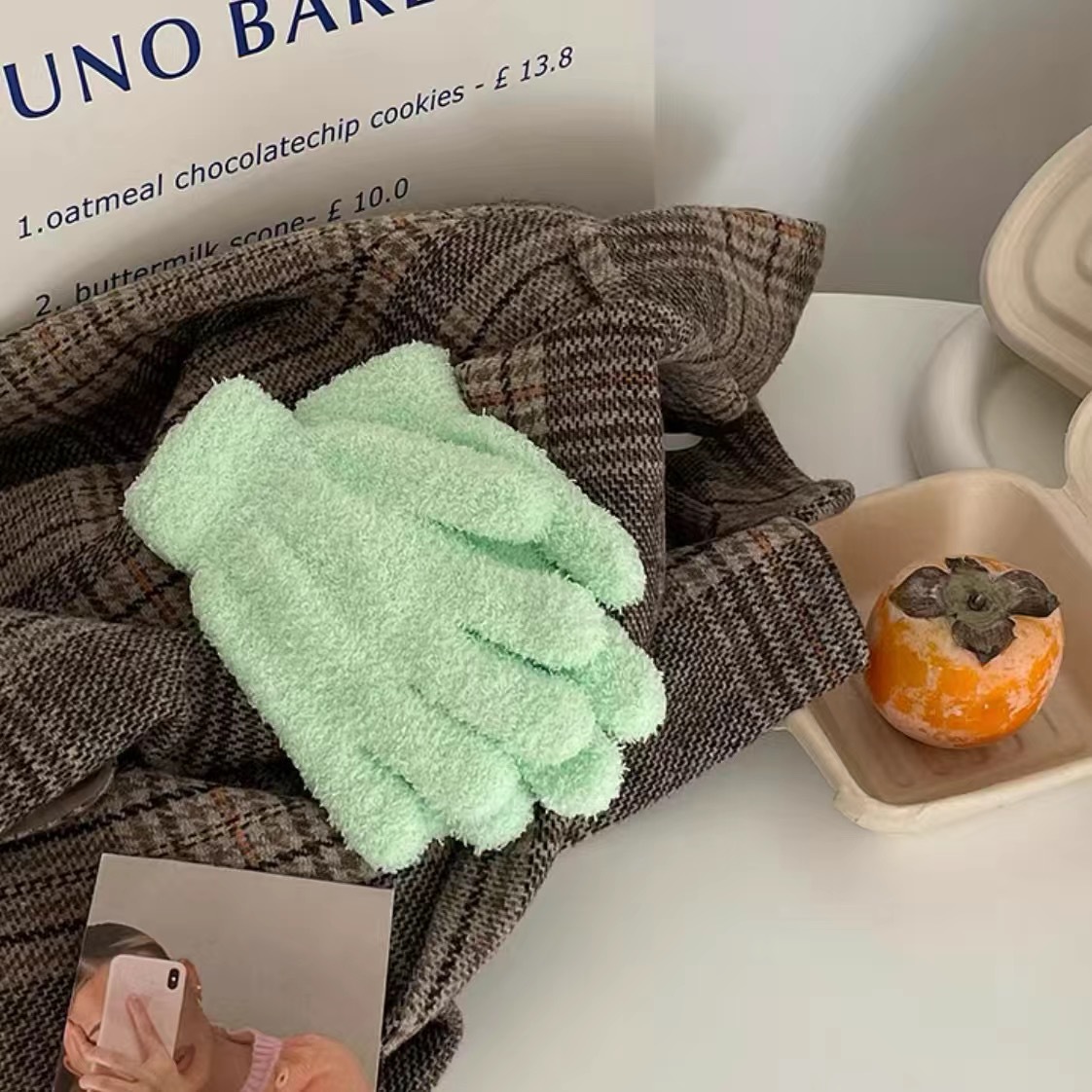 두꺼운 플러시 장갑 겨울 따뜻한 산호 벨벳 캔디 컬러 플러시 다섯 손가락 학생 사이클링 사무실 장갑