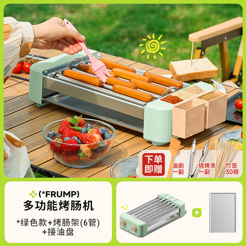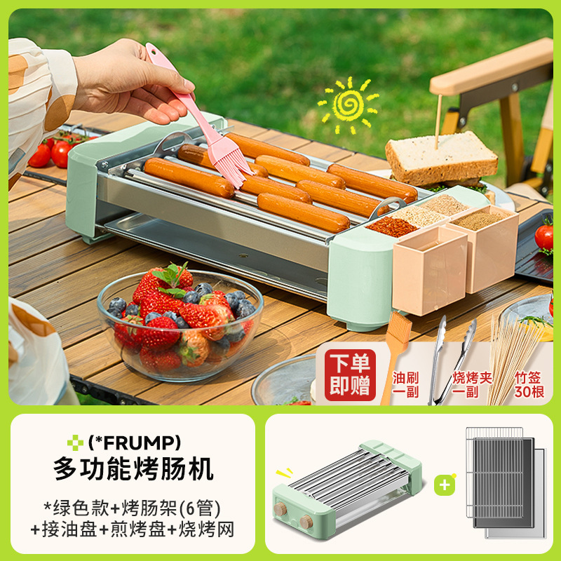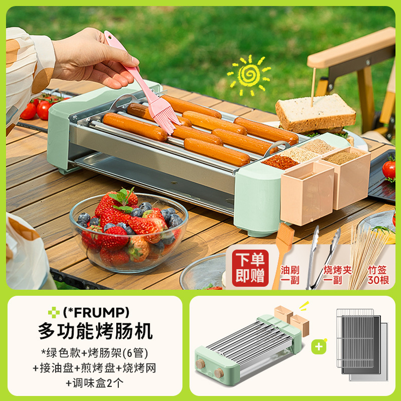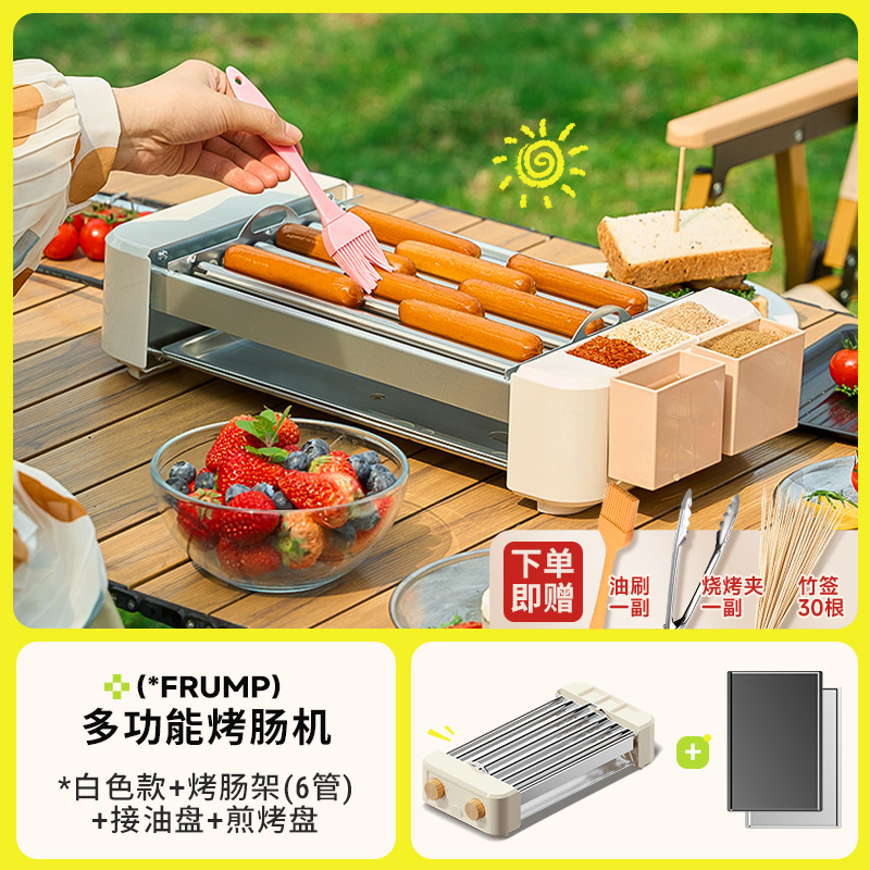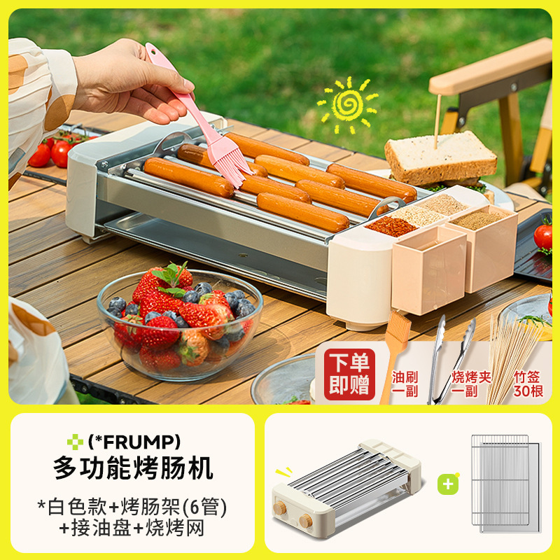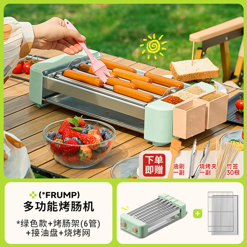 FRUMP 소시지 굽는 기계 가정용 소형 미니 다기능 휴대용 바베큐 그릴 야외 꼬치 소시지 기계 바베큐 플레이트스토어 가기