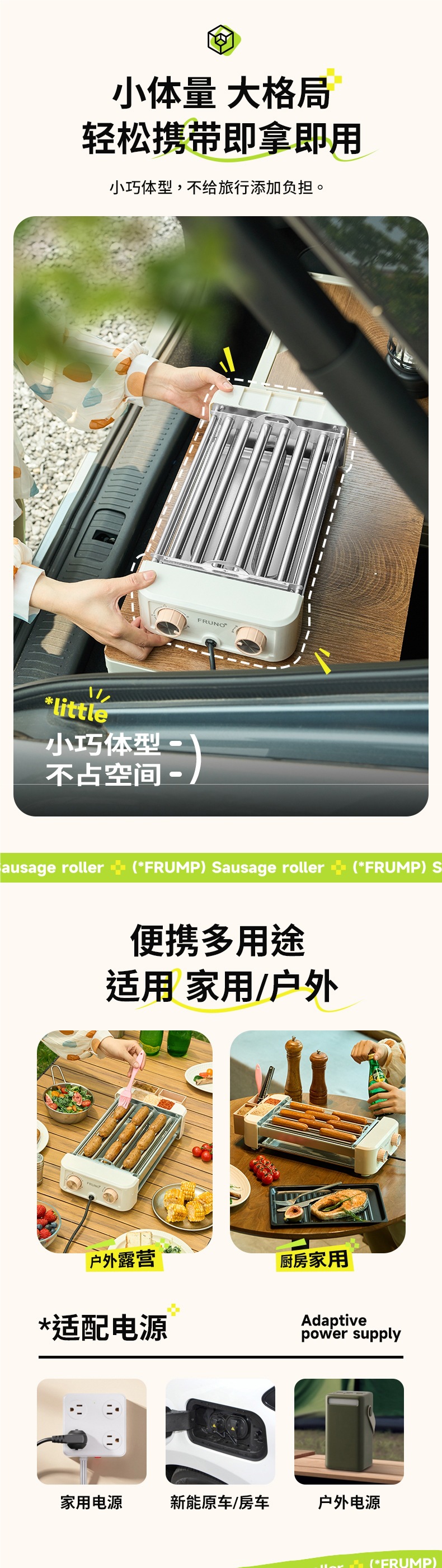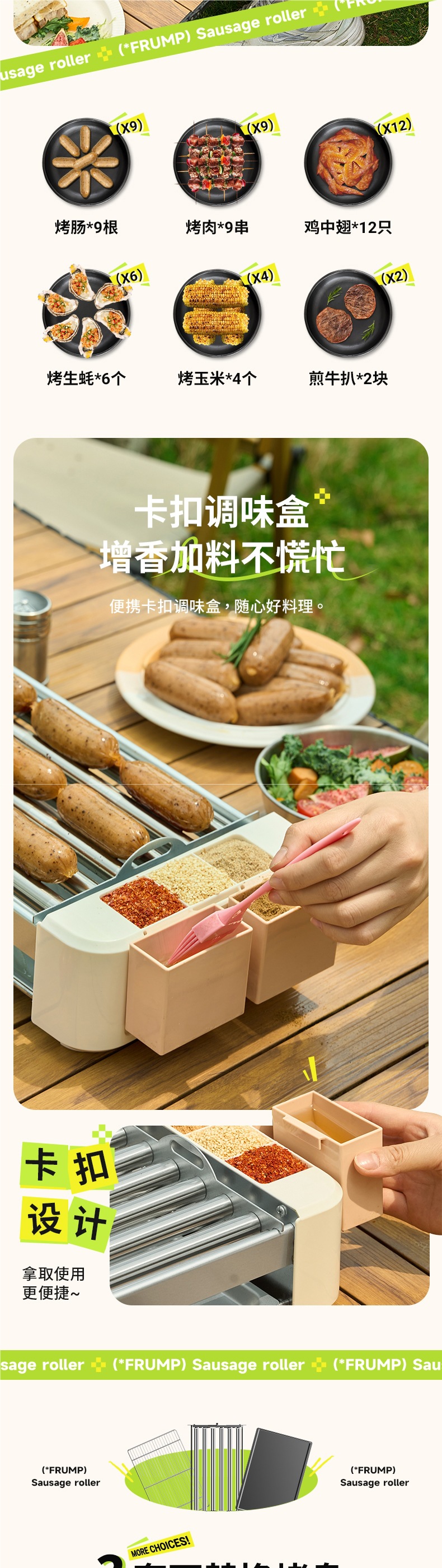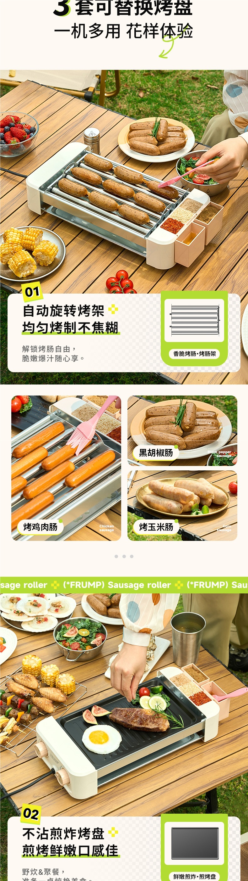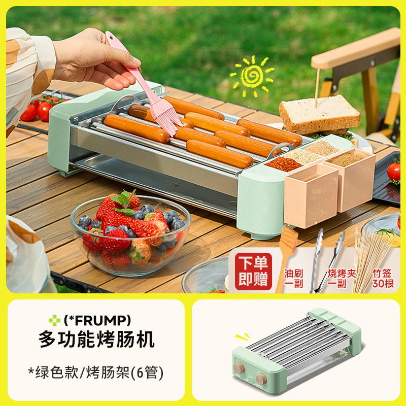FRUMP 소시지 굽는 기계 가정용 소형 미니 다기능 휴대용 바베큐 그릴 야외 꼬치 소시지 기계 바베큐 플레이트스토어 가기