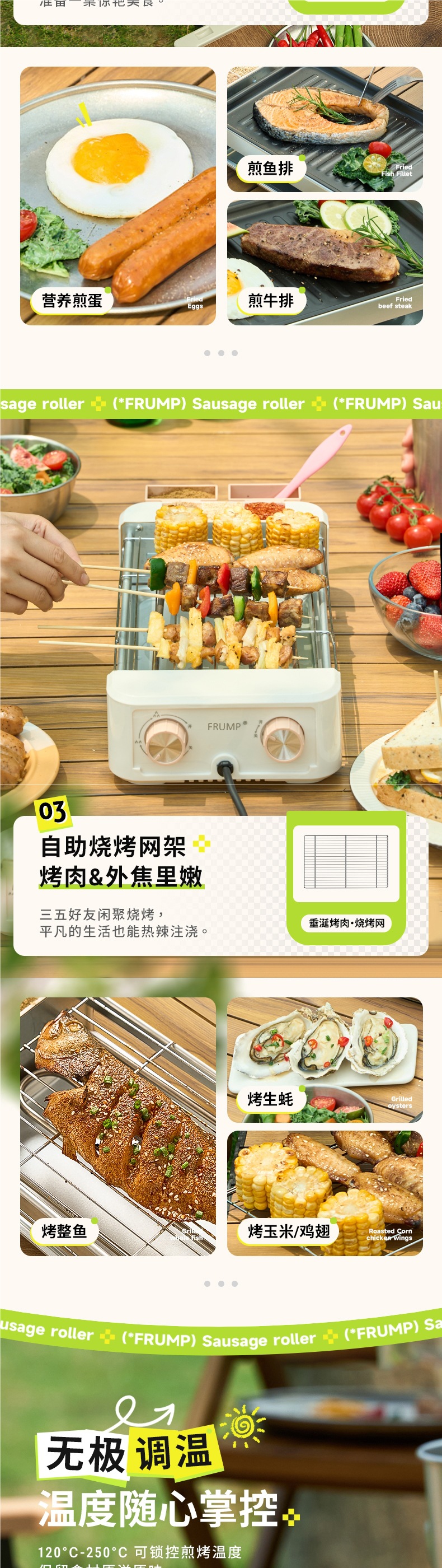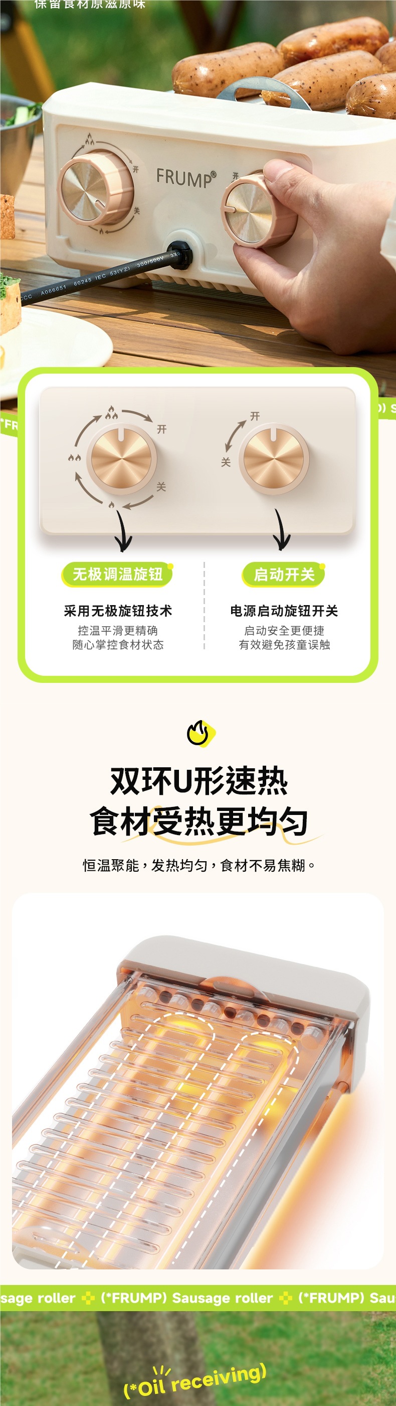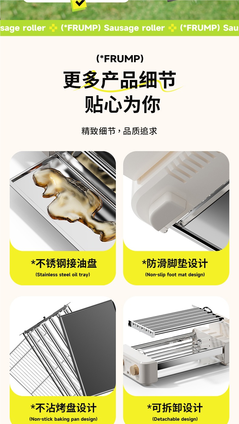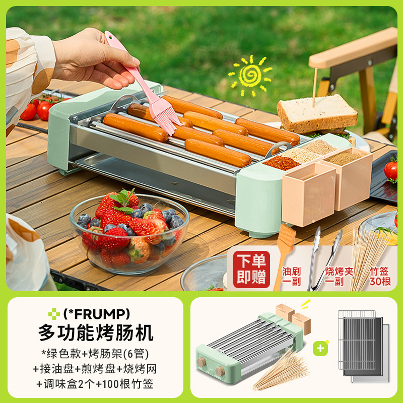 FRUMP 소시지 굽는 기계 가정용 소형 미니 다기능 휴대용 바베큐 그릴 야외 꼬치 소시지 기계 바베큐 플레이트