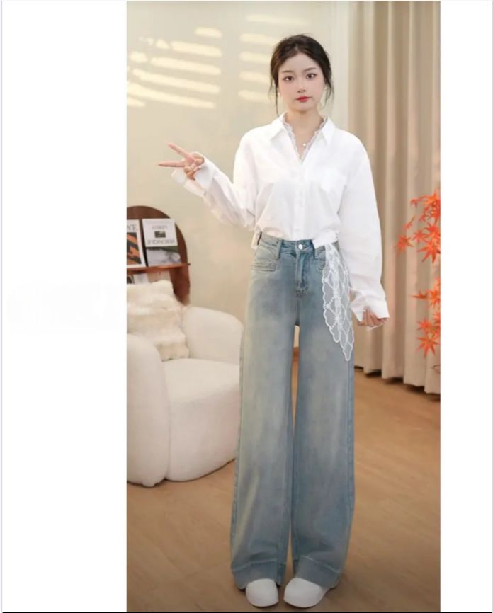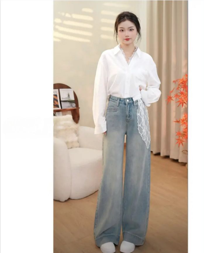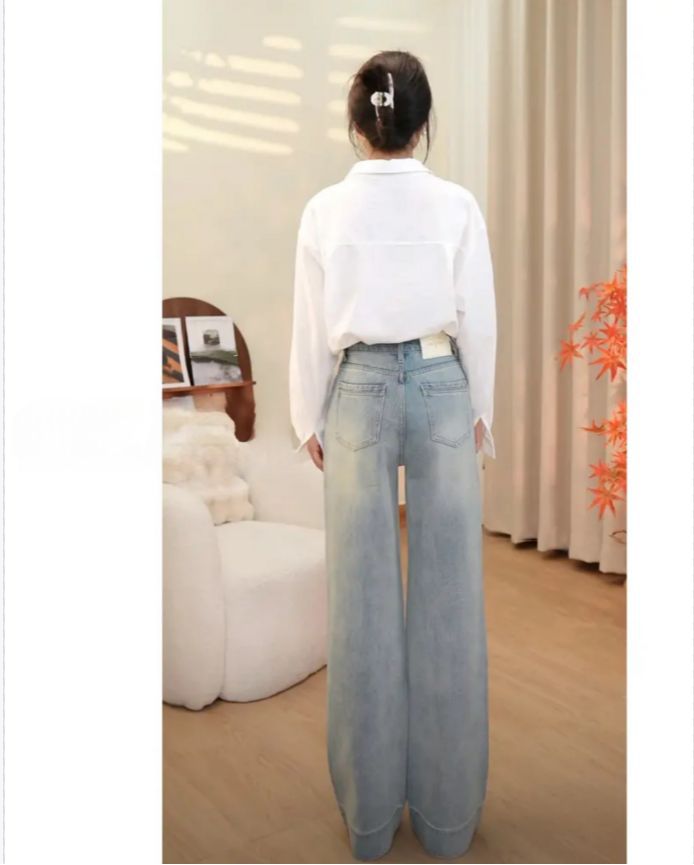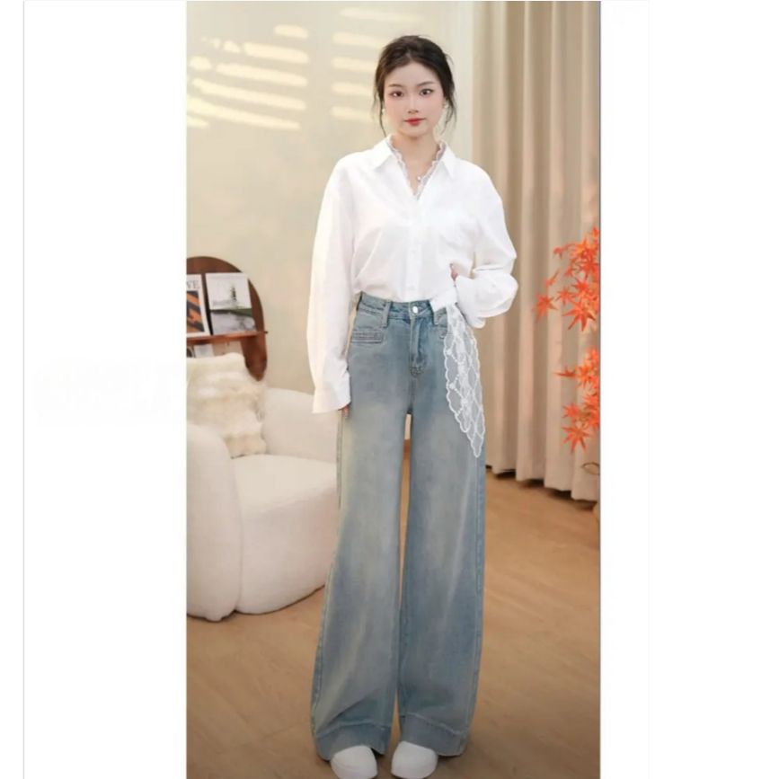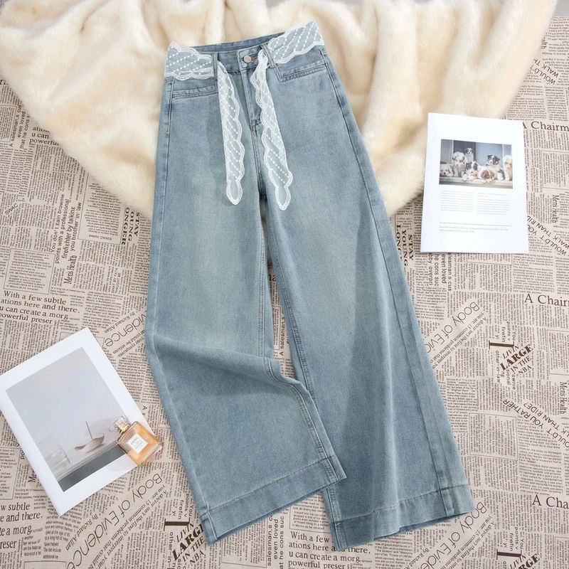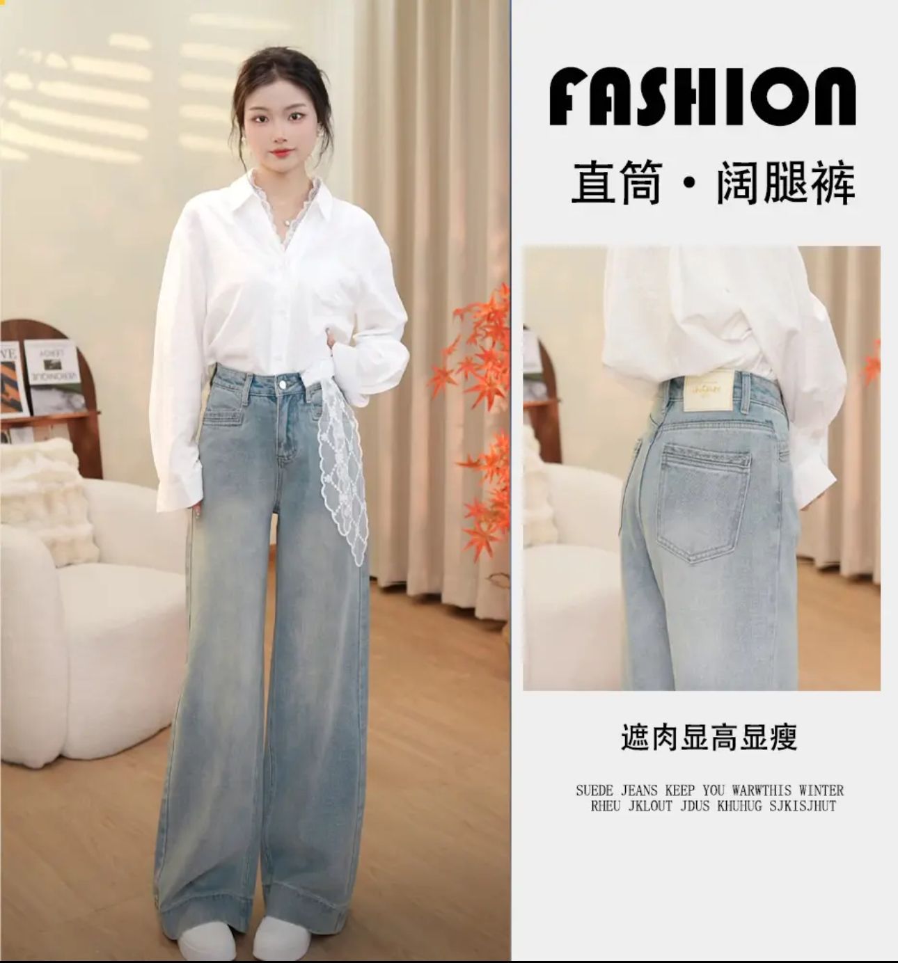 2025 새로운 복고풍 로우 웨이스트 슬리밍 스트레이트 팬츠 여성용 밝은 색상의 레이스 마이크로 플레어 청바지스토어 가기