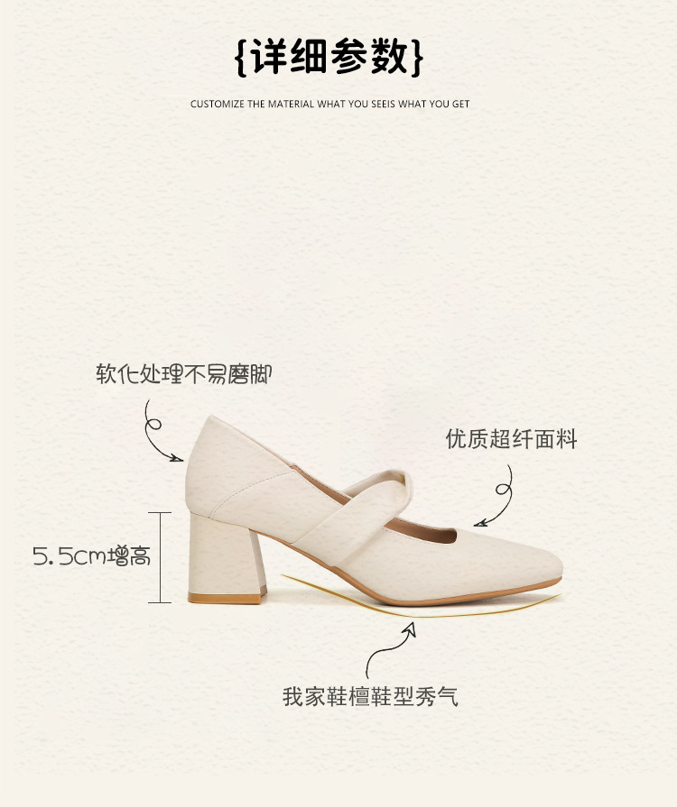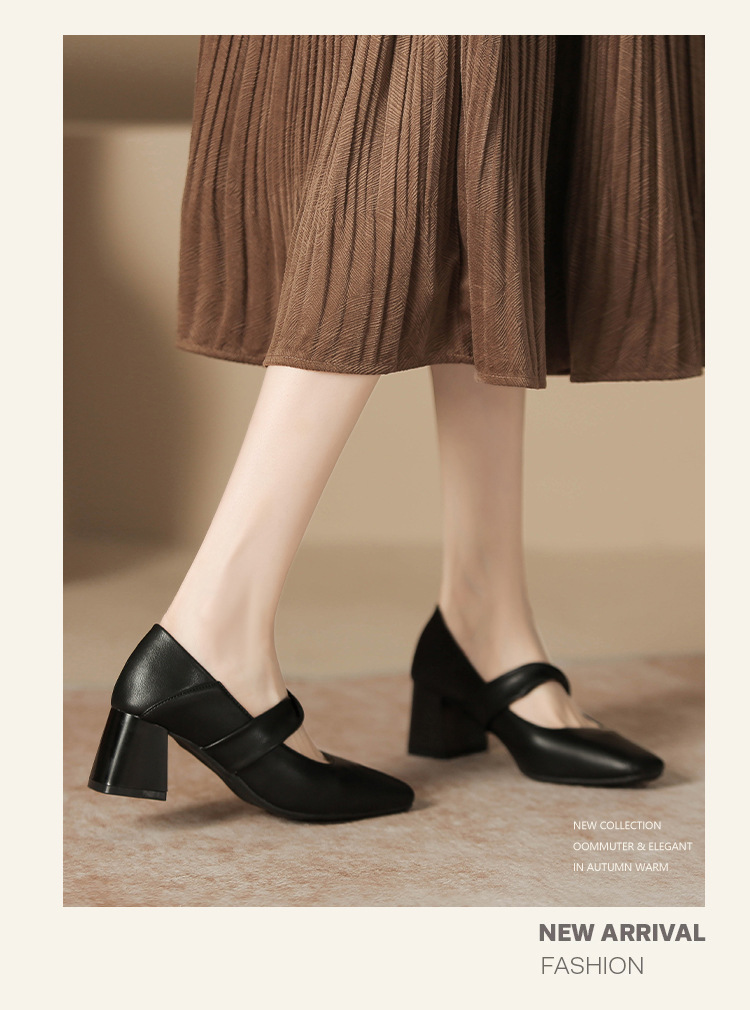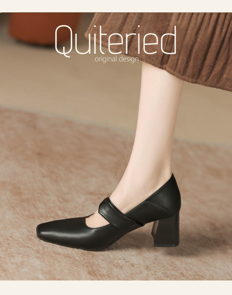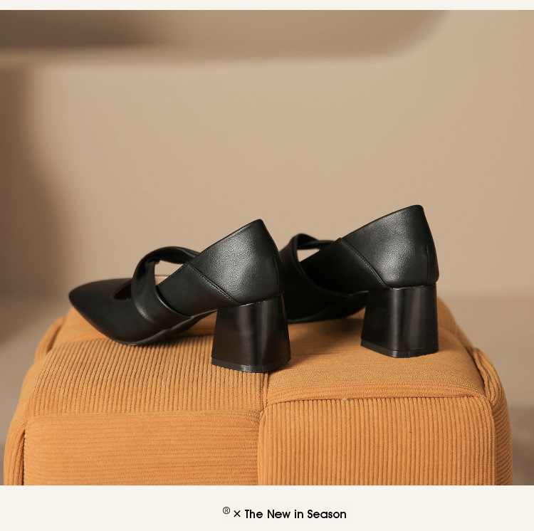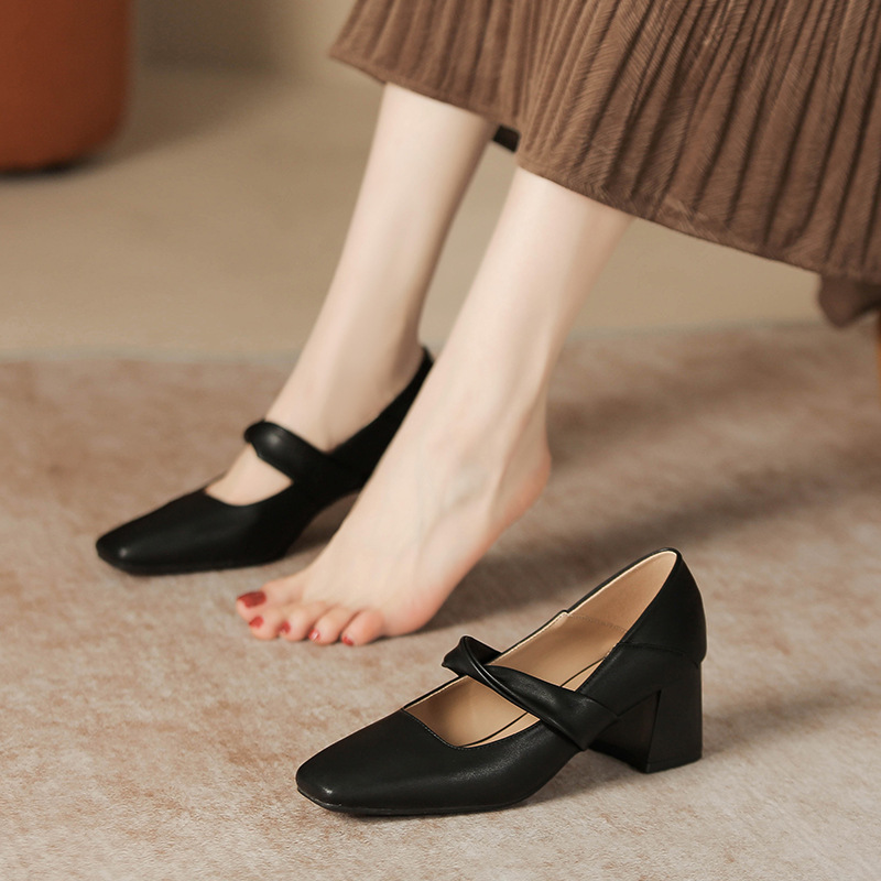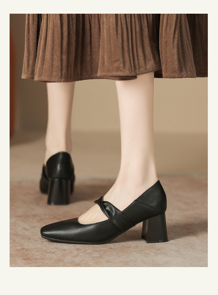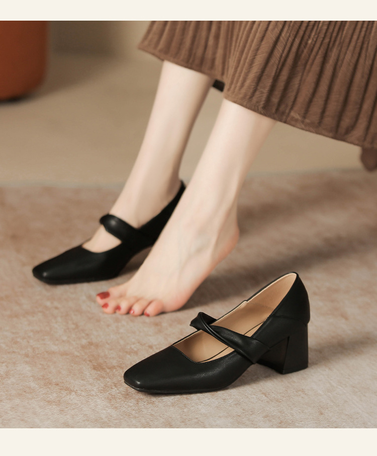 스퀘어토 메리제인 여성화, 하이힐, 두꺼운 굽의 작은 가죽신, 원스트랩 싱글슈즈, 새로운 중국풍 신발, 중국풍 치파오 신발스토어 가기