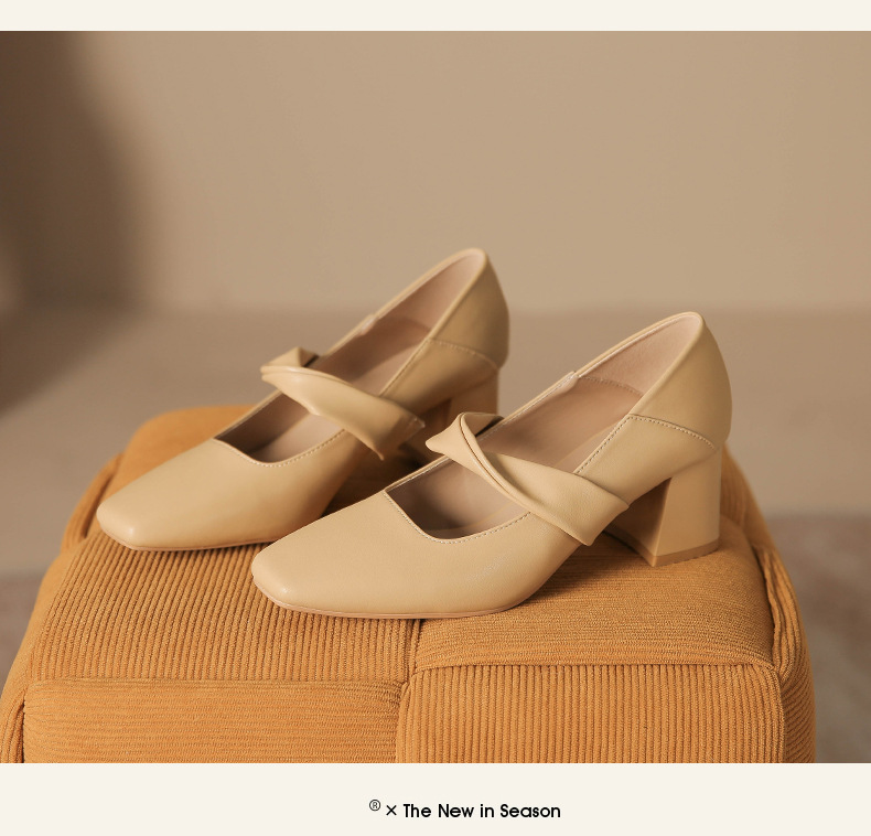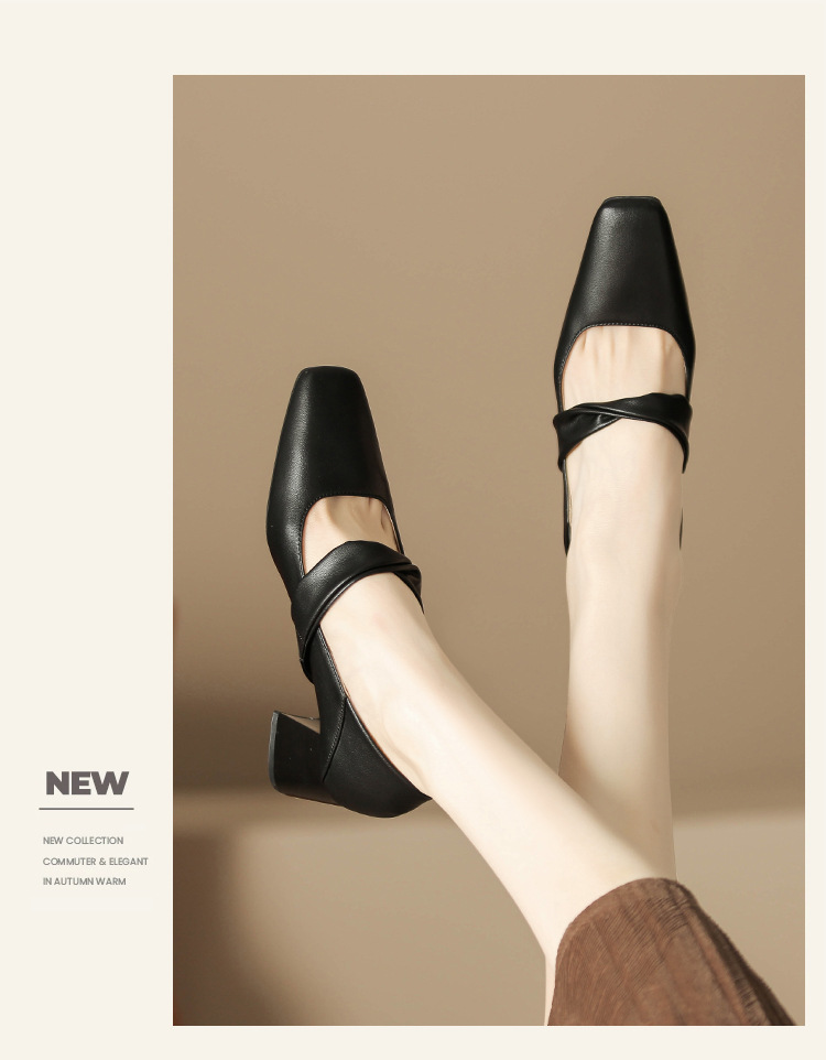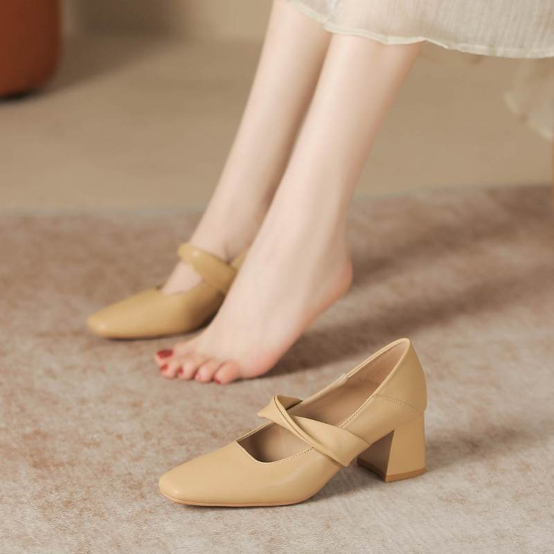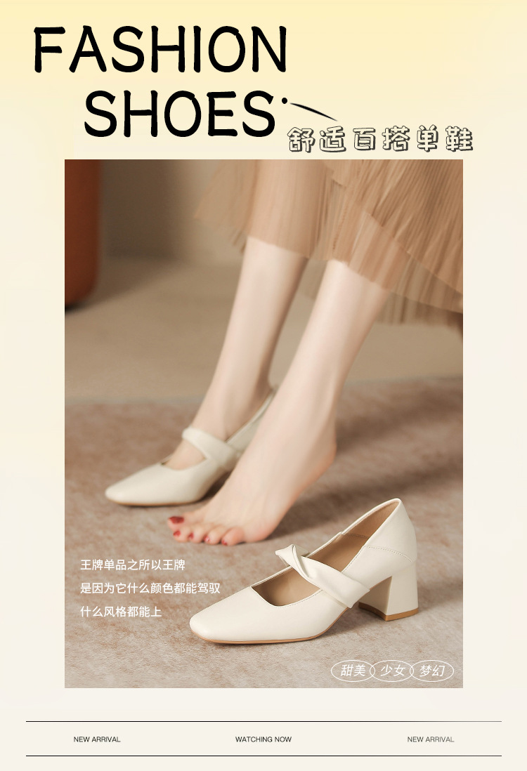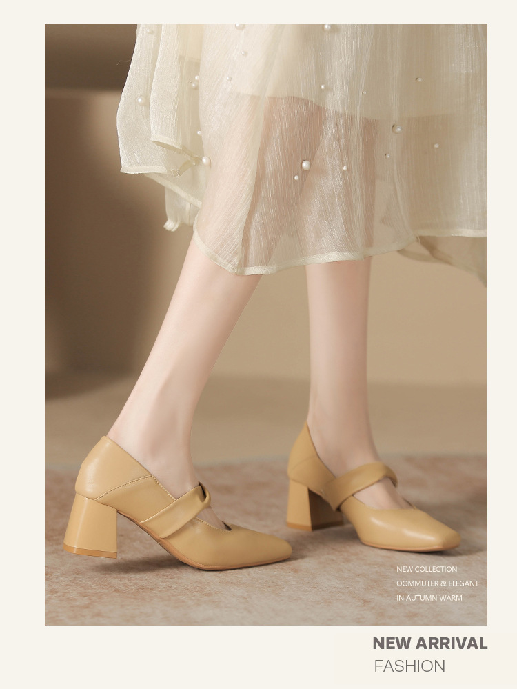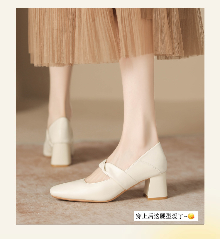 스퀘어토 메리제인 여성화, 하이힐, 두꺼운 굽의 작은 가죽신, 원스트랩 싱글슈즈, 새로운 중국풍 신발, 중국풍 치파오 신발스토어 가기