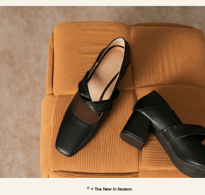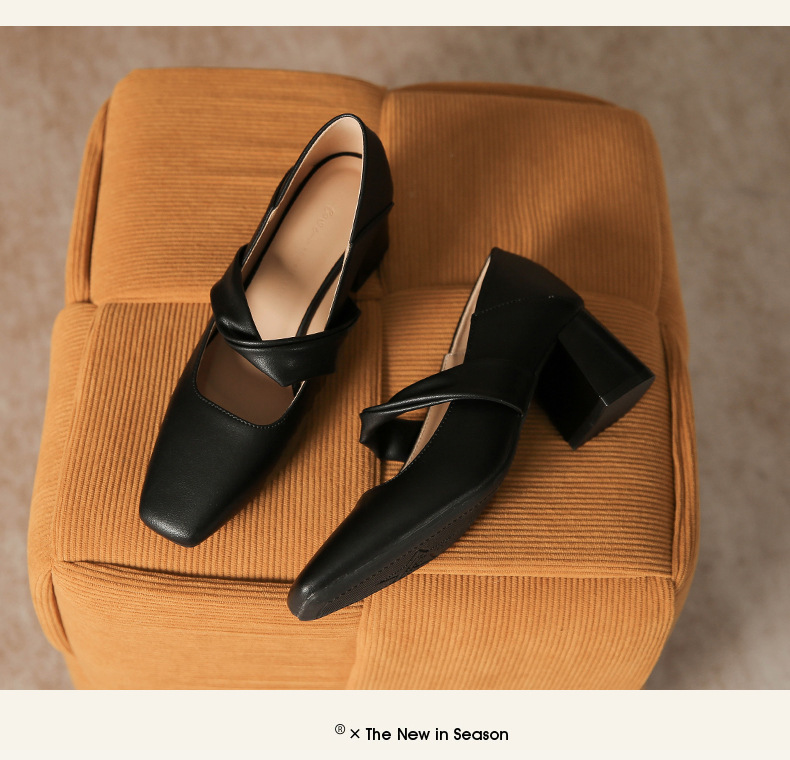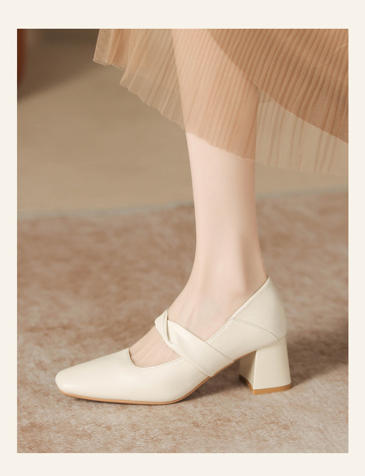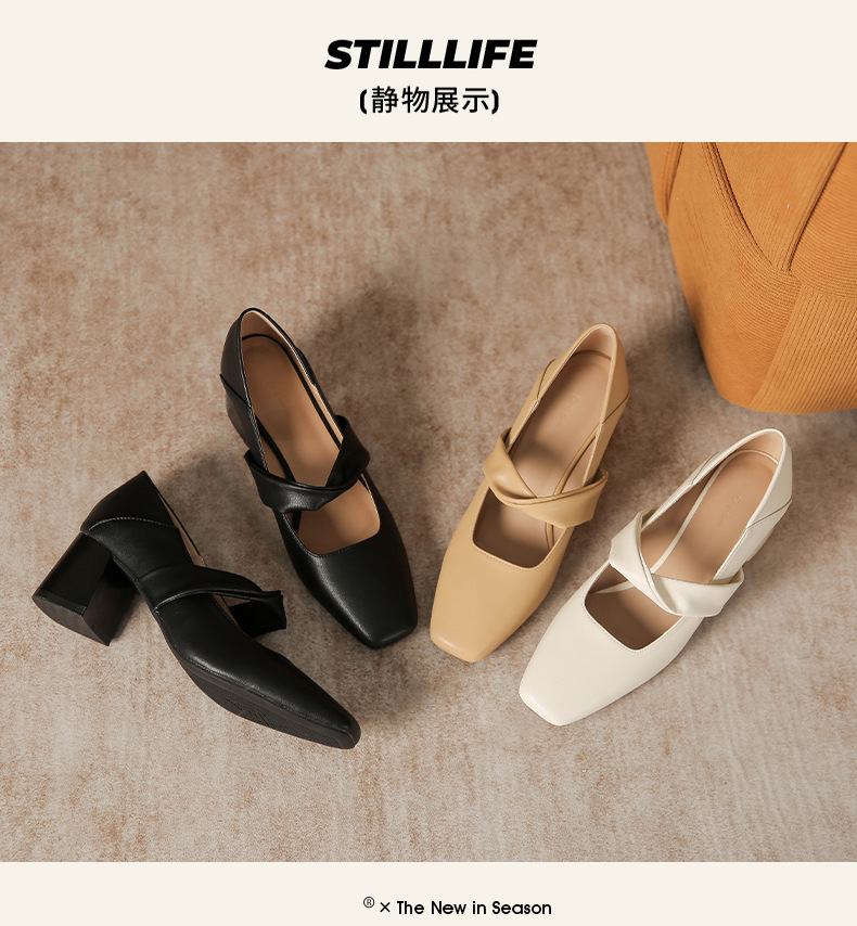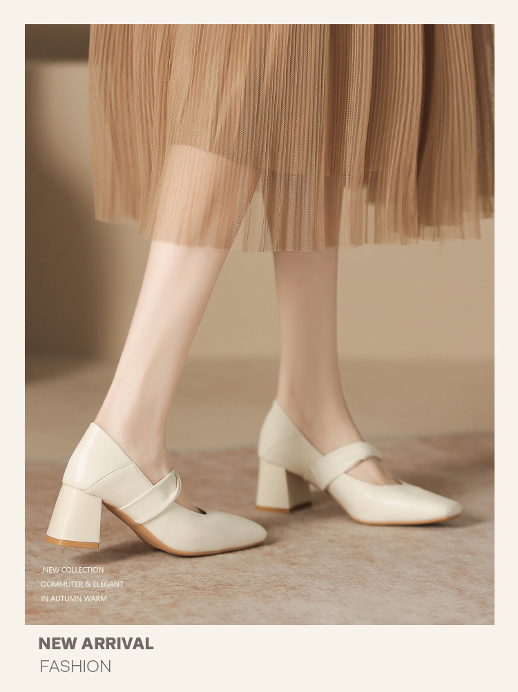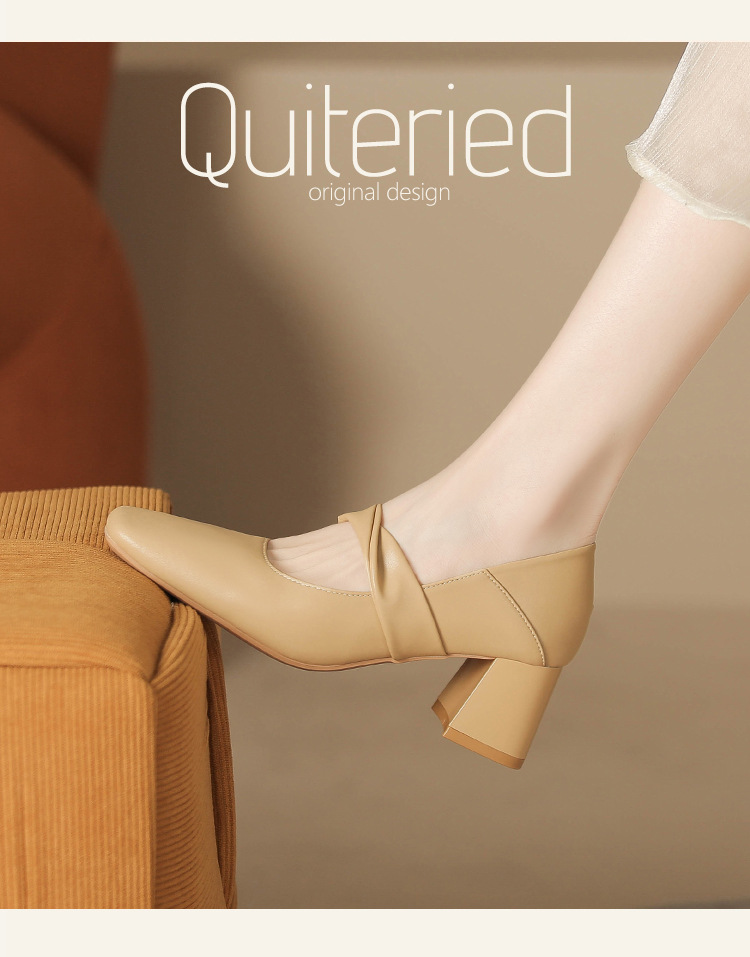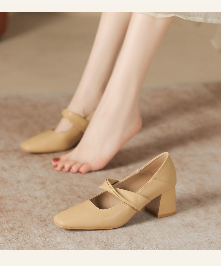 스퀘어토 메리제인 여성화, 하이힐, 두꺼운 굽의 작은 가죽신, 원스트랩 싱글슈즈, 새로운 중국풍 신발, 중국풍 치파오 신발스토어 가기