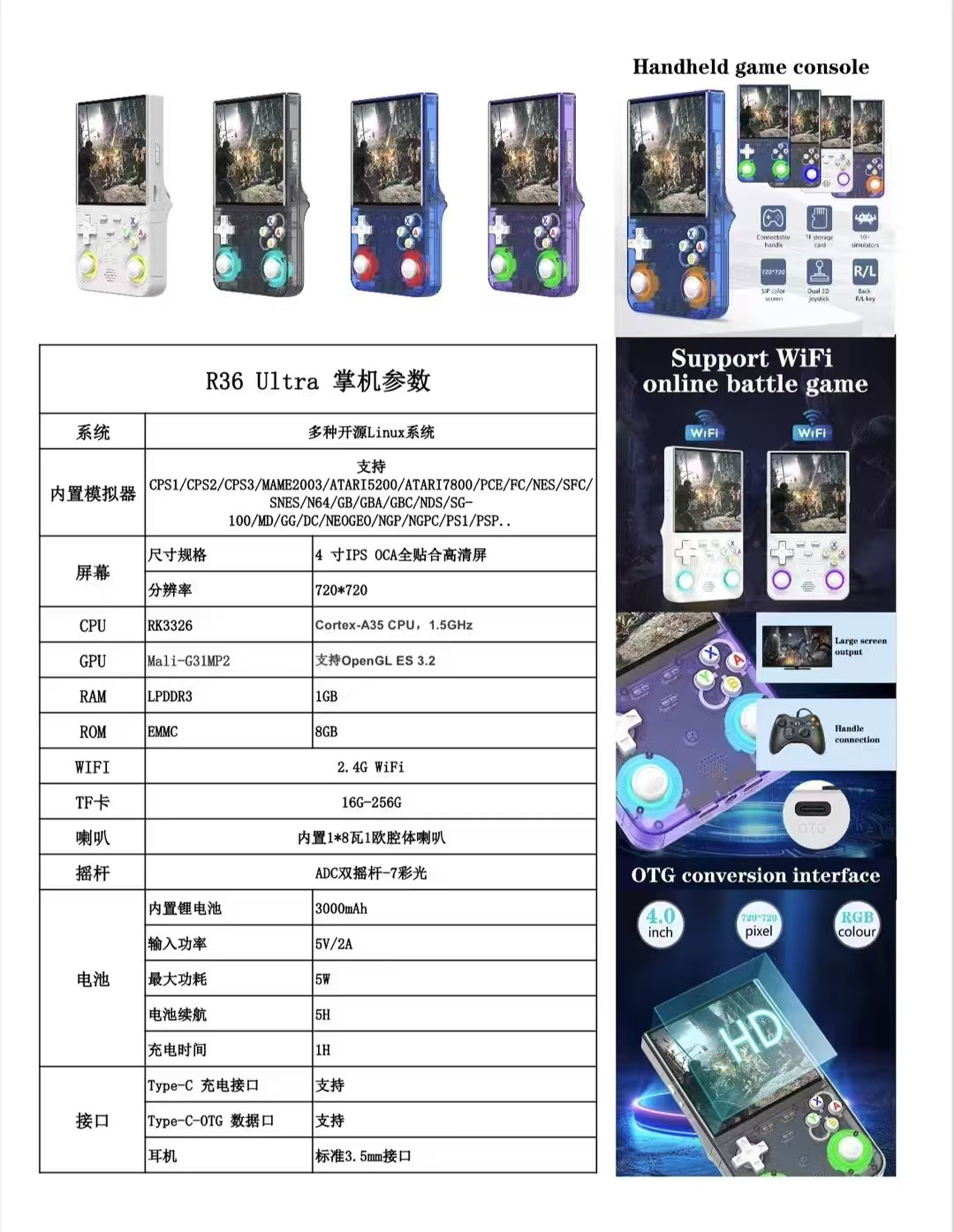 국경 간 새로운 R36 울트라 오픈 소스 핸드 헬드 게임기 4.0 HD 화면 휴대용 레트로 핸드 헬드 향수 아케이드