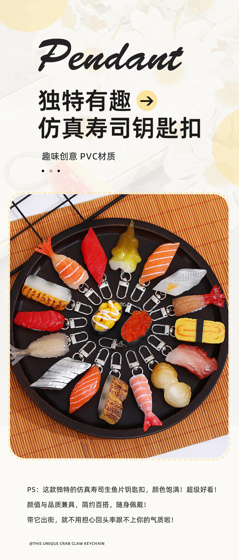 PVC 패션 시뮬레이션 일본 스시 키 체인 사진 시뮬레이션 식품 소품 학생 스쿨백 DIY 펜던트