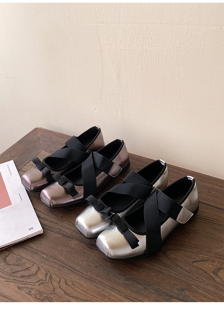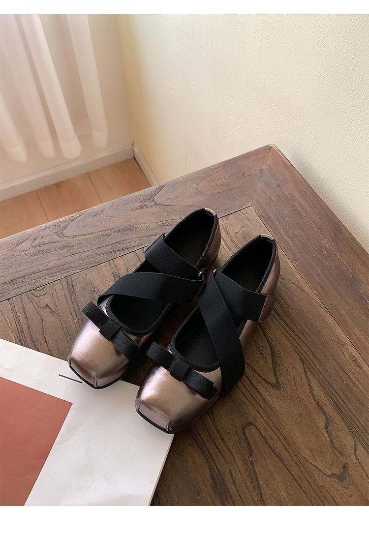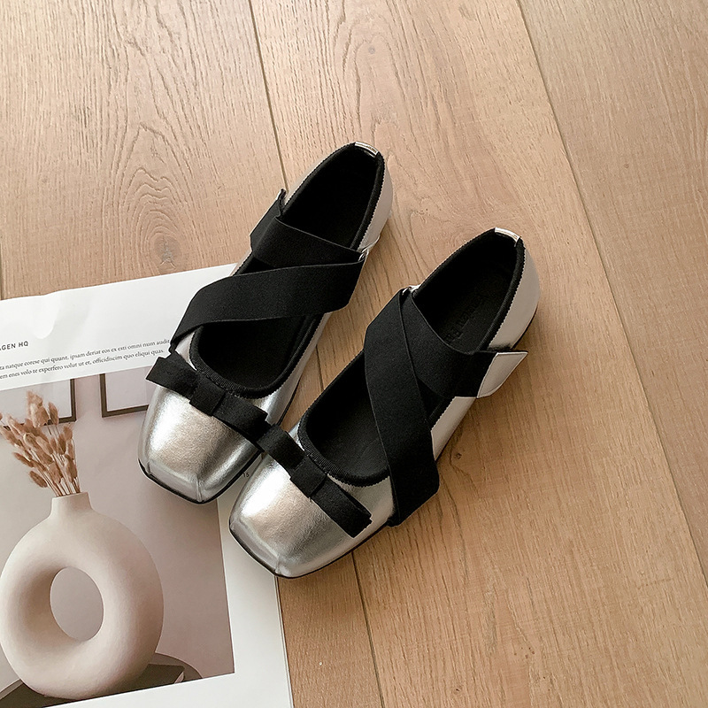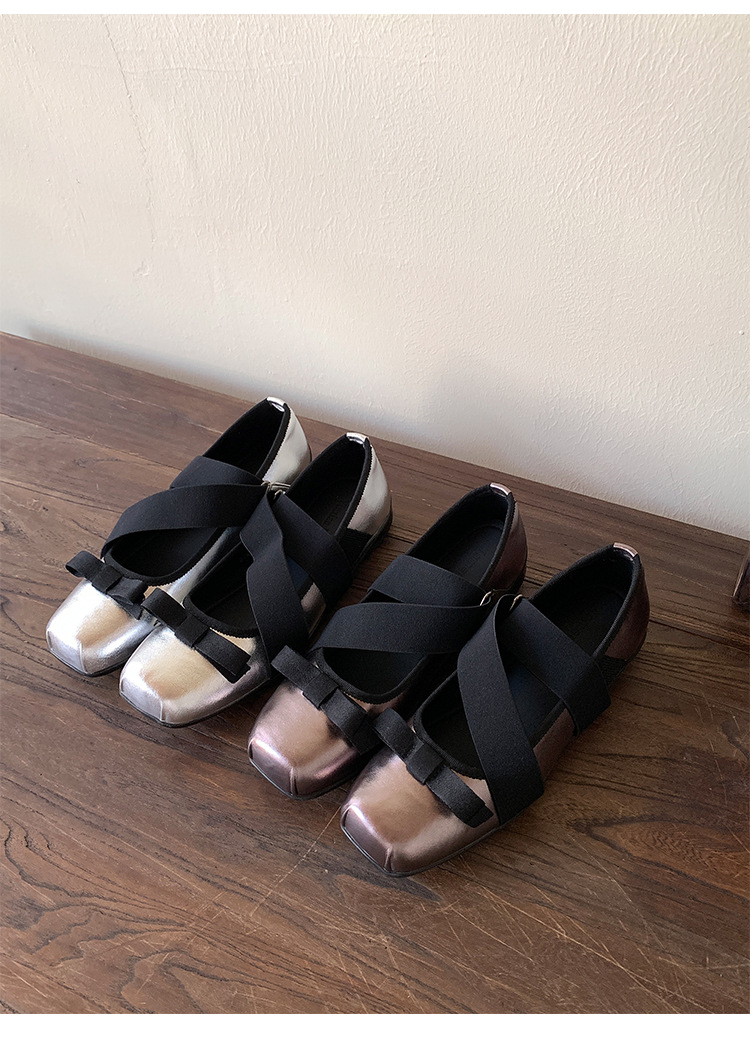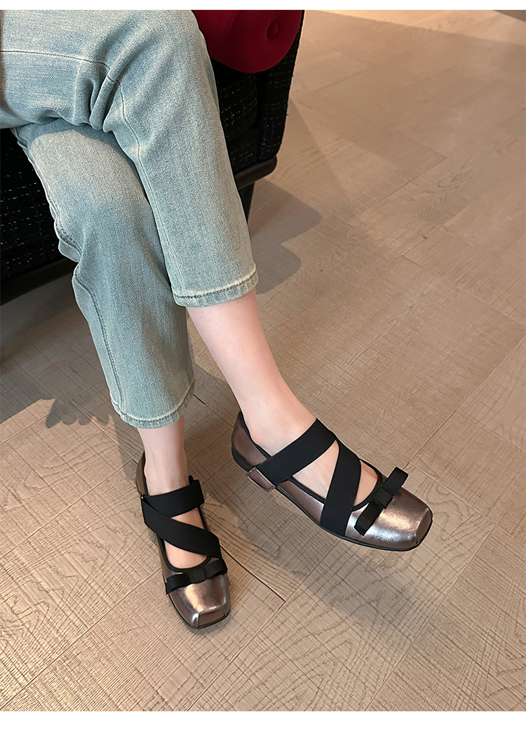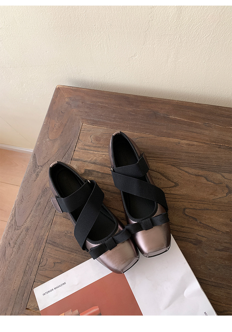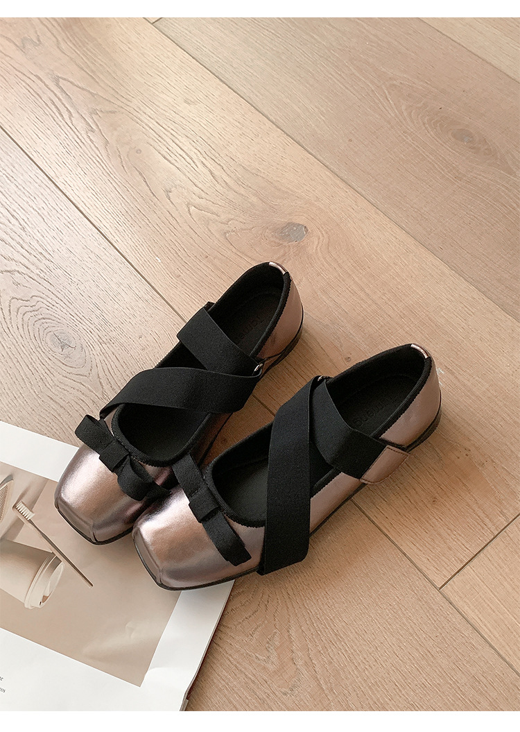 여성을위한 정품 가죽 발레 신발 2025 봄과 여름 복고풍 크로스 스트랩 영국 스타일 스퀘어 토 보우 메리 제인 신발스토어 가기