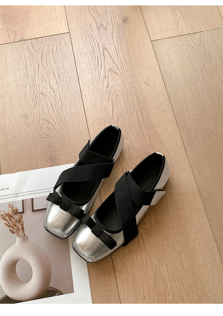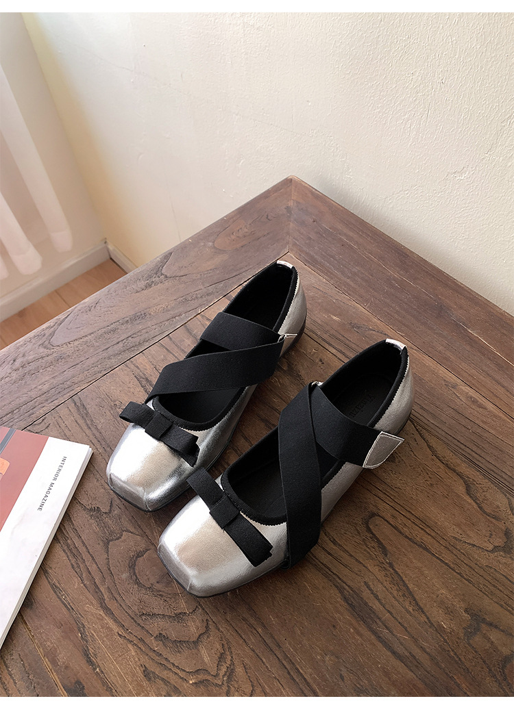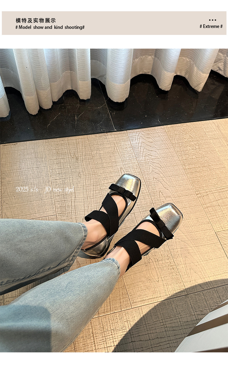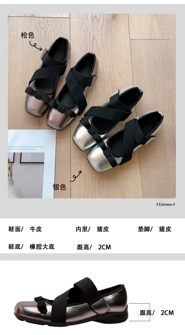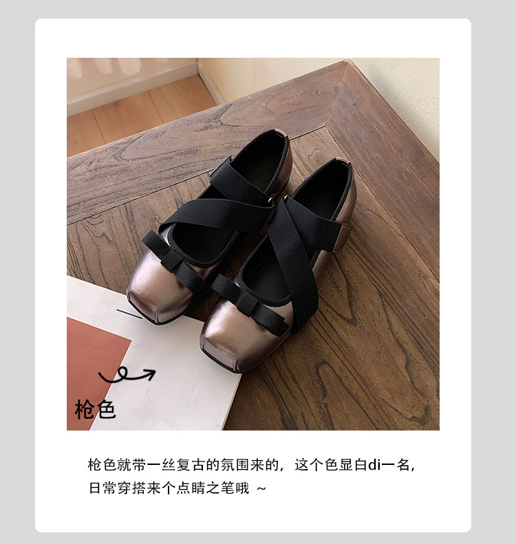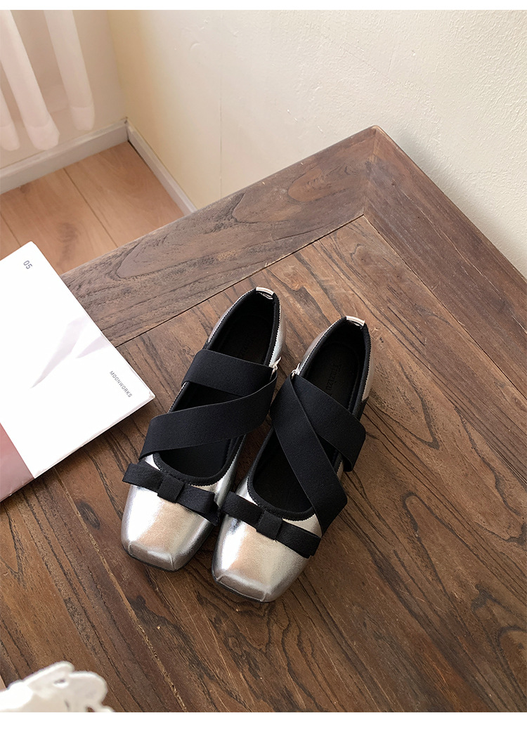 여성을위한 정품 가죽 발레 신발 2025 봄과 여름 복고풍 크로스 스트랩 영국 스타일 스퀘어 토 보우 메리 제인 신발스토어 가기