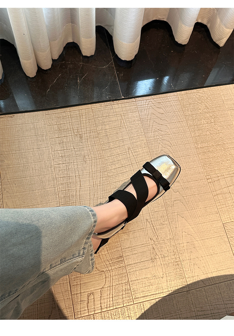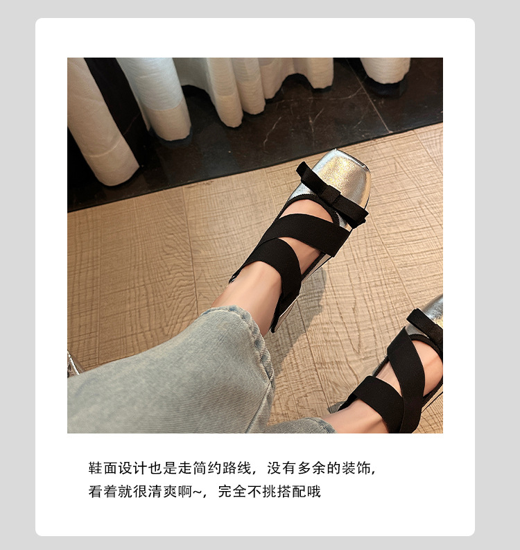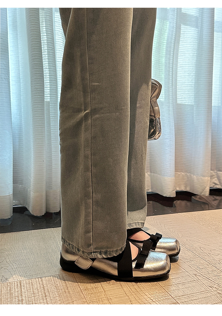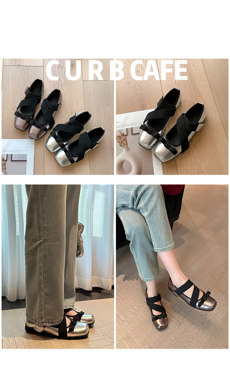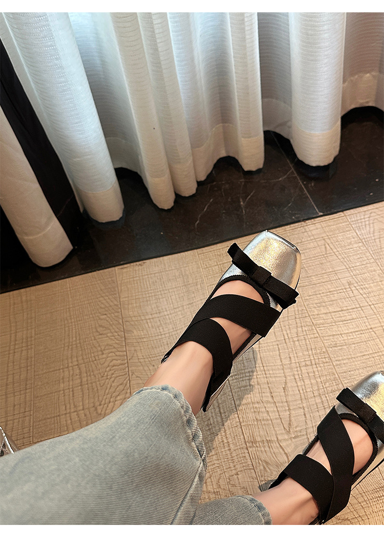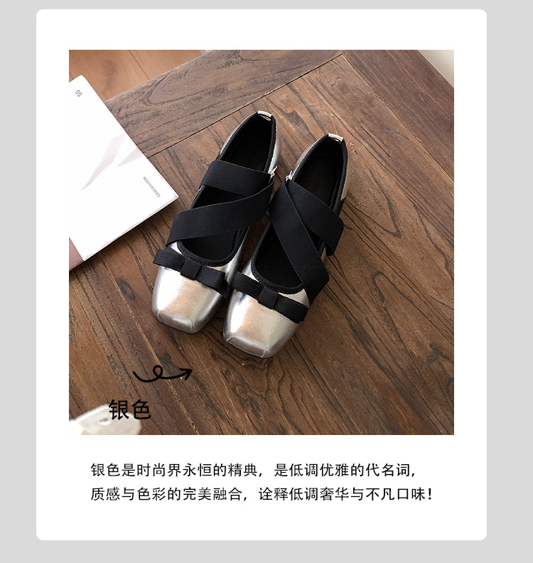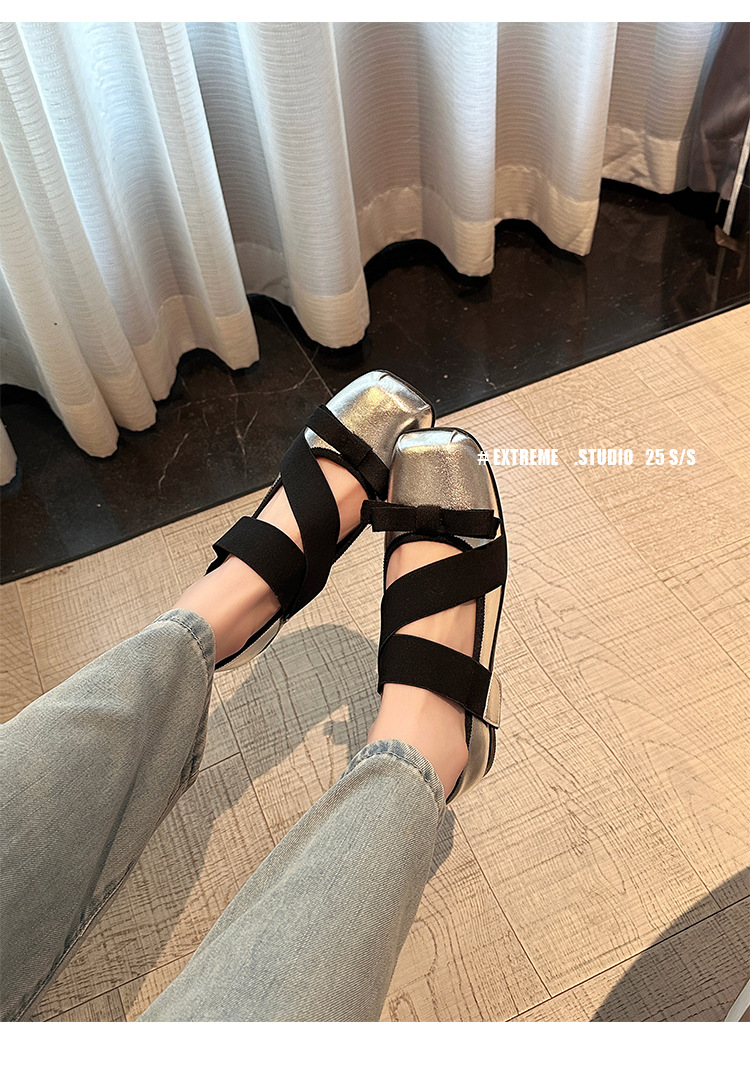 여성을위한 정품 가죽 발레 신발 2025 봄과 여름 복고풍 크로스 스트랩 영국 스타일 스퀘어 토 보우 메리 제인 신발스토어 가기