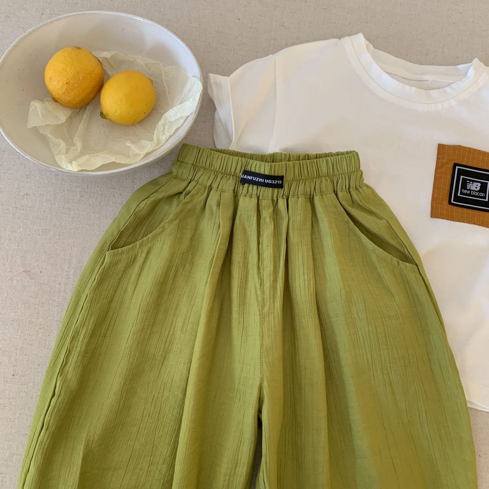 아동 바지 2025 여름 새로운 아동 의류 단색 라벨 모기 방지 바지 소녀와 소년 캐주얼 스타일 바지 트렌디하고 멋진