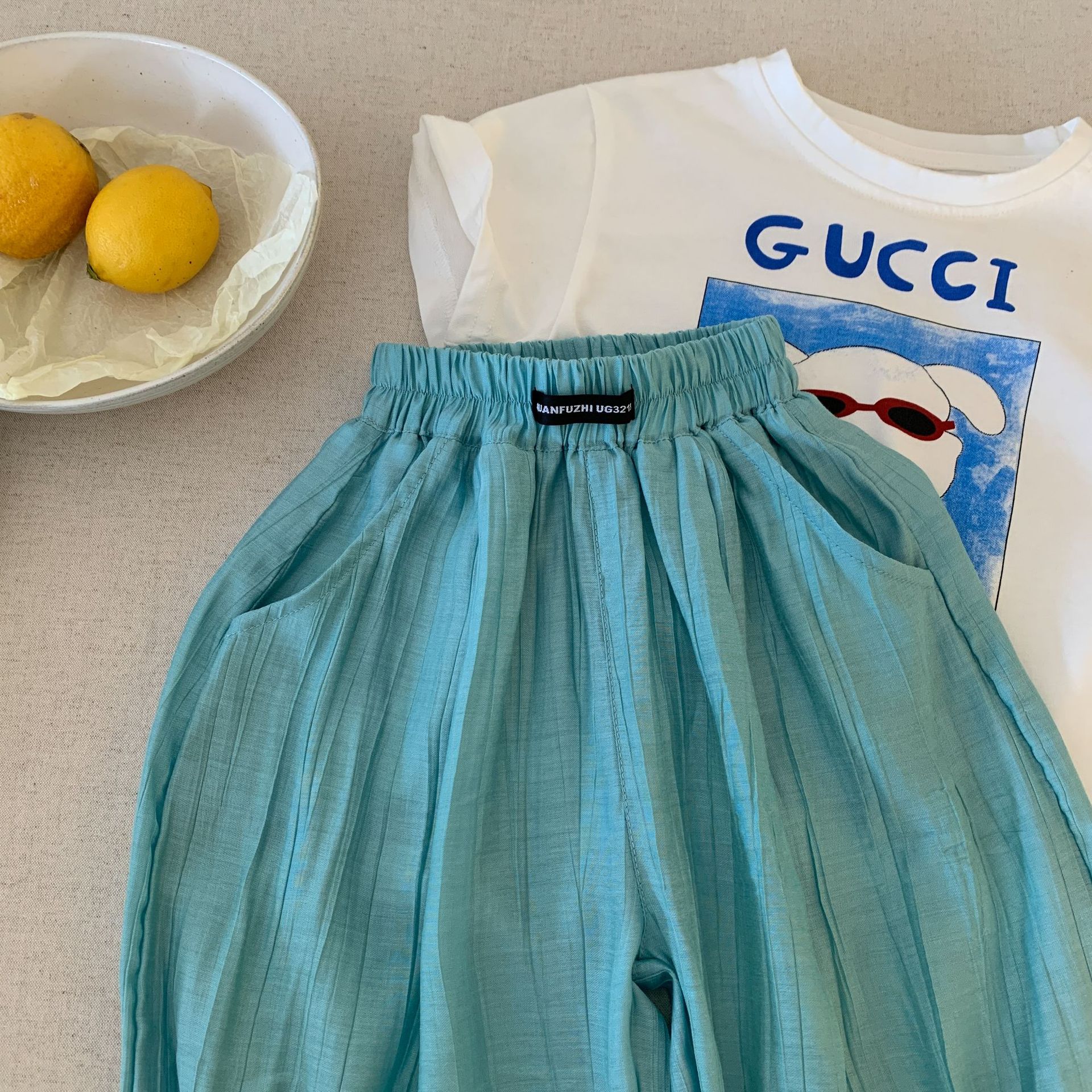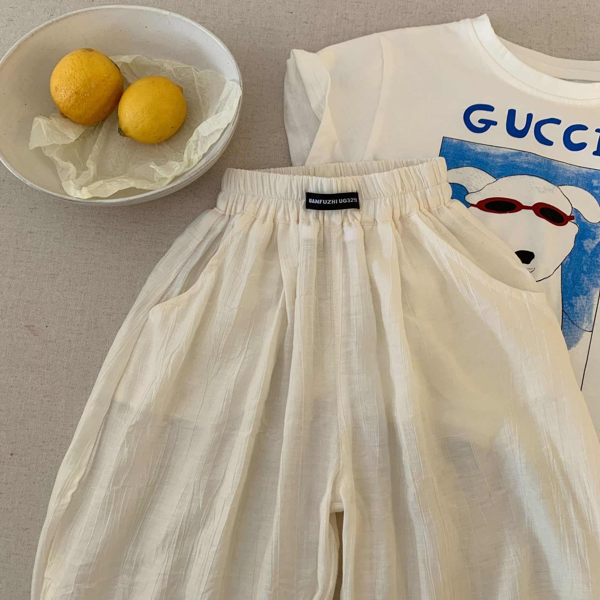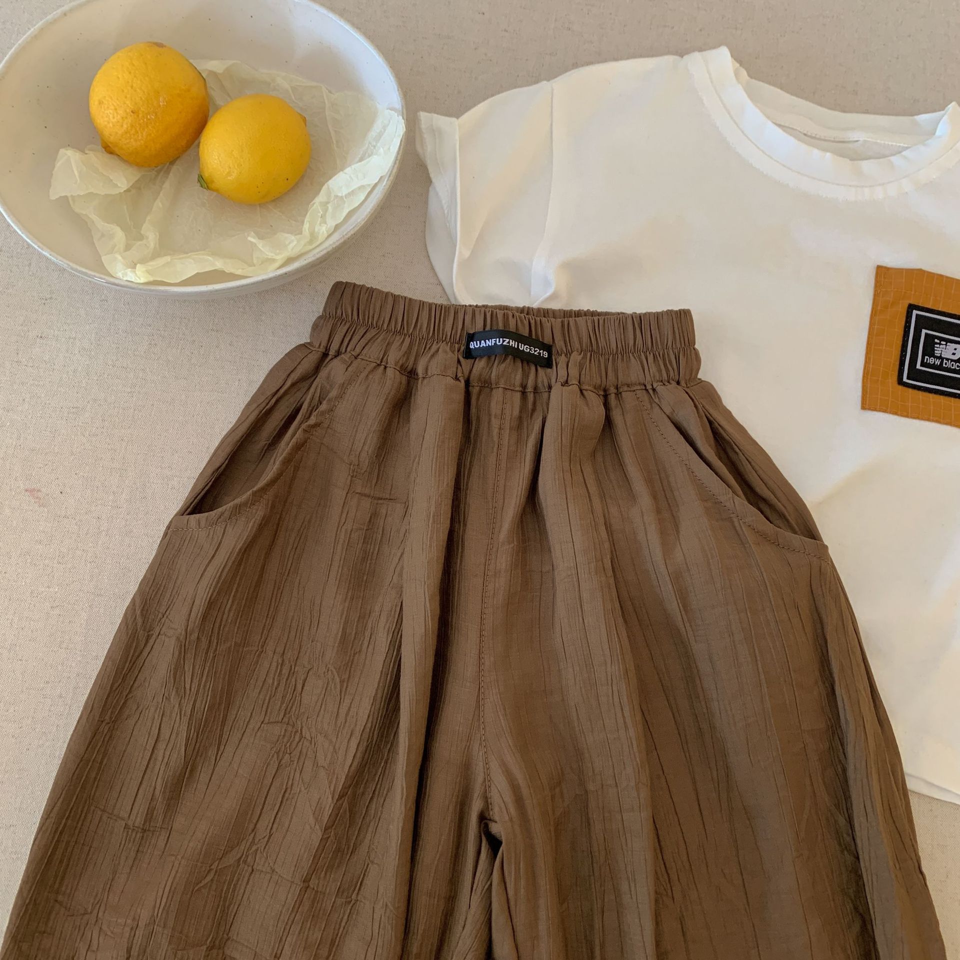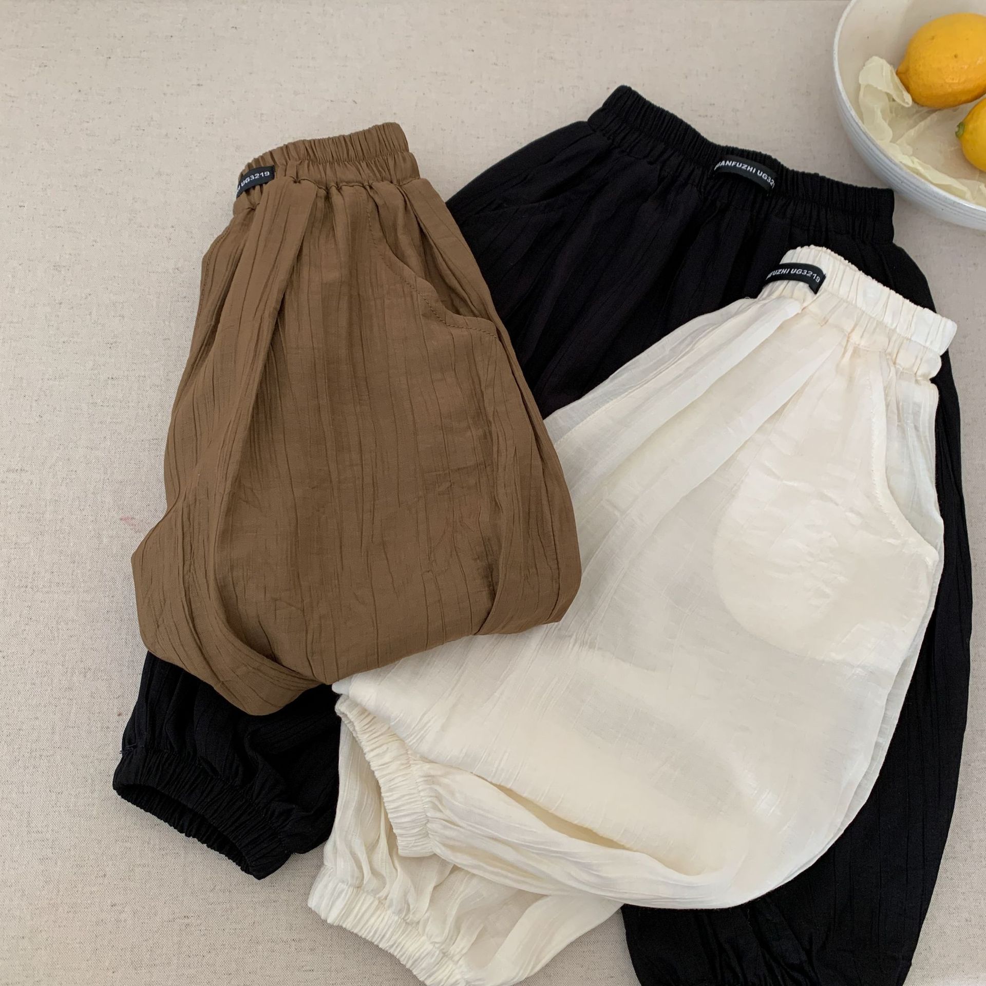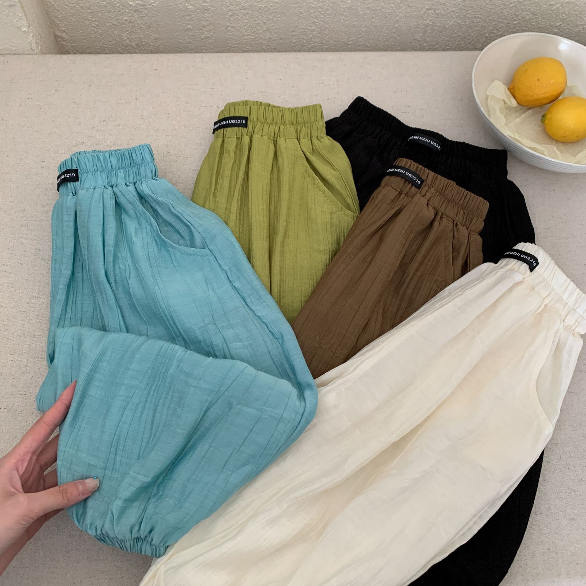 아동 바지 2025 여름 새로운 아동 의류 단색 라벨 모기 방지 바지 소녀와 소년 캐주얼 스타일 바지 트렌디하고 멋진스토어 가기