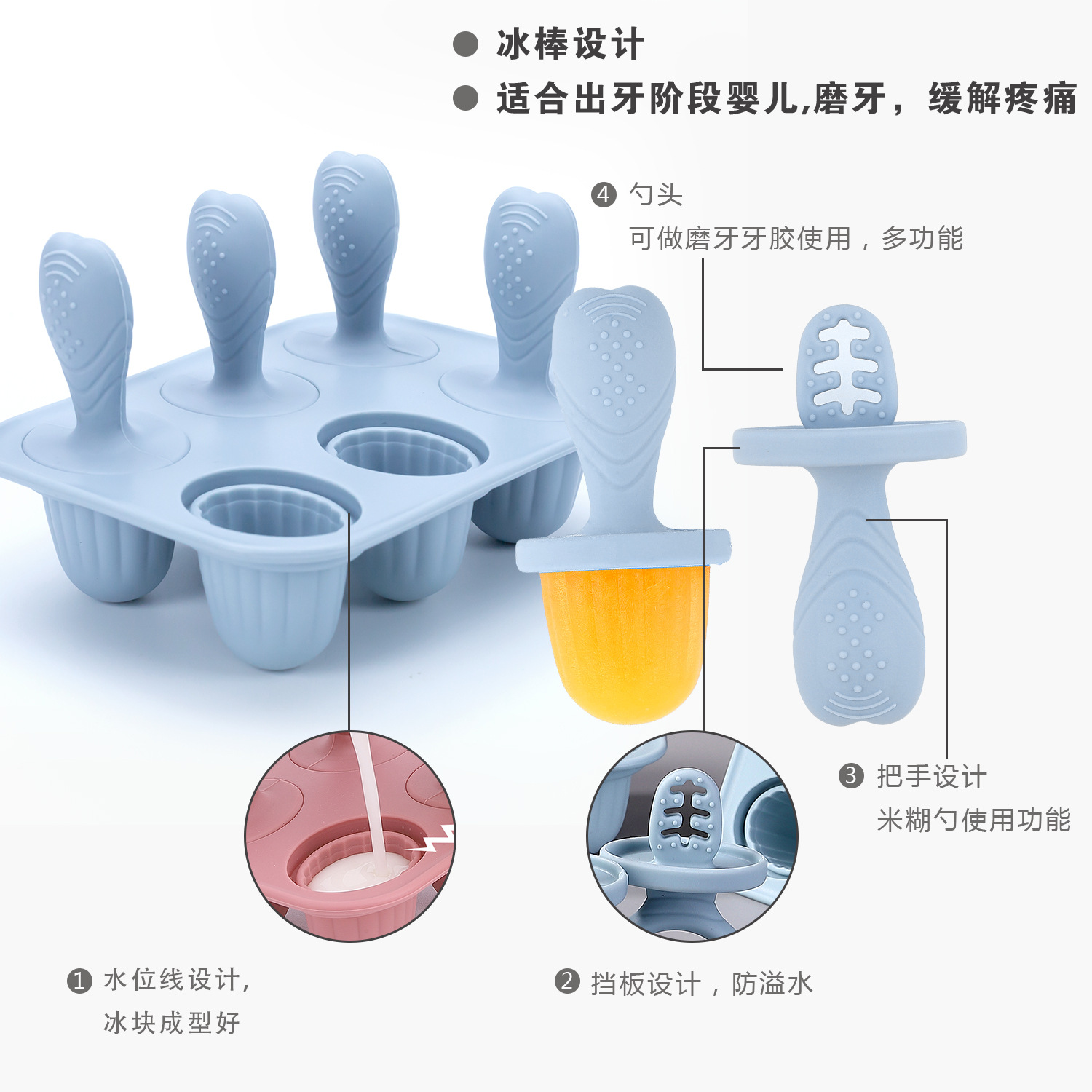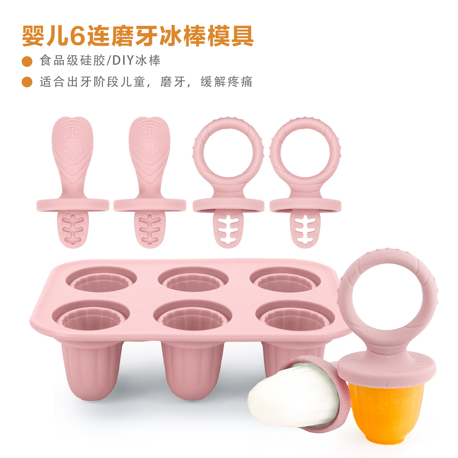 新品婴儿磨牙冰块雪糕模具食品硅胶冰糕冰棒六连冰淇淋冰激凌磨具