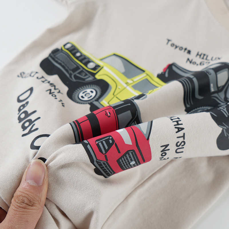 일본 어린이 티셔츠 반소매 소년 여름 만화 오토바이 면 티셔츠 1-8 세 어린이 반소매 크루 넥스토어 가기