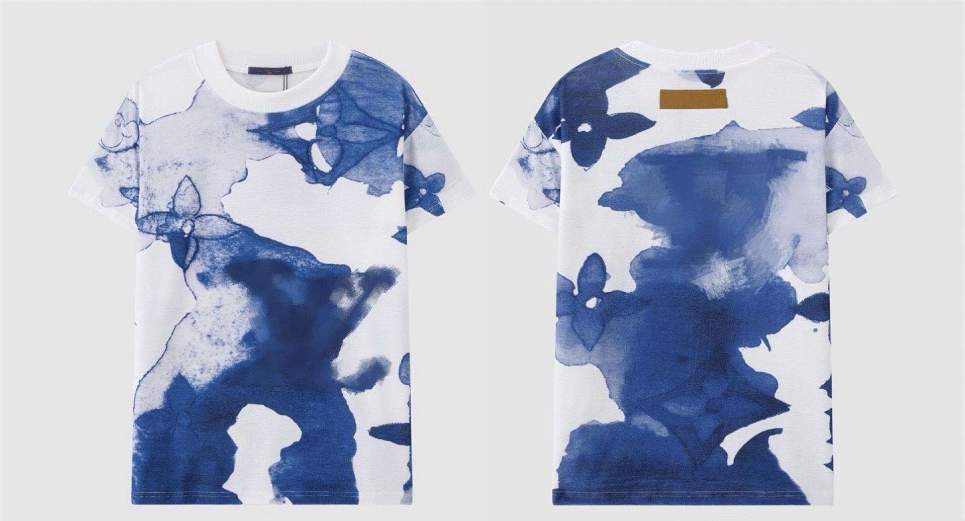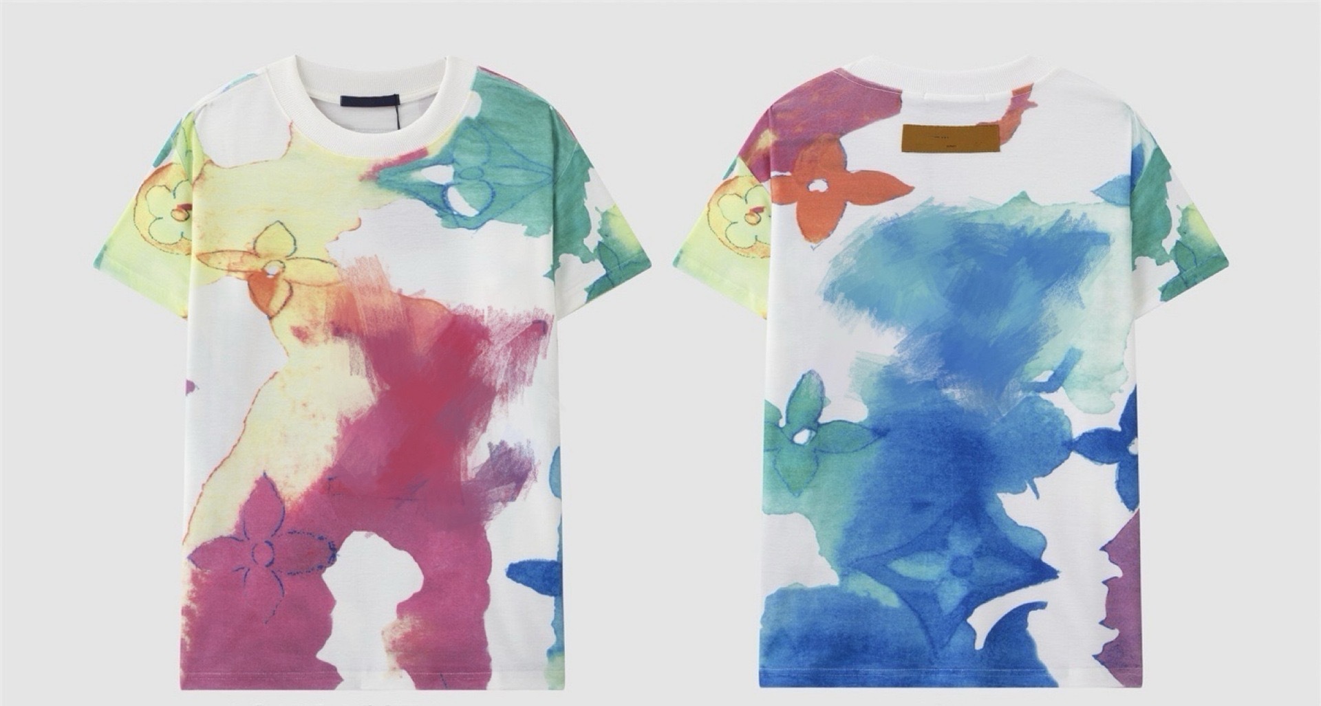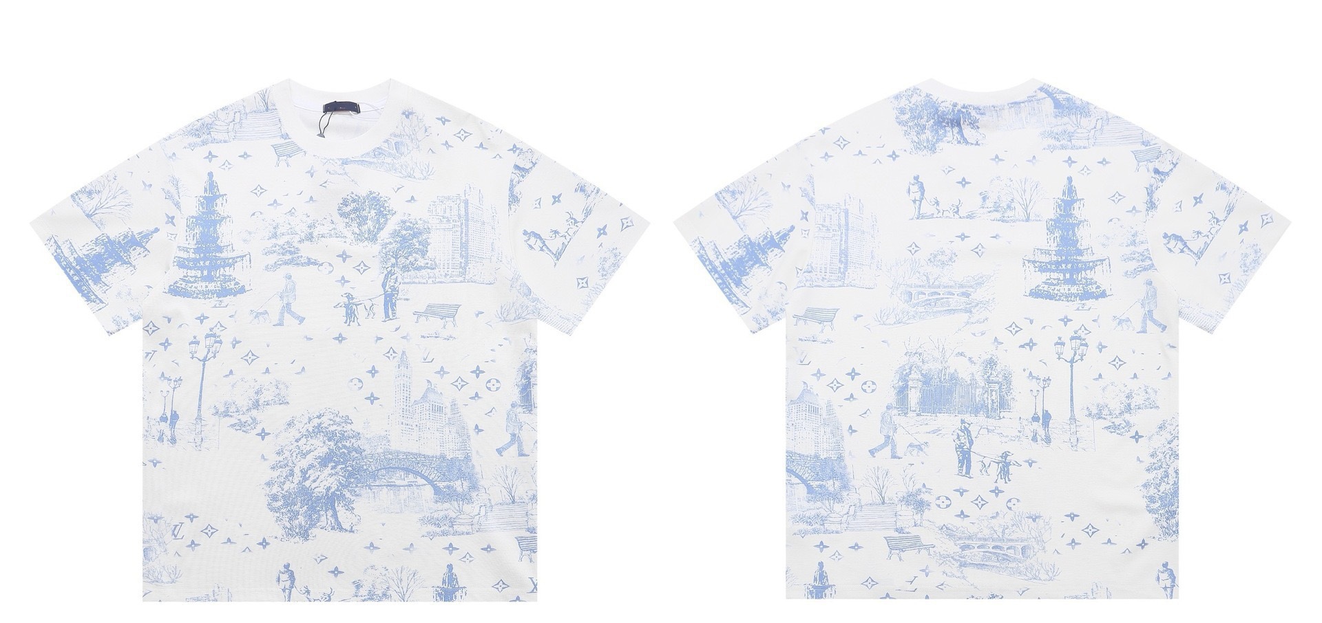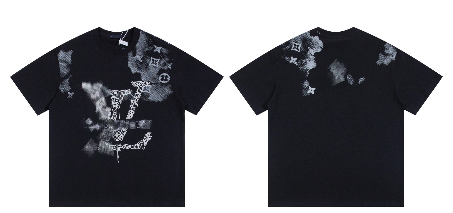 크로스보더 럭셔리 트렌디 고품질 풀 프린트 레터 반팔 트렌디 브랜드 대외 무역 유럽 제품 Lujia 라운드 넥 남성과 여성 모두에게 다재다능함