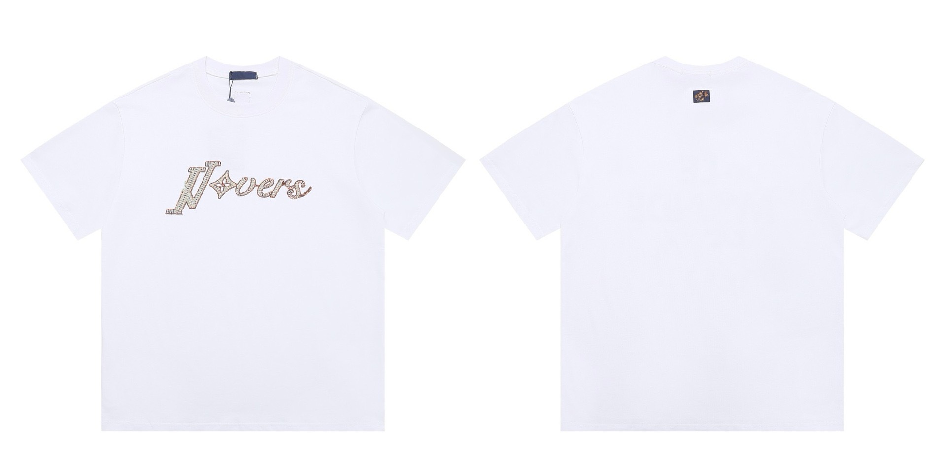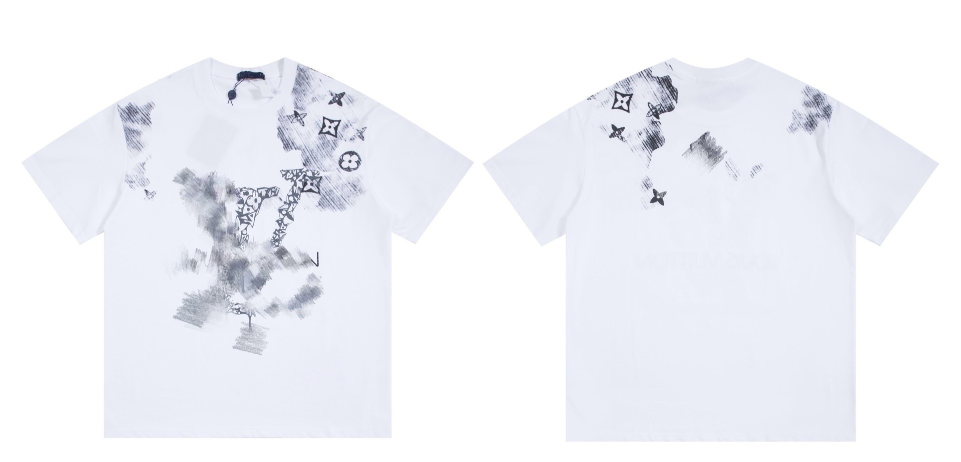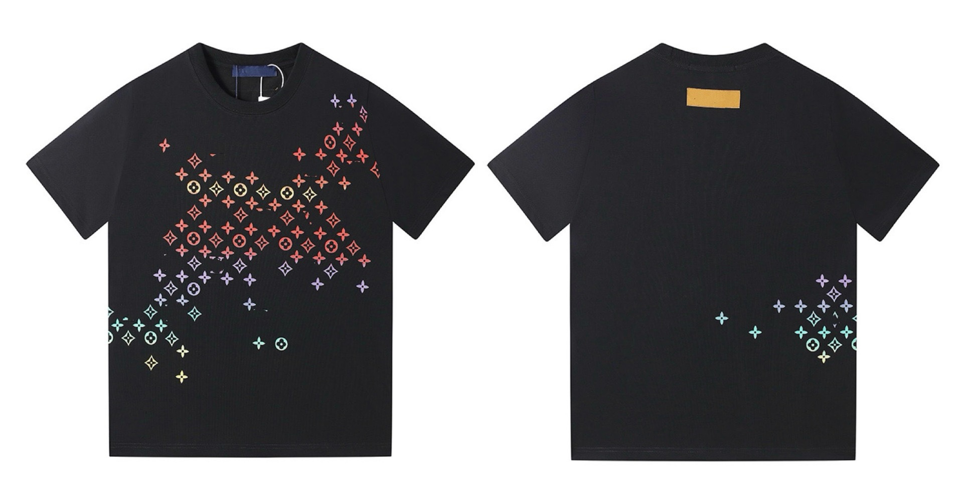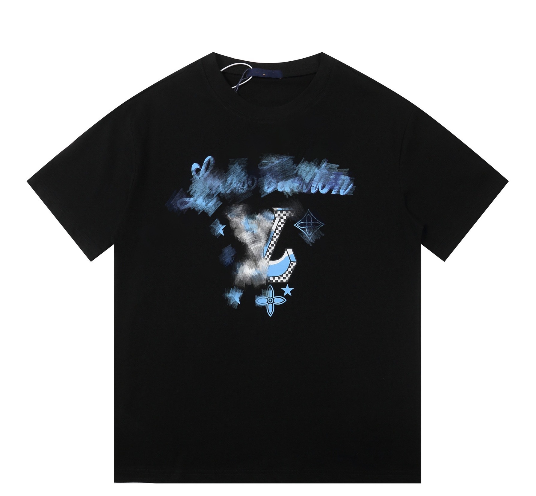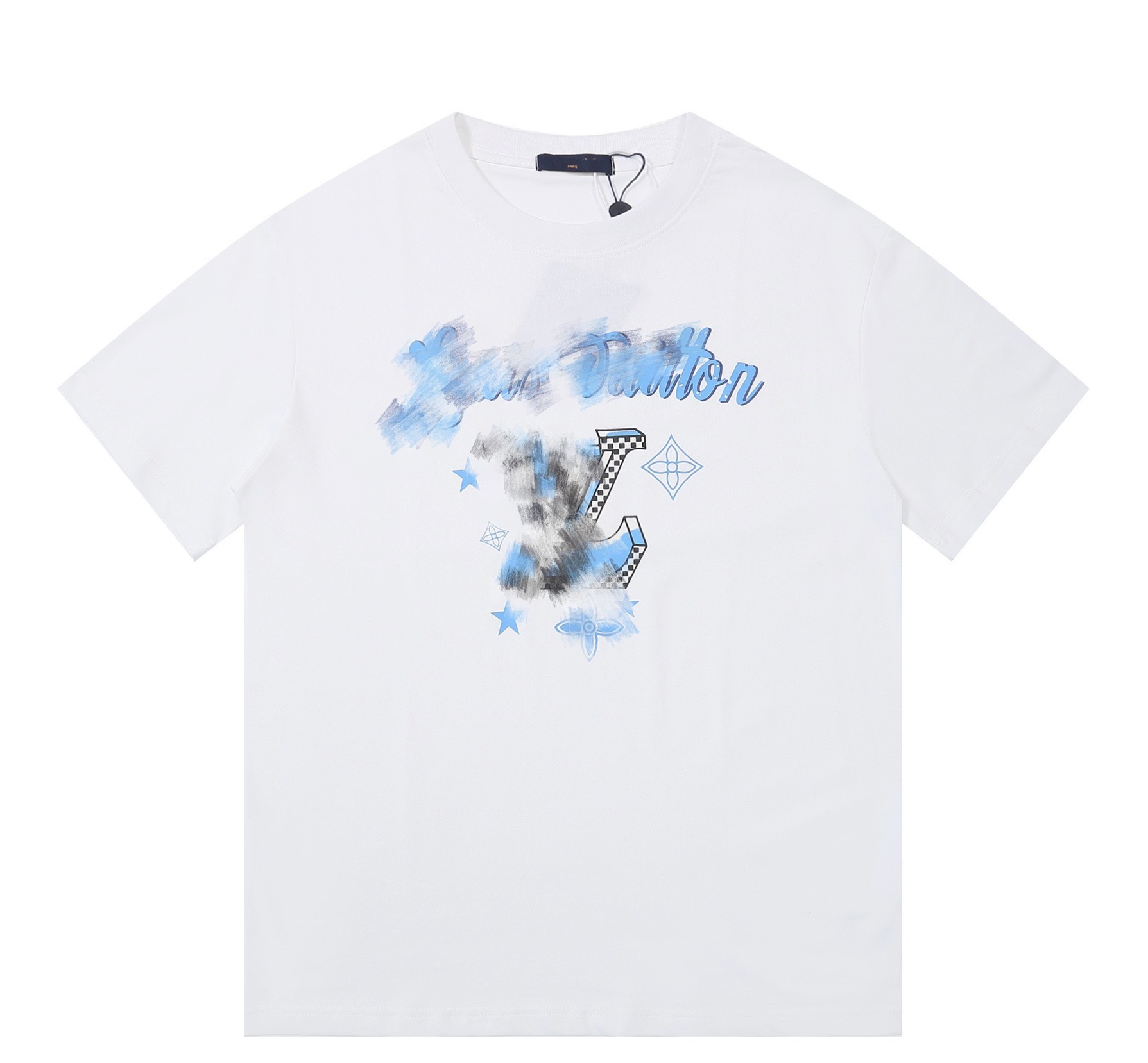크로스보더 럭셔리 트렌디 고품질 풀 프린트 레터 반팔 트렌디 브랜드 대외 무역 유럽 제품 Lujia 라운드 넥 남성과 여성 모두에게 다재다능함