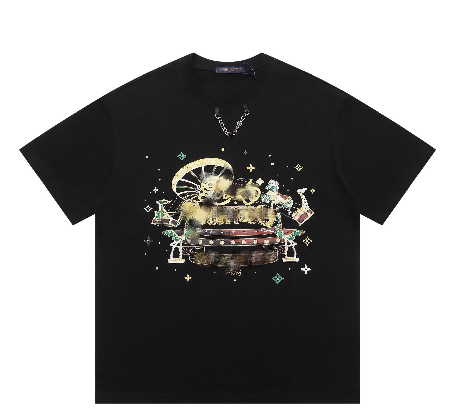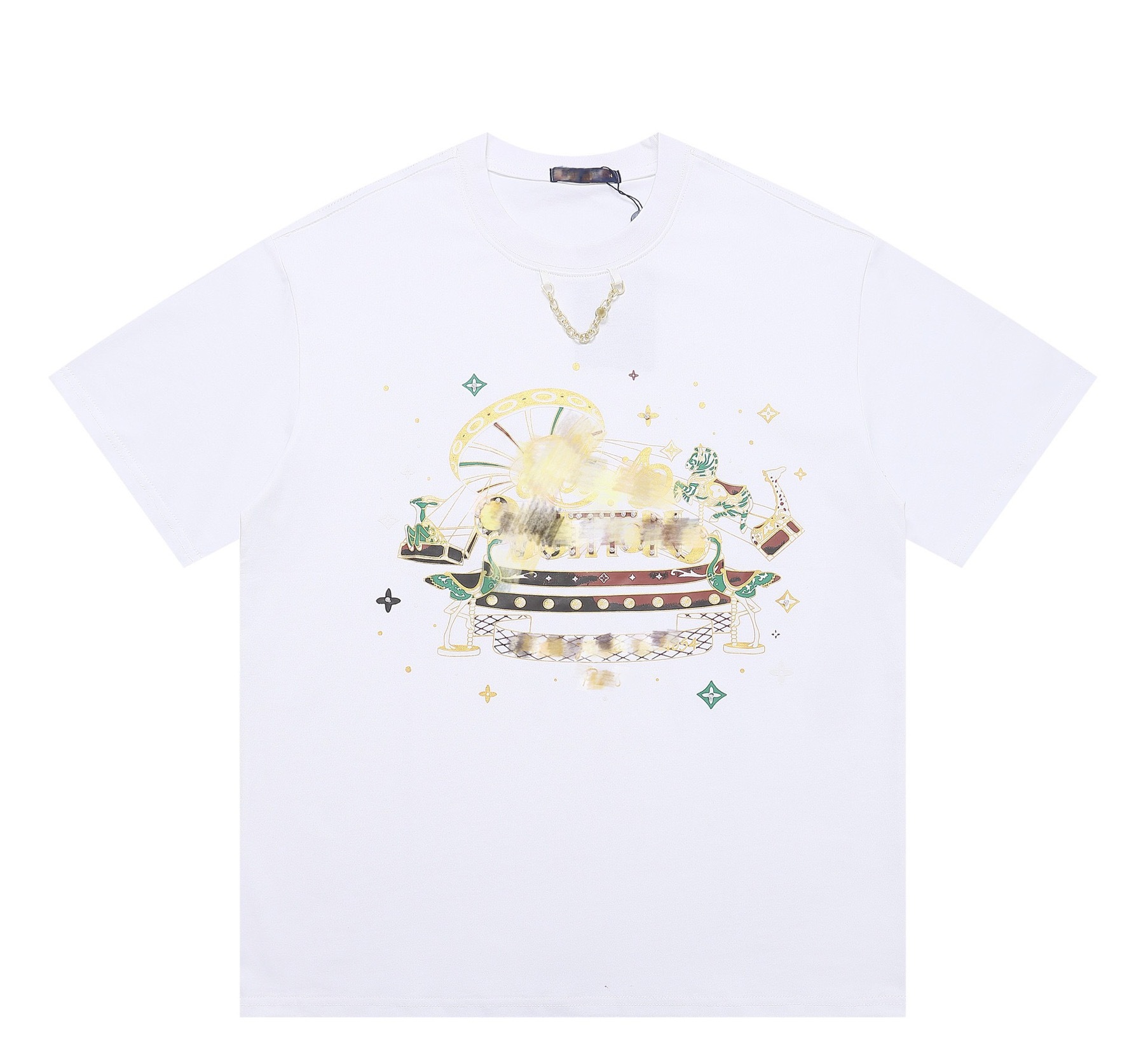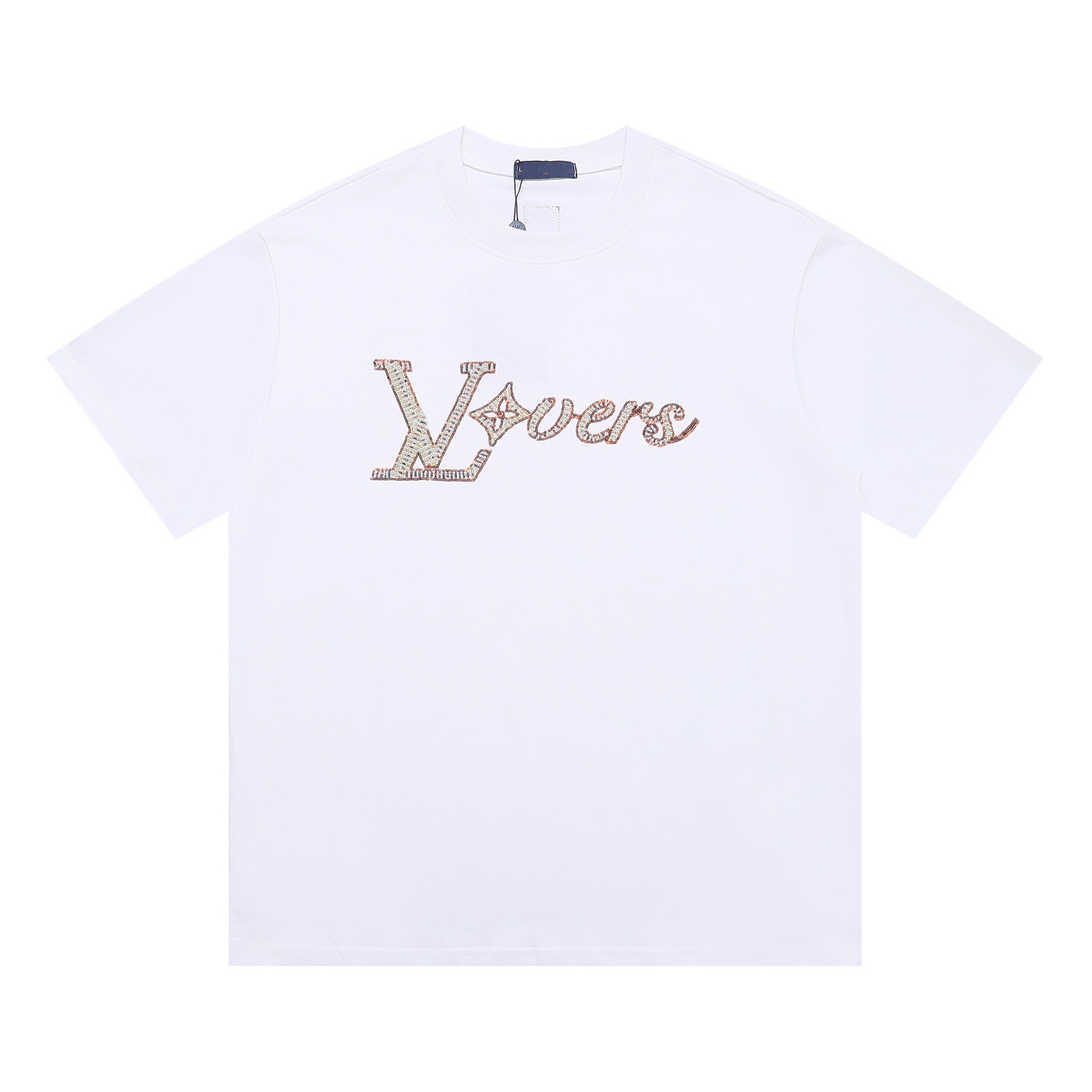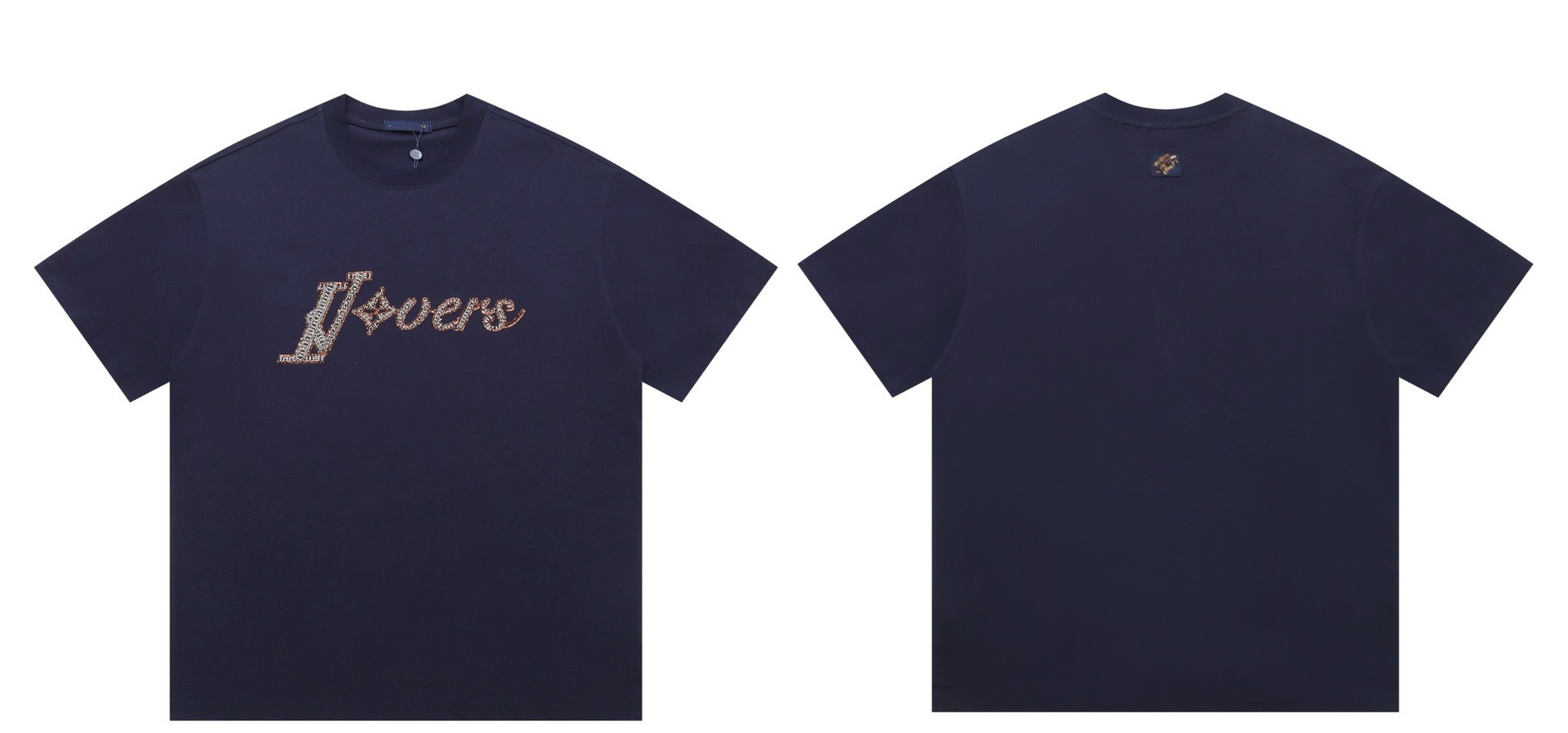 크로스보더 럭셔리 트렌디 고품질 풀 프린트 레터 반팔 트렌디 브랜드 대외 무역 유럽 제품 Lujia 라운드 넥 남성과 여성 모두에게 다재다능함