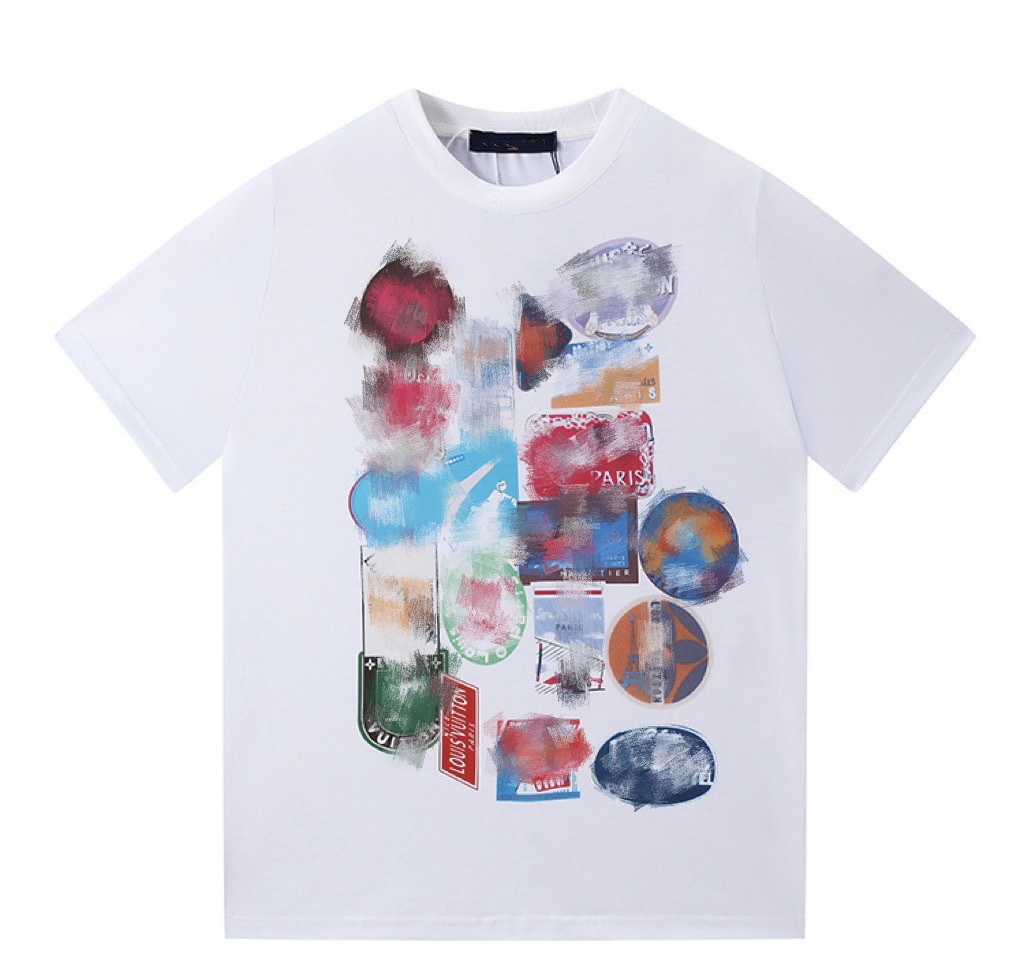 크로스보더 럭셔리 트렌디 고품질 풀 프린트 레터 반팔 트렌디 브랜드 대외 무역 유럽 제품 Lujia 라운드 넥 남성과 여성 모두에게 다재다능함스토어 가기