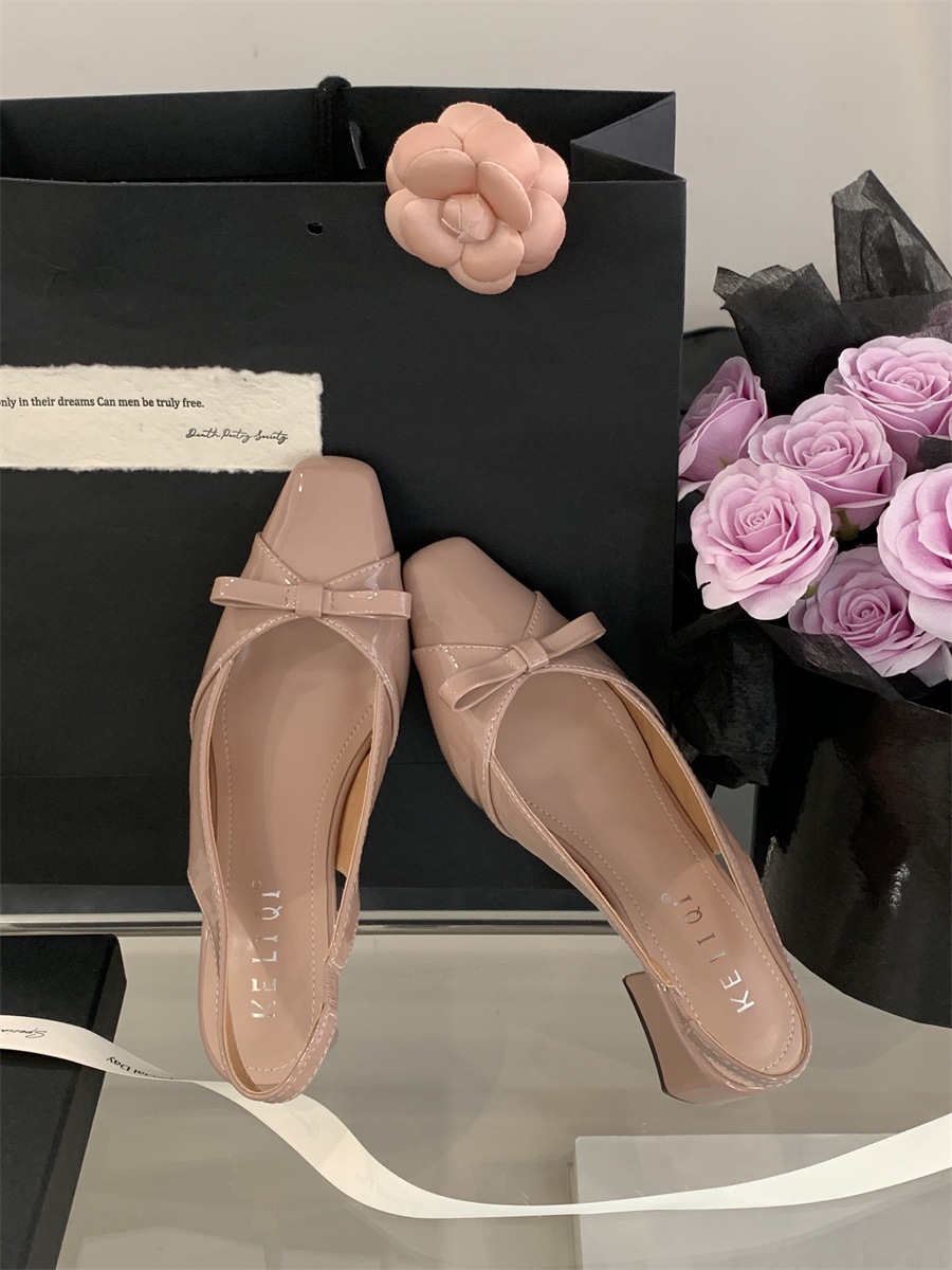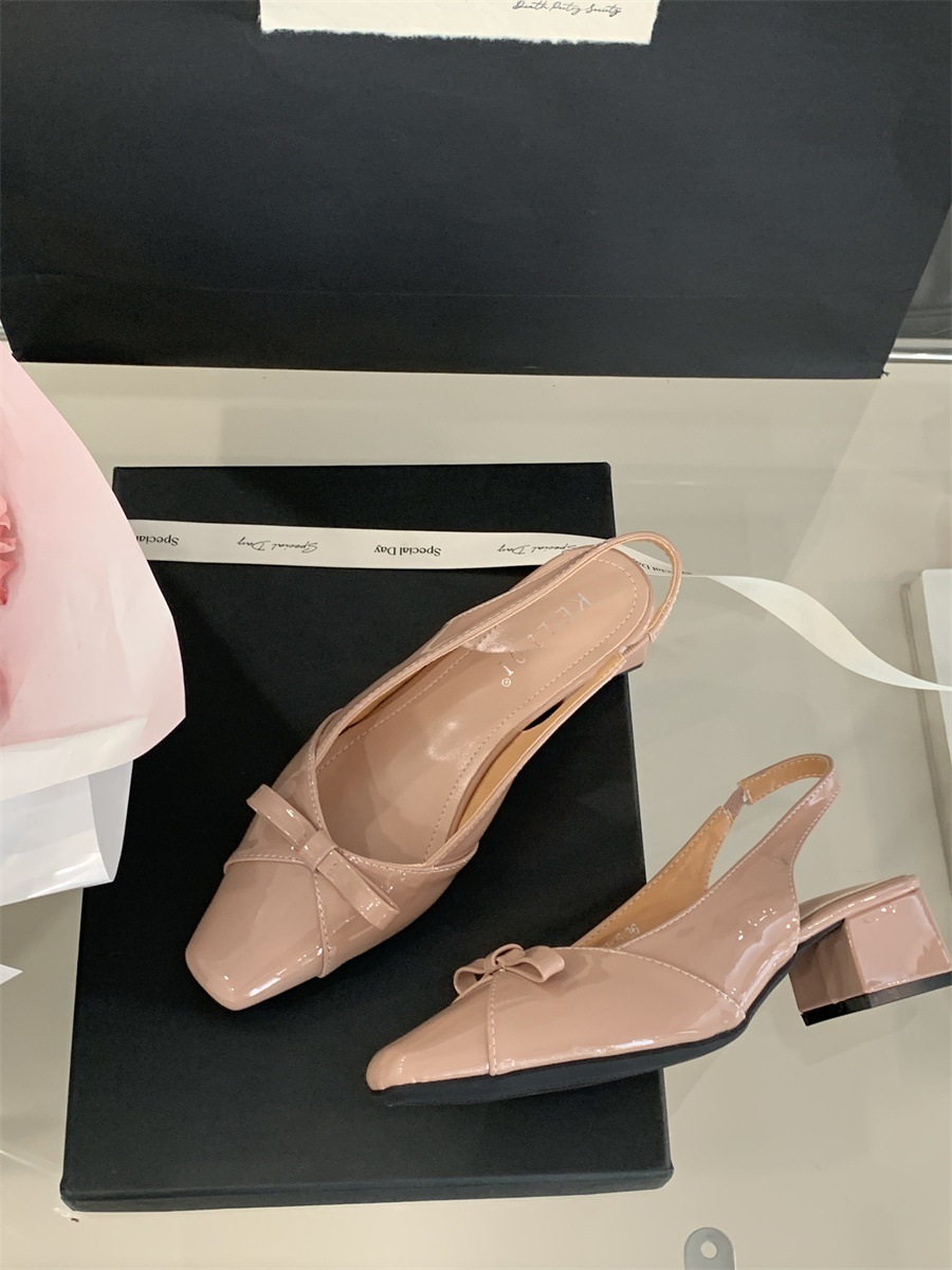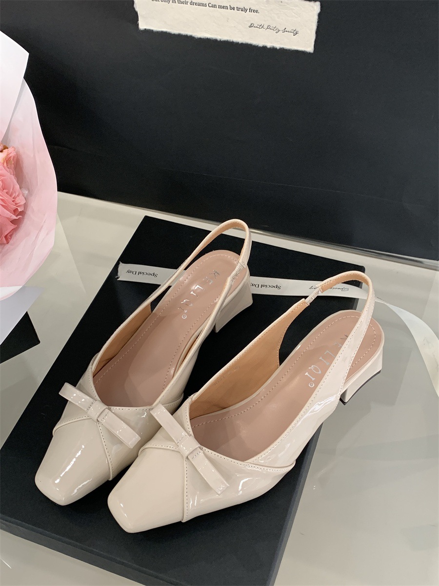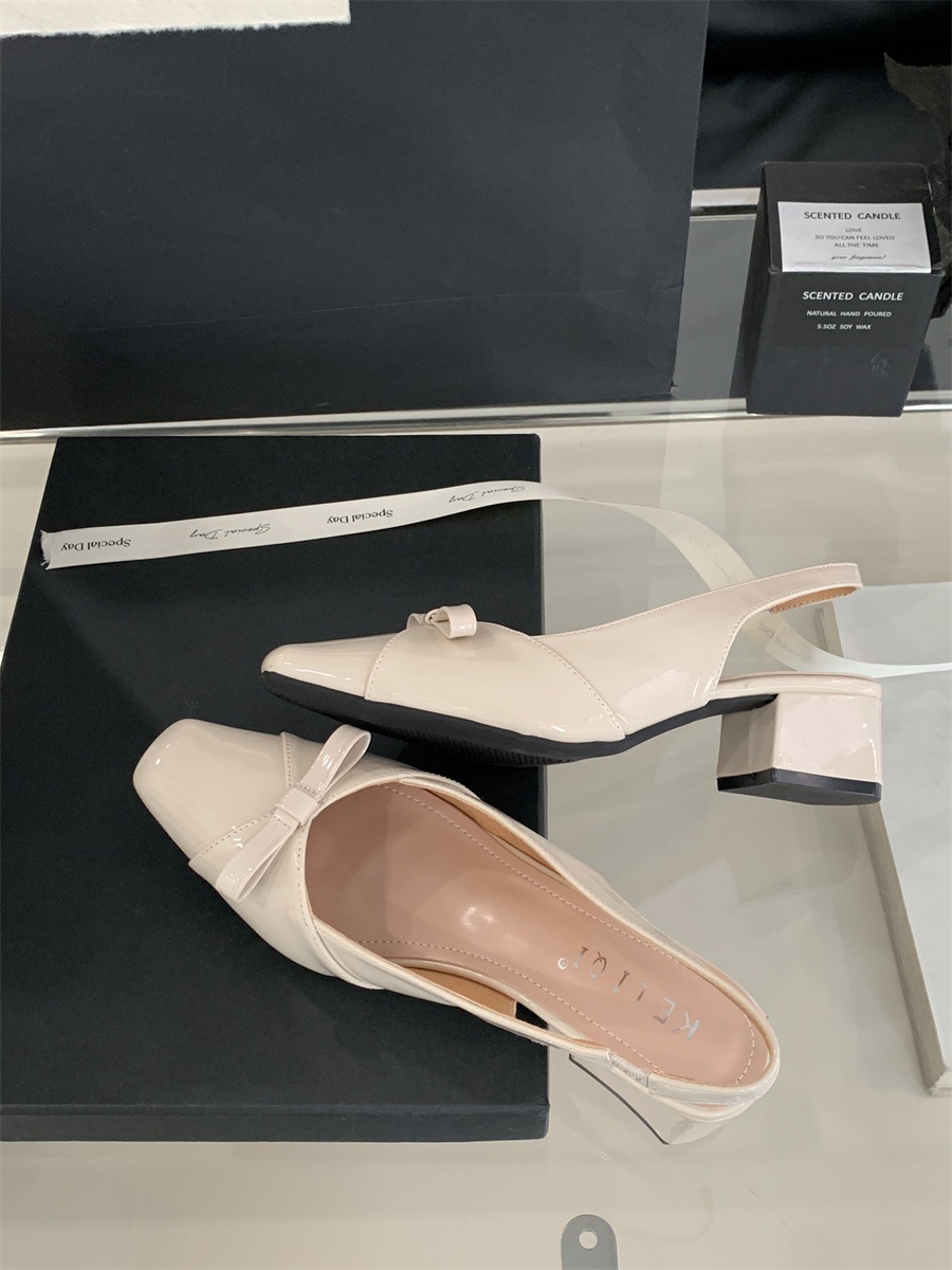 두꺼운 미드힐 프렌치 스퀘어 토 보우 샌들 여름 신상 슬립온 슈즈 스커트 요정 신발스토어 가기