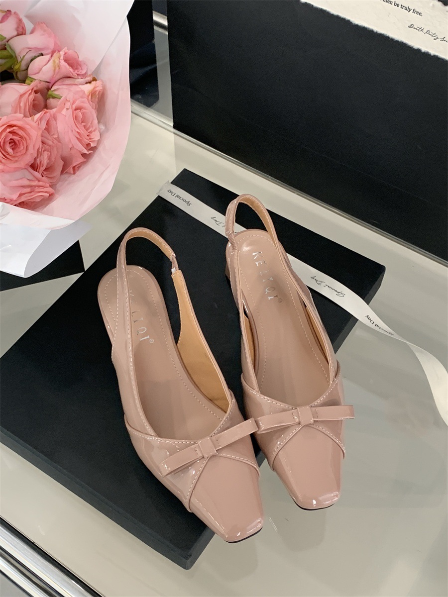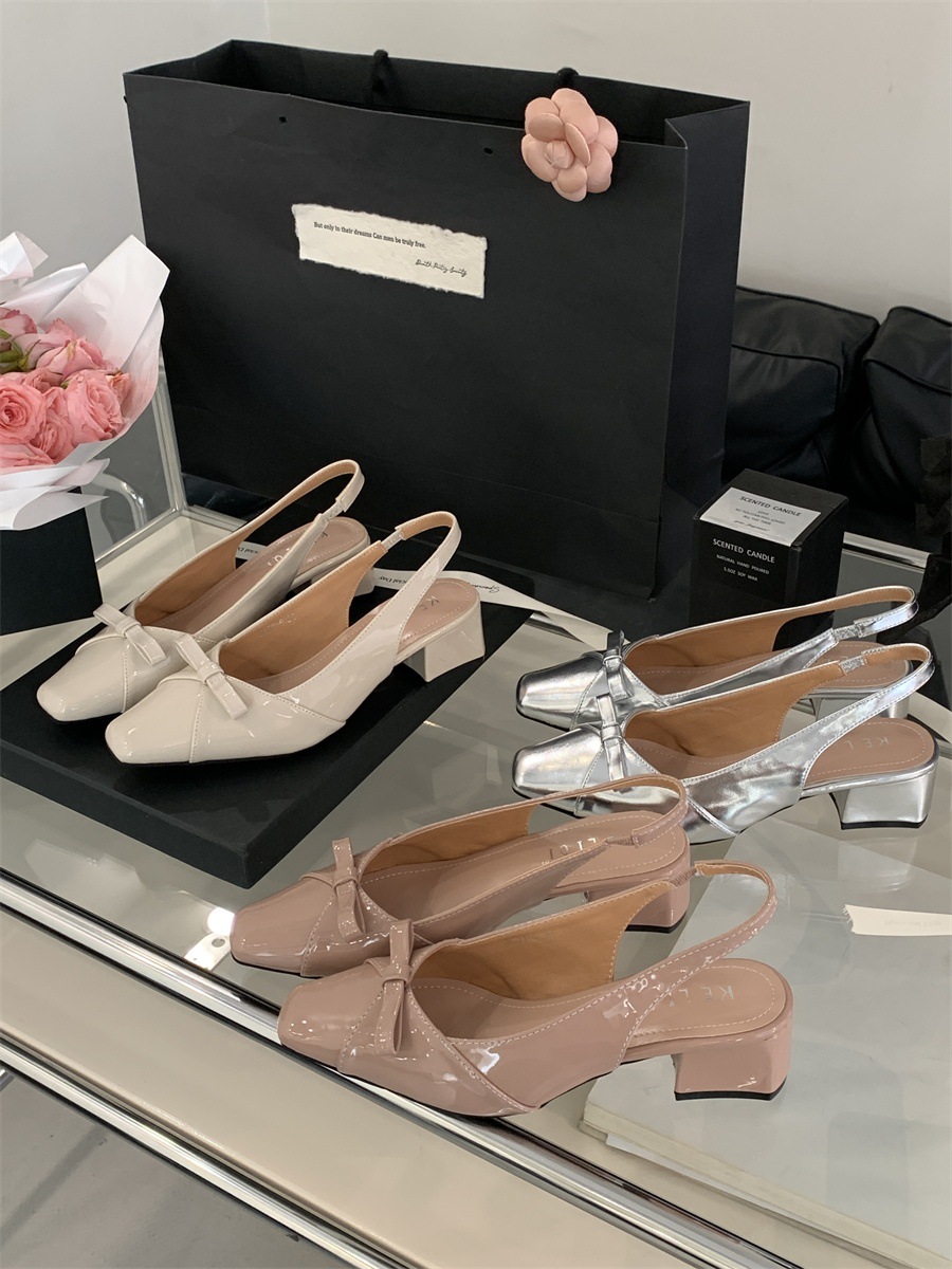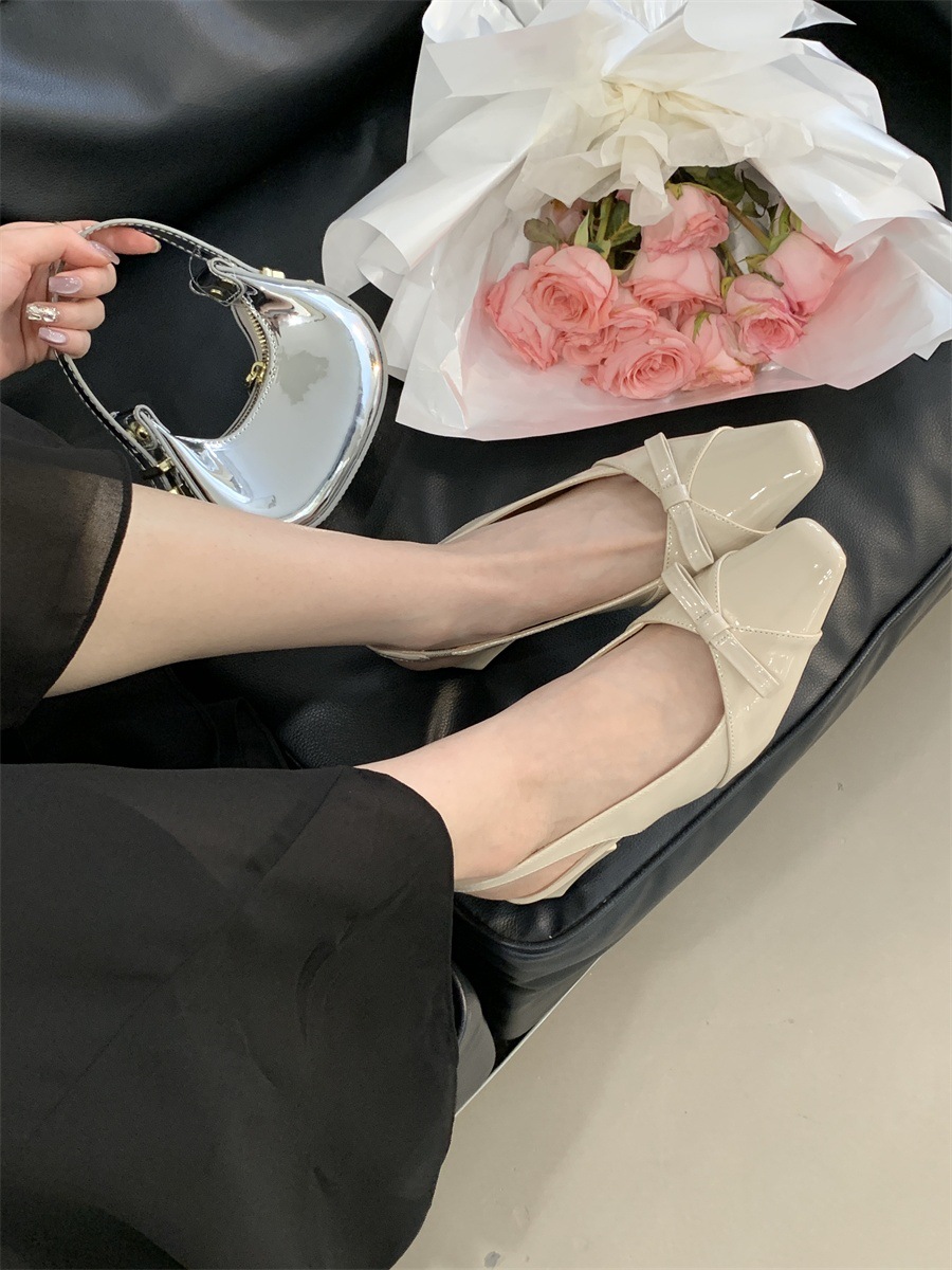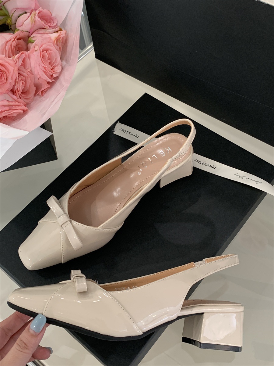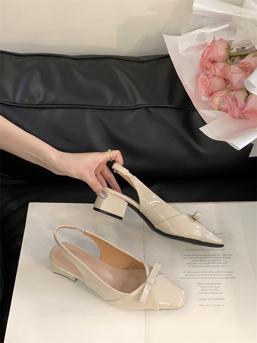 두꺼운 미드힐 프렌치 스퀘어 토 보우 샌들 여름 신상 슬립온 슈즈 스커트 요정 신발스토어 가기