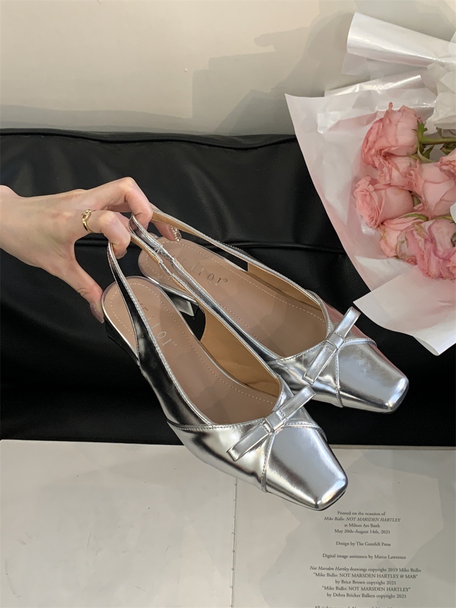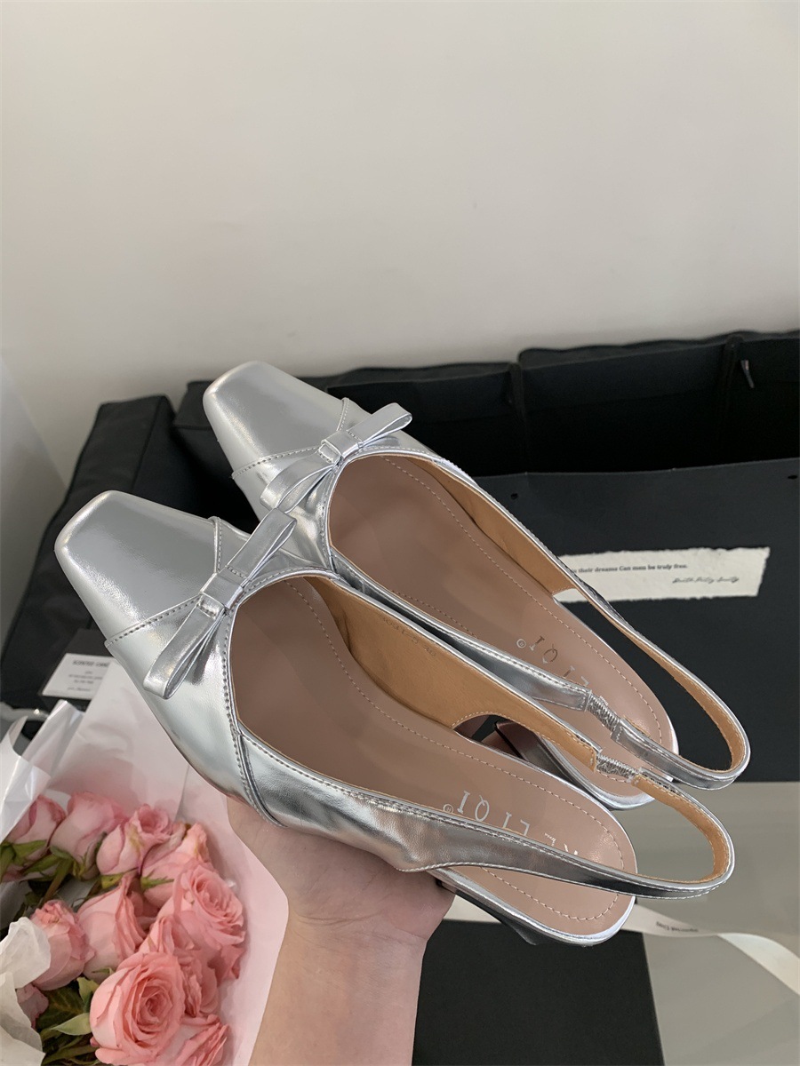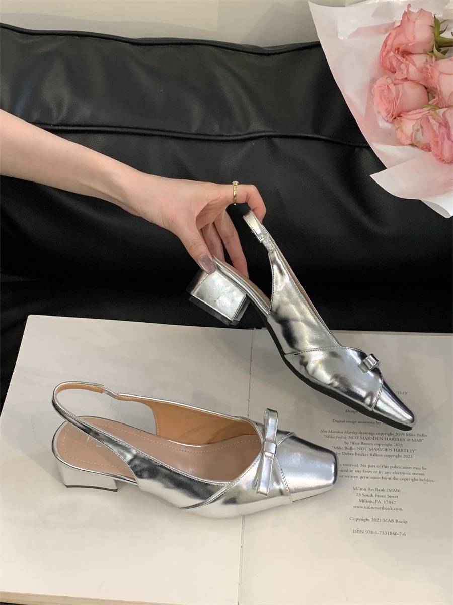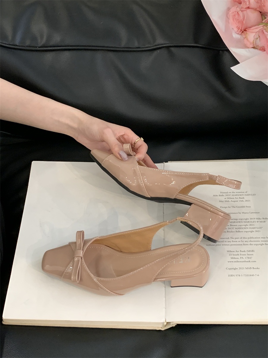 두꺼운 미드힐 프렌치 스퀘어 토 보우 샌들 여름 신상 슬립온 슈즈 스커트 요정 신발