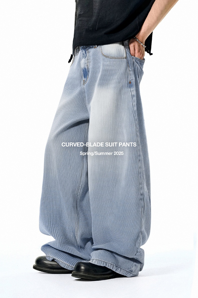 지에잔 남성복 | 대나무 절개무늬 데님 팬츠 26 봄여름 신상품 클렌핏 스트리트 와이드 팬츠 루즈핏 캐주얼 팬츠스토어 가기
