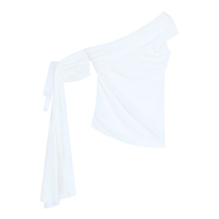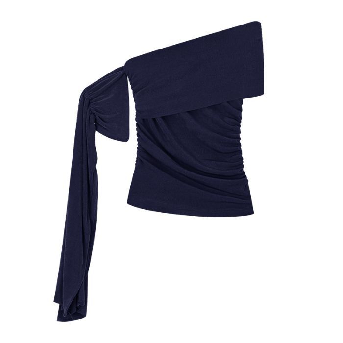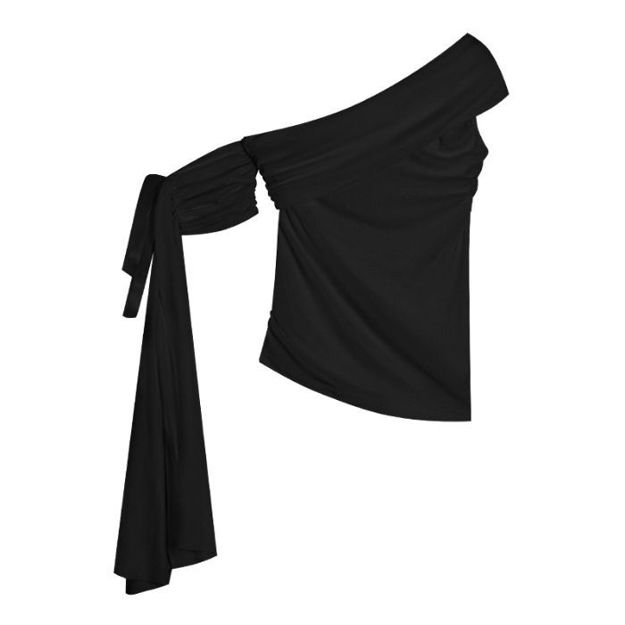하이 스트리트 핫걸 원 숄더 리본 티셔츠 여성 여름 슬리밍 디자인 연예인 스타일 캐주얼 다용도 탑 트렌디스토어 가기