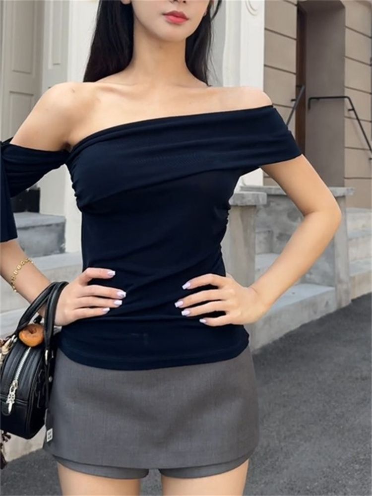 하이 스트리트 핫걸 원 숄더 리본 티셔츠 여성 여름 슬리밍 디자인 연예인 스타일 캐주얼 다용도 탑 트렌디