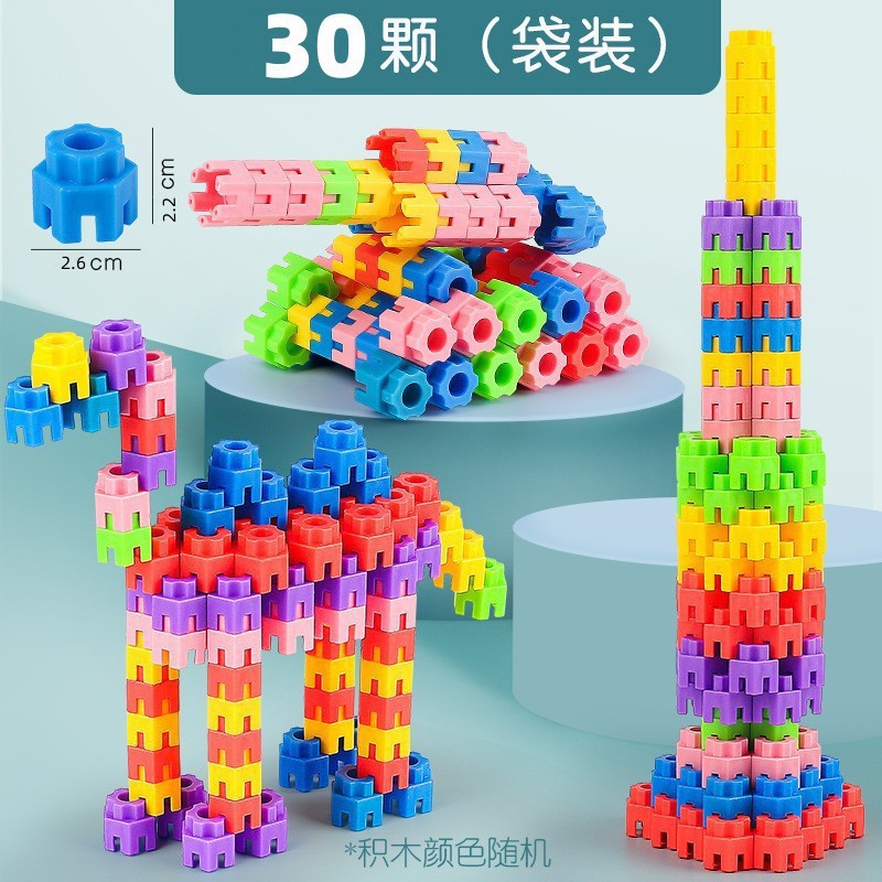 儿童积木塑料玩具 3-6周岁益智宝宝拼装拼插六角积木跨境颗粒批发