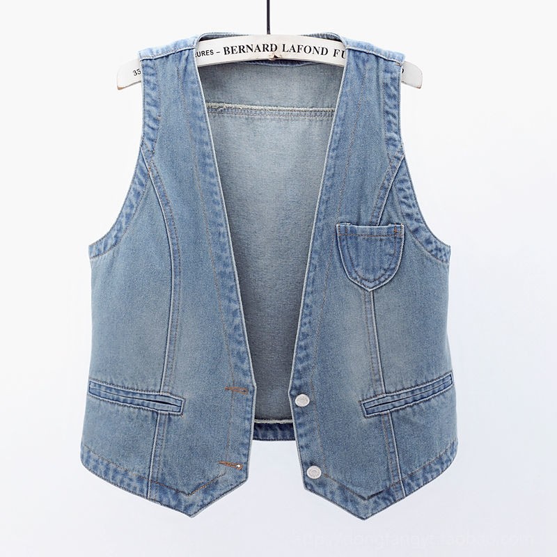 2025 데님 조끼 여성 짧은 봄 새로운 다목적 슬림 피트 한국 스타일 재킷 조끼 솔리드 컬러 탑 트렌디스토어 가기