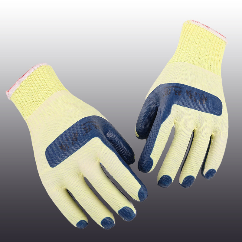 정품 더블 울프 필름 장갑, 철강 가공 현장용 내구성, 내마모성, 미끄럼 방지 고무 작업용 장갑, 절단 방지스토어 가기