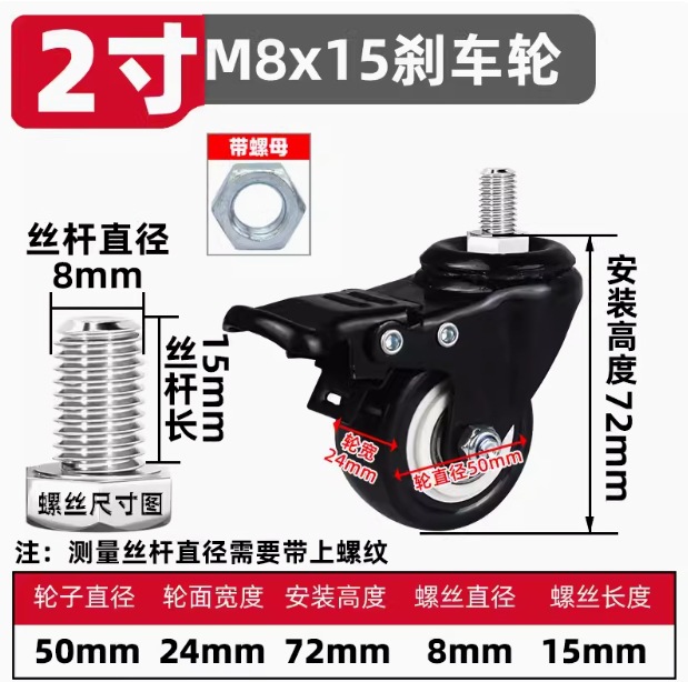 • 브레이크가 장착된 범용 휠 세트(4개), 내하중 150kg