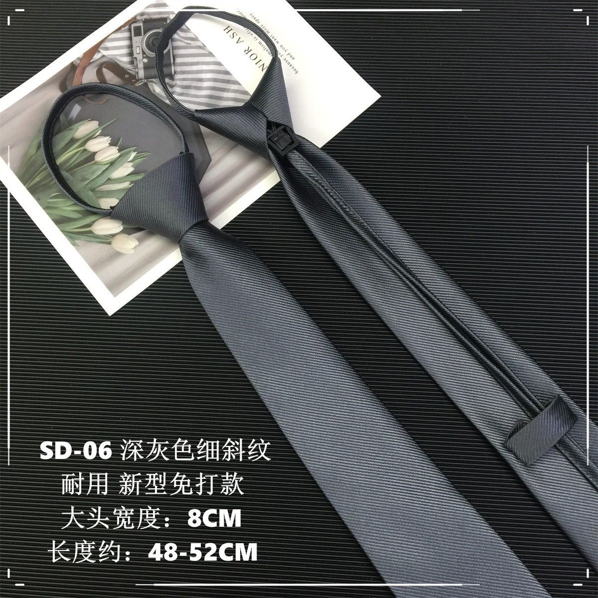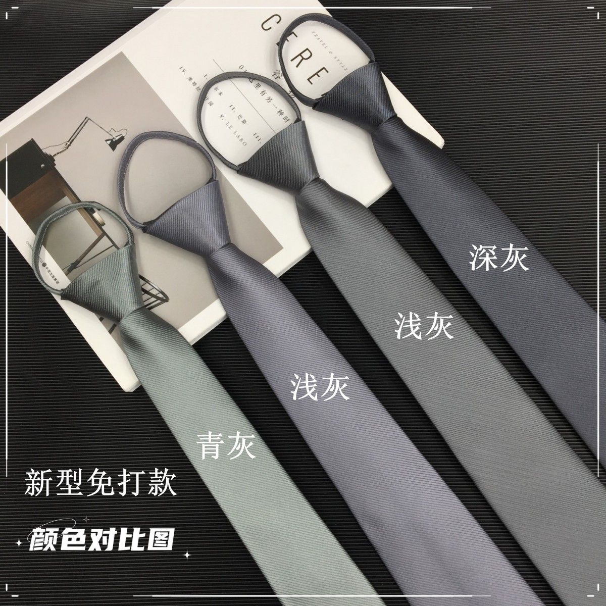 남성용 그레이 지퍼 타이, 다크 그레이, 라이트 그레이, 실버 그레이, 파인 트윌, 한국식, 게으른 사람, 무료 결제, 쉽게 당기는 타이