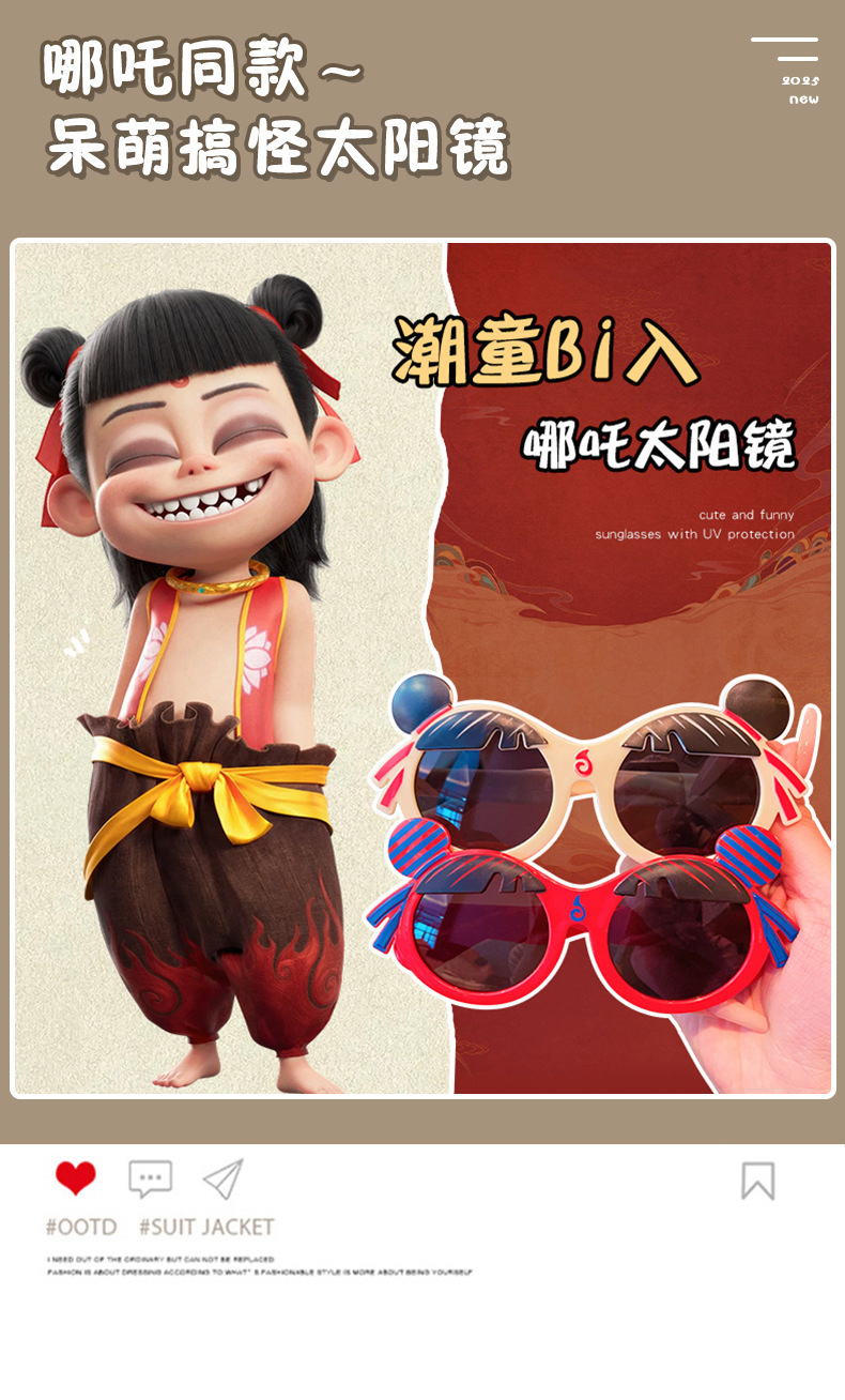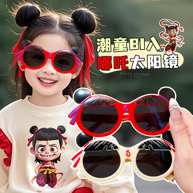 25 새로운 인터넷 연예인 핫 스타일 귀여운 만화 아기 안경 자외선 차단제 장식 어린이 안경 Nezha 선글라스