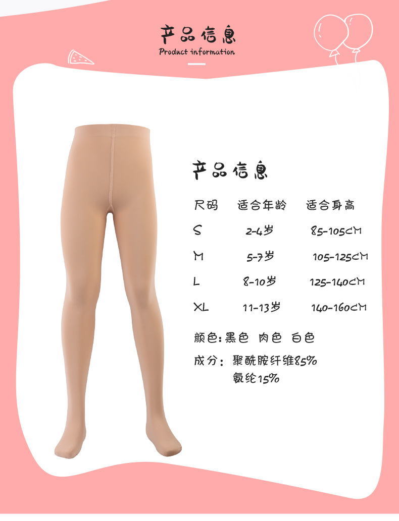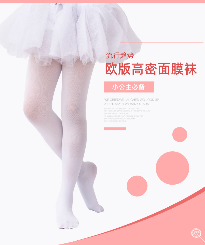 만지메이 스위트 어린이용 고밀도 흘러내림 방지 마스크 댄스 스타킹 봄/가을용 여아용 흰색 레깅스형 팬티스타킹