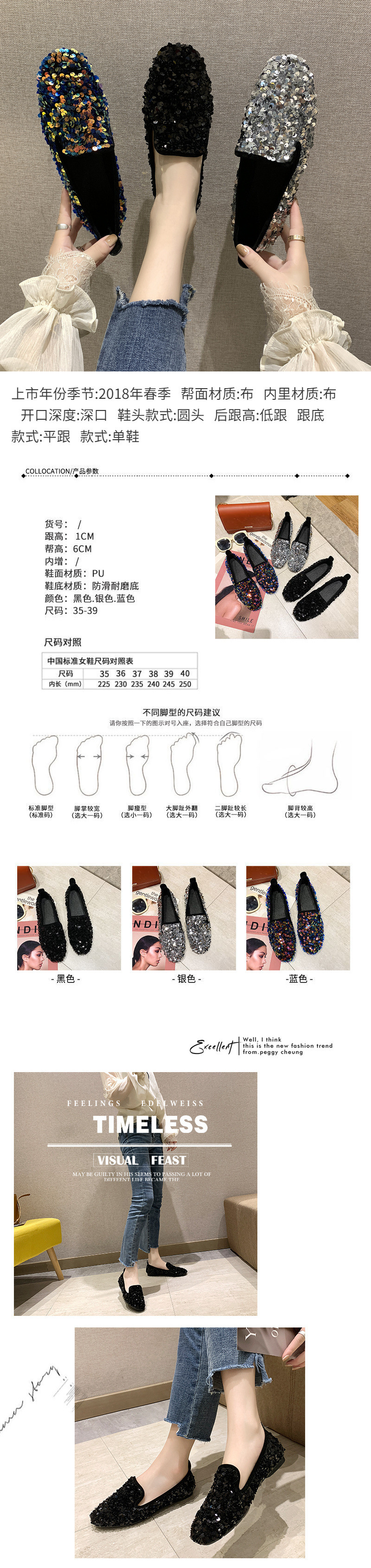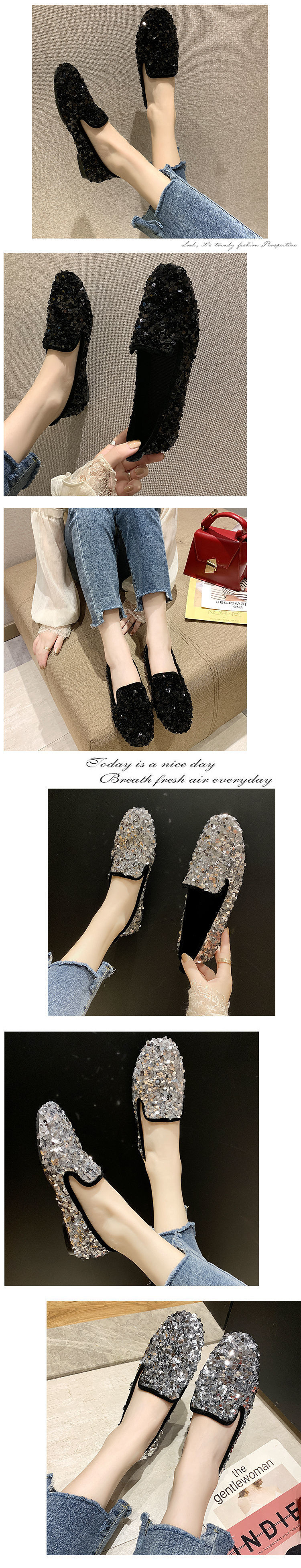 여성용 싱글 슈즈, 패셔너블한 봄, 가을 신상품, 다재다능한 슬립온 플랫 바닥, 임산부용 게으른 콩껍질 신발, 스팽글 봄 스타일스토어 가기