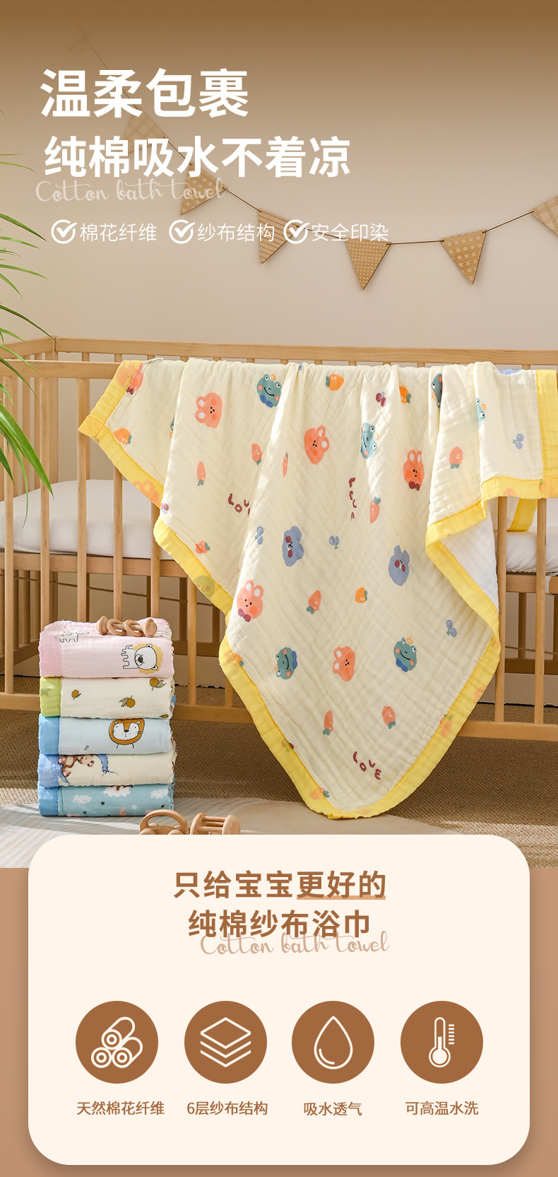 아기 거즈 목욕 타올, 매우 부드럽고 흡수성이 뛰어난 신생아 담요, 신생아 목욕 가방, 어린이 수건, 재고 있음스토어 가기