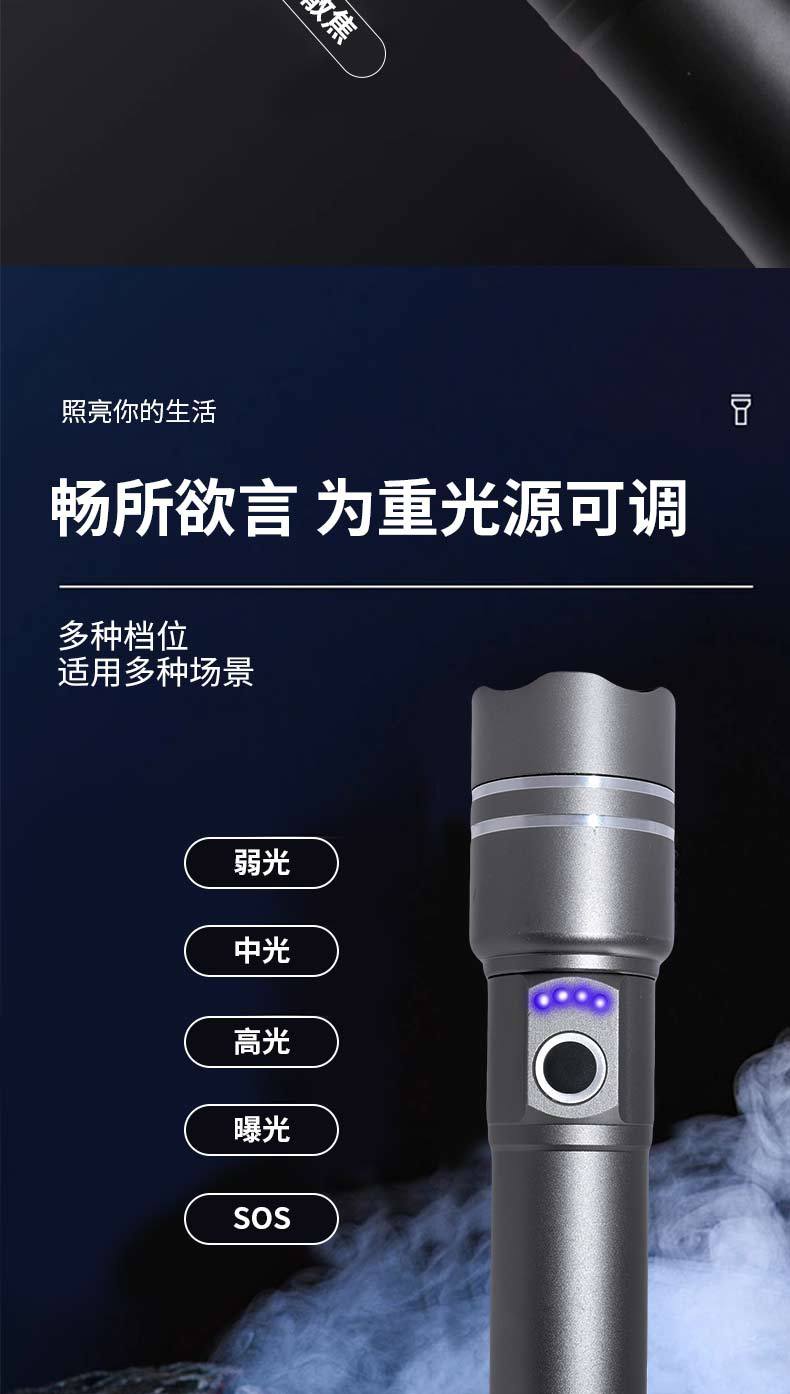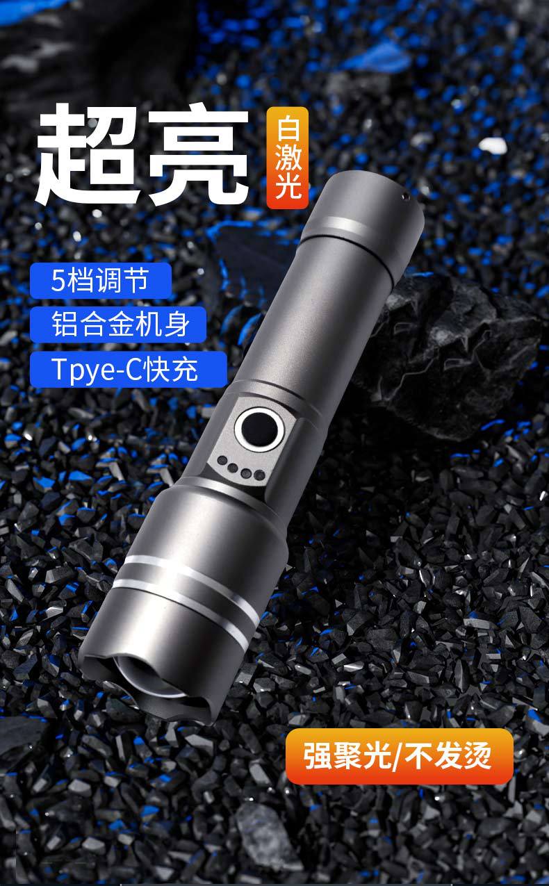 Tilgo 강한 빛 손전등 휴대용 충전식 밝은 야외 텔레스코픽 줌 서치라이트 장거리 스포트라이트 크로스보더스토어 가기