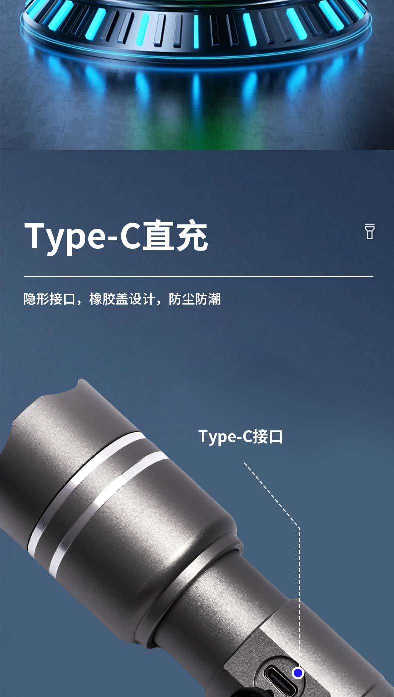 Tilgo 강한 빛 손전등 휴대용 충전식 밝은 야외 텔레스코픽 줌 서치라이트 장거리 스포트라이트 크로스보더