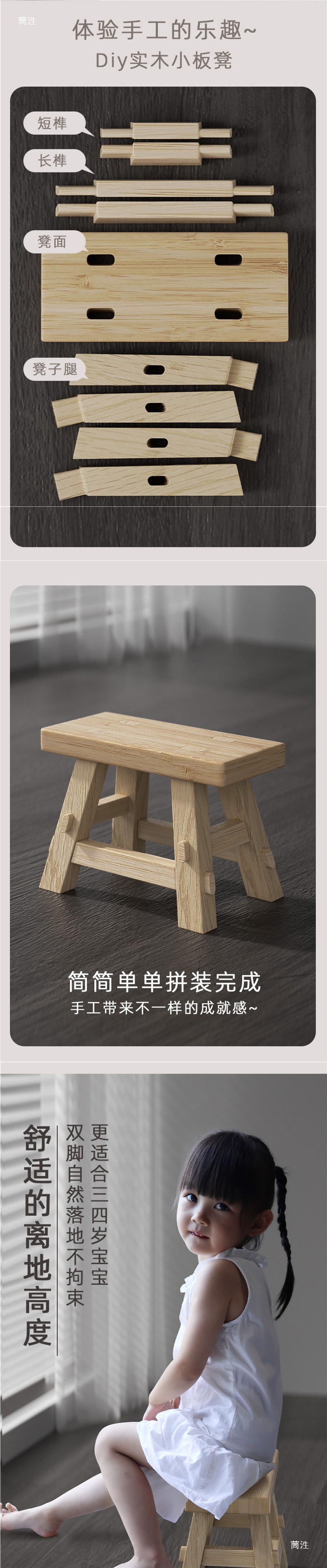 단단한 나무 작은 벤치, 모리 및 마루, 4개의 다리와 8개의 칼라가 있는 벤치, 조립된 학생 수공예 수업 재료 패키지, DIY 교육 보조 장치, 나무 벤치
