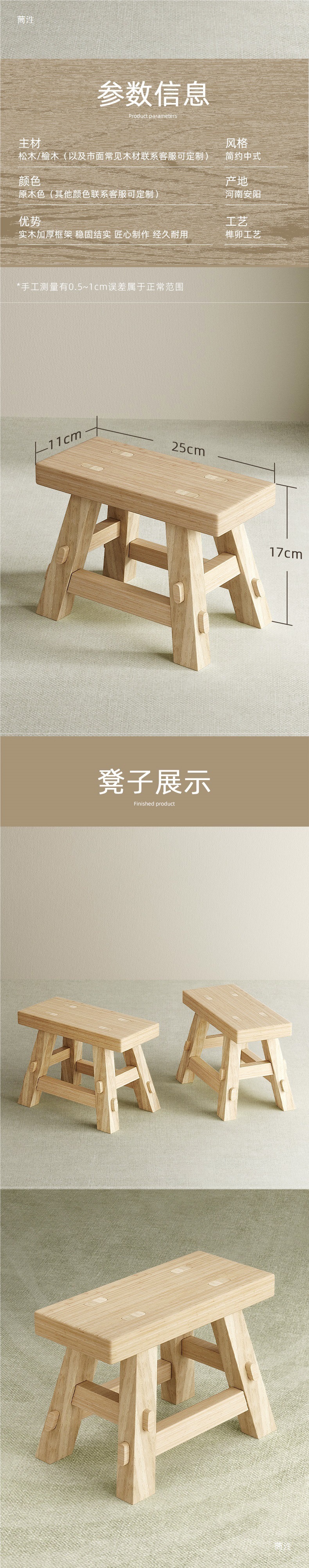 단단한 나무 작은 벤치, 모리 및 마루, 4개의 다리와 8개의 칼라가 있는 벤치, 조립된 학생 수공예 수업 재료 패키지, DIY 교육 보조 장치, 나무 벤치스토어 가기