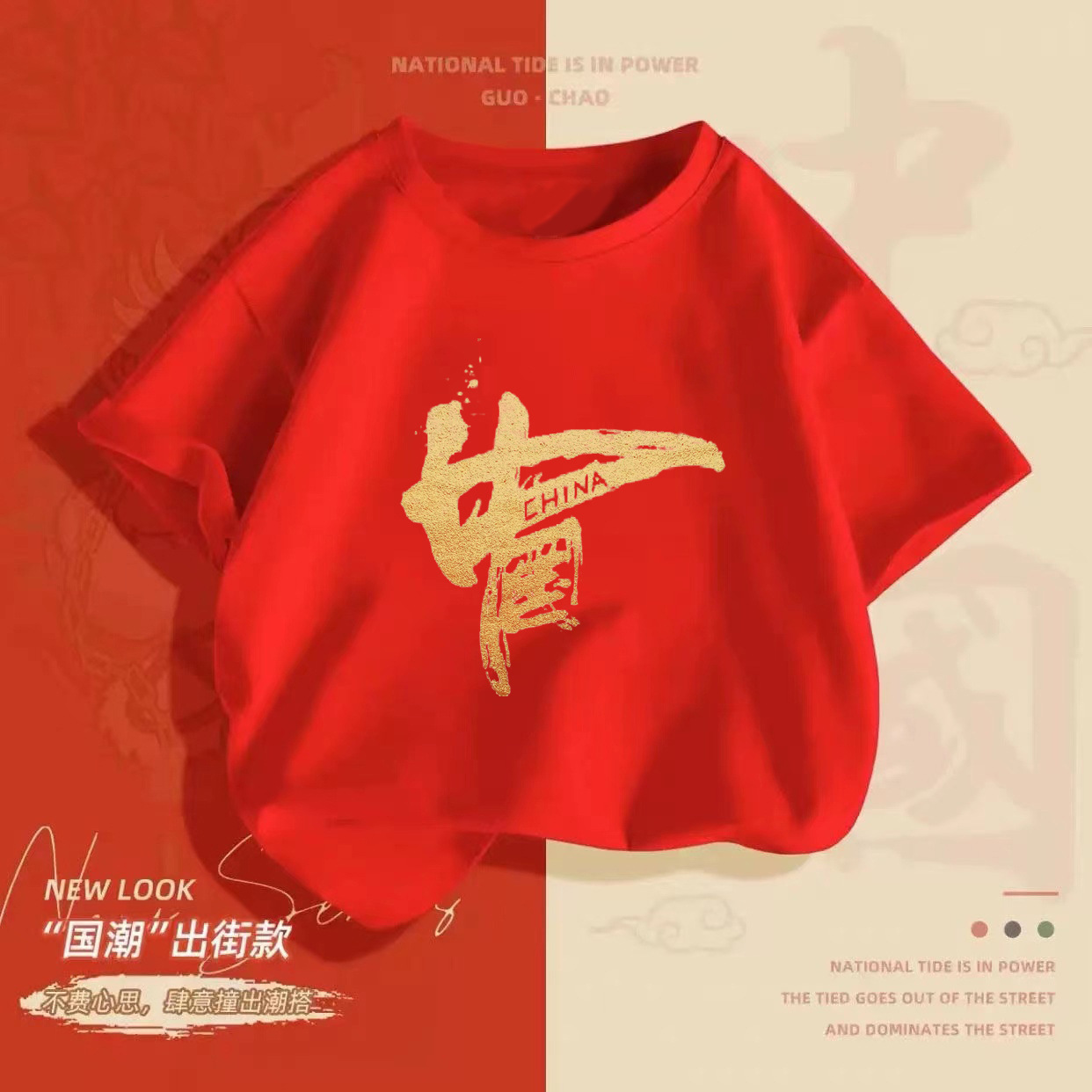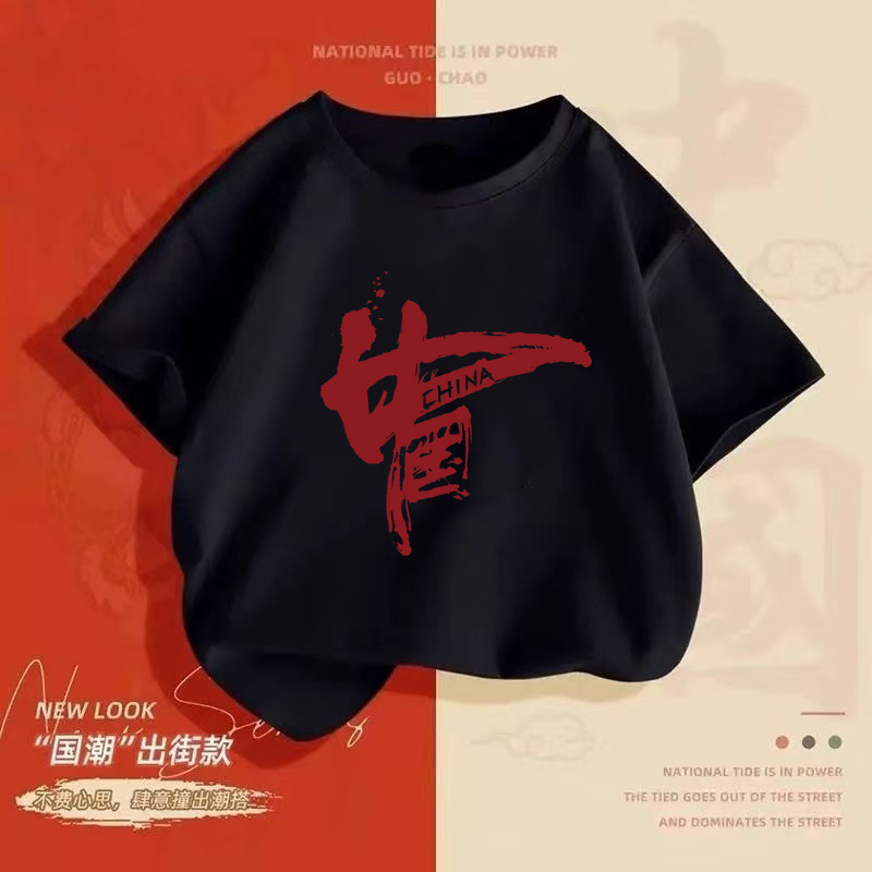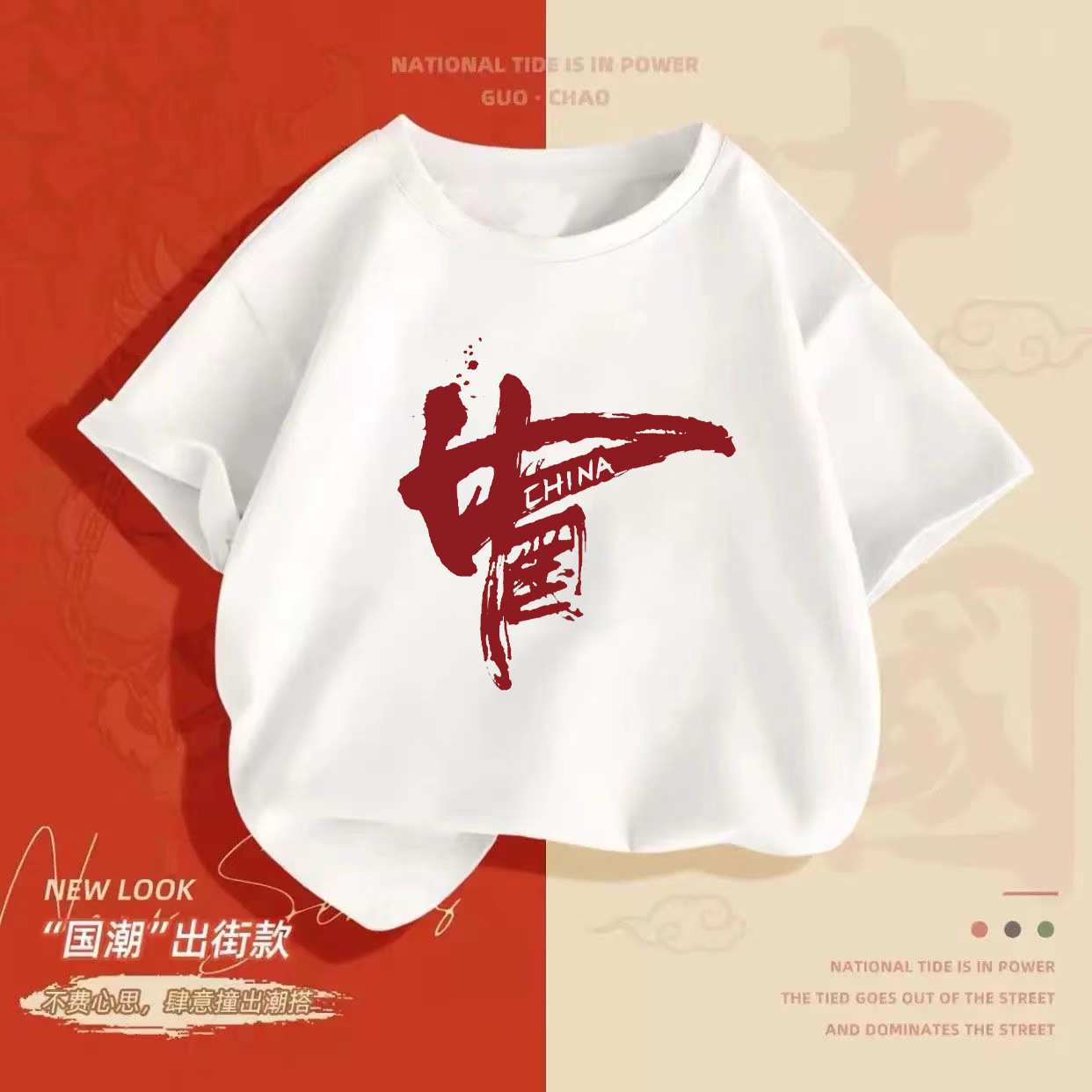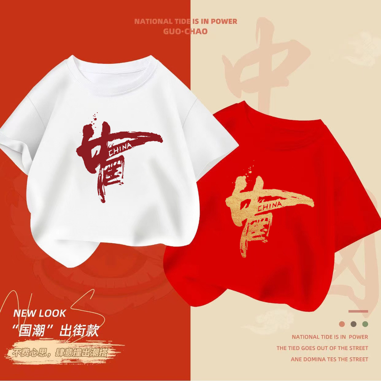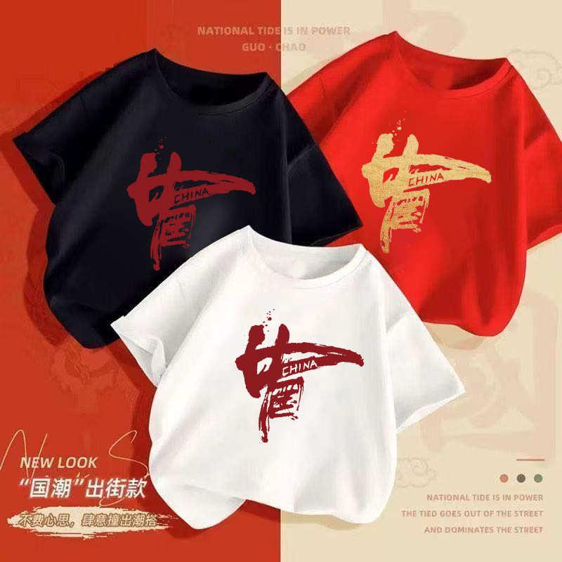 아동용 티셔츠 I Love China 옷 순면 반팔 소년 소녀 반팔 여름 티셔츠 레드 라운드 넥 탑 코튼 T스토어 가기