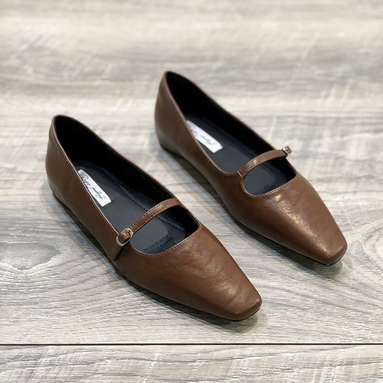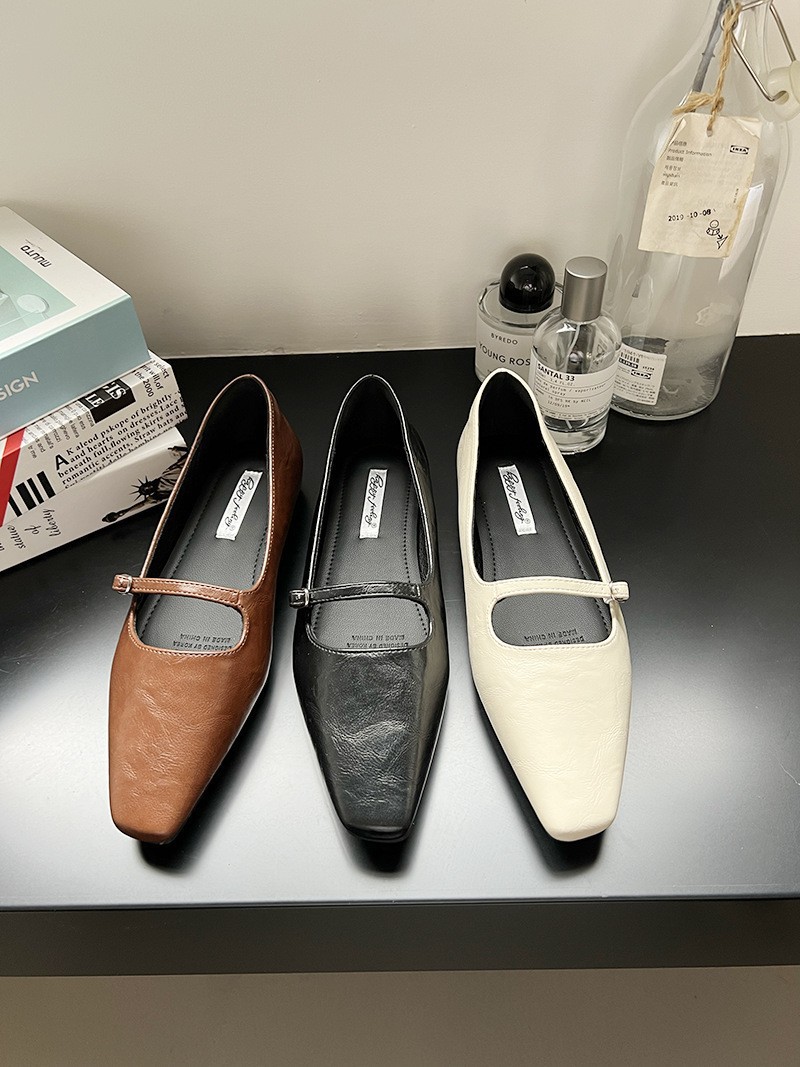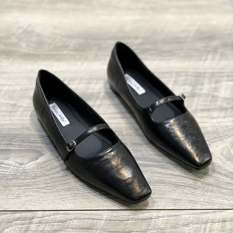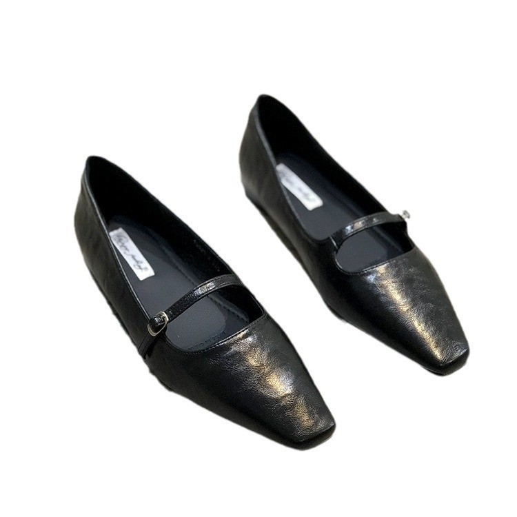 프랑스 스타일 메리 제인 싱글 레이어 신발 여성 신발 2025 봄 뉴 블랙 원피스 우아한 스퀘어 발가락 얕은 입 내부 높이 무당 신발스토어 가기
