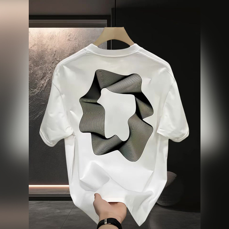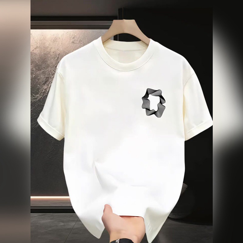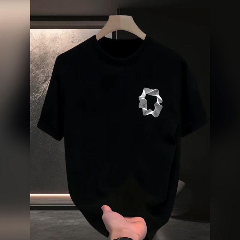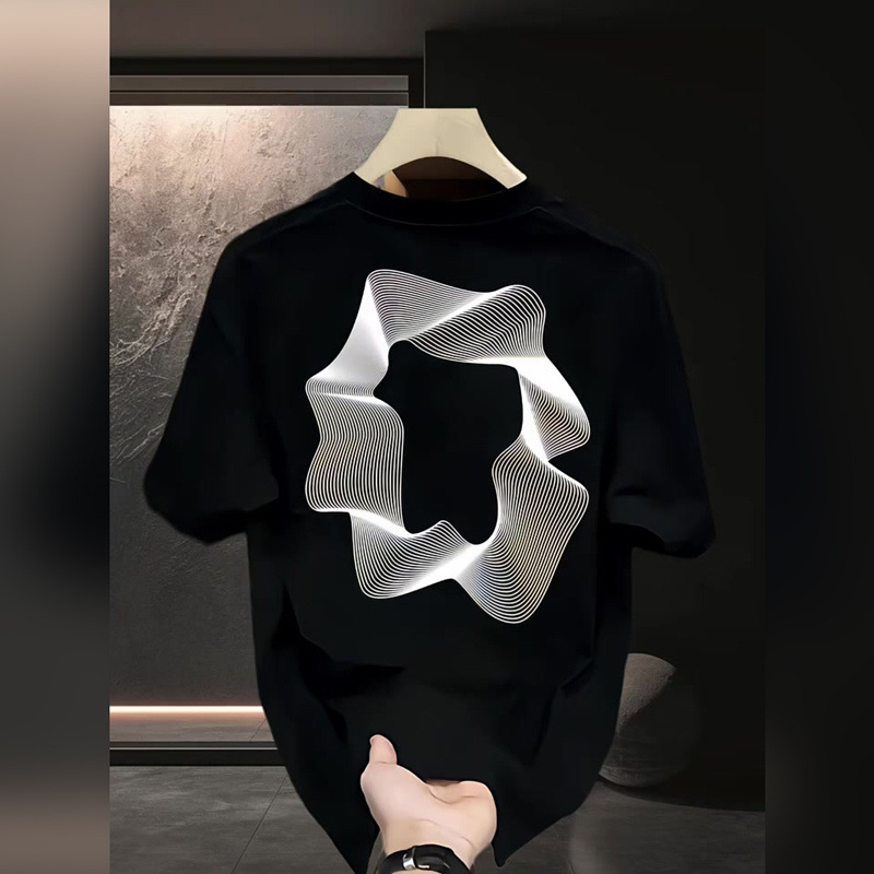고품질의 새로운 헤비급 라이트 럭셔리 티셔츠, 다재다능한 반팔 남성 미니멀리스트 프린트 인기 라운드 넥 패션 루즈 반소매