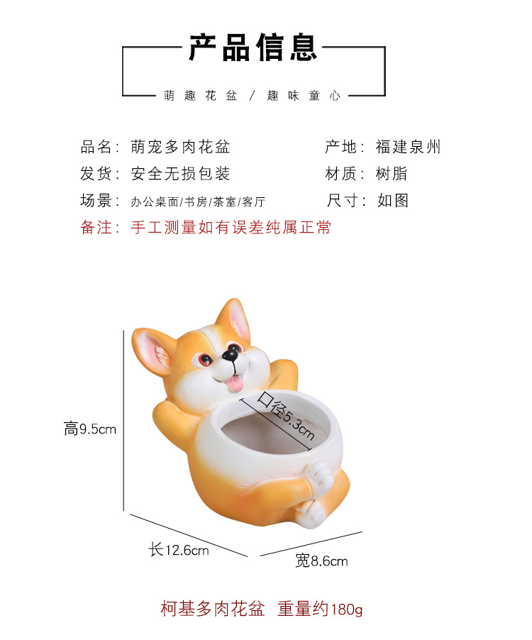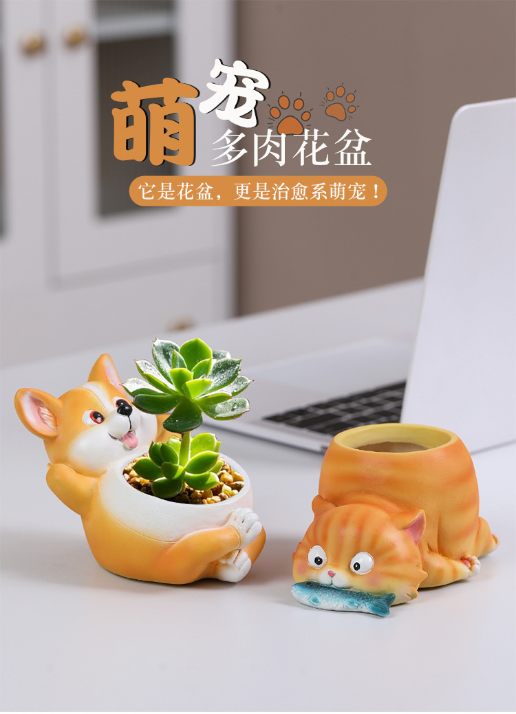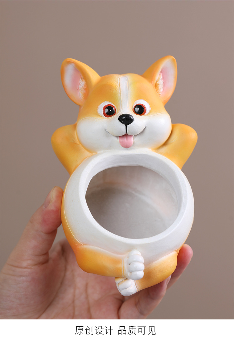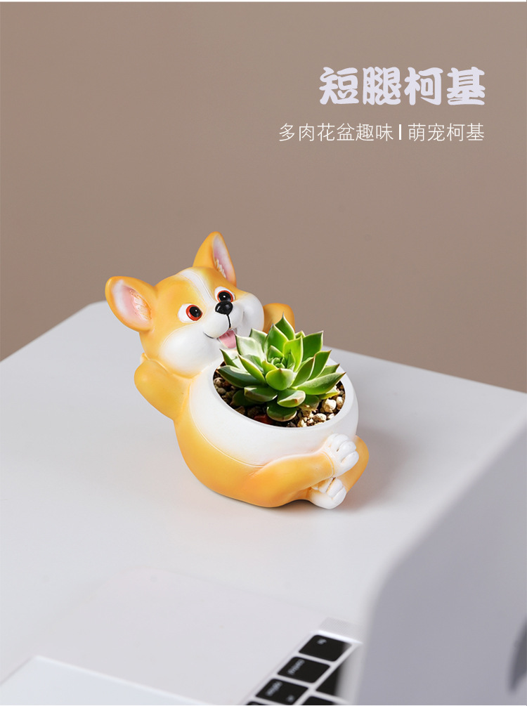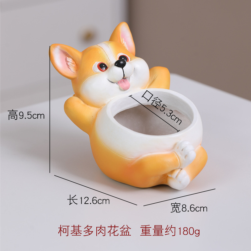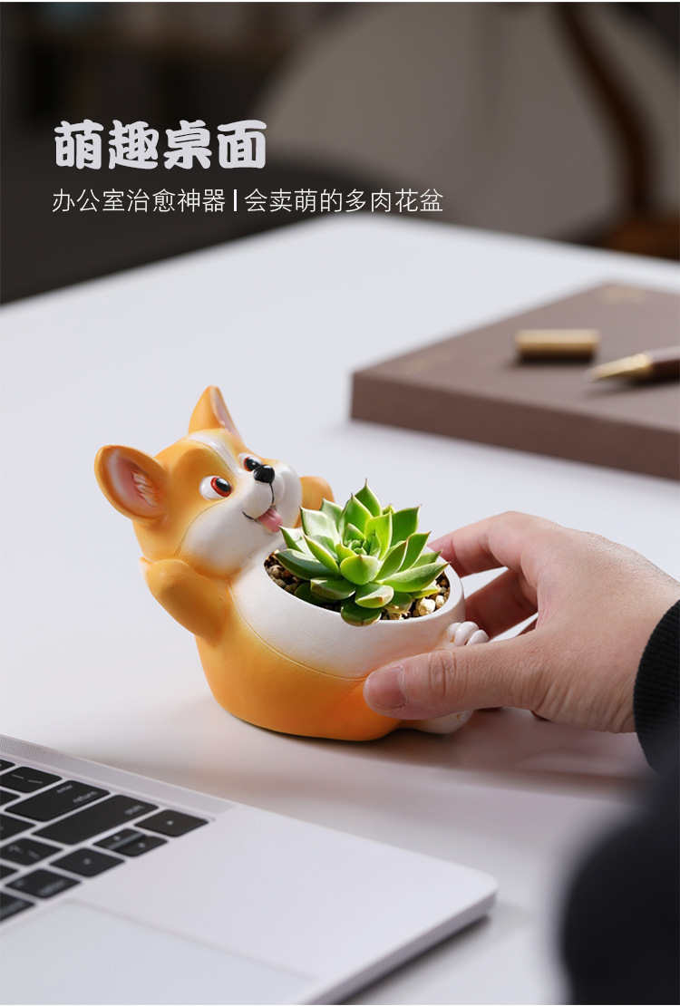 만화 동물 다육 꽃 냄비 홈 오피스 발코니 녹색 식물 화분 마이크로 풍경 원예 장식 수지 코기